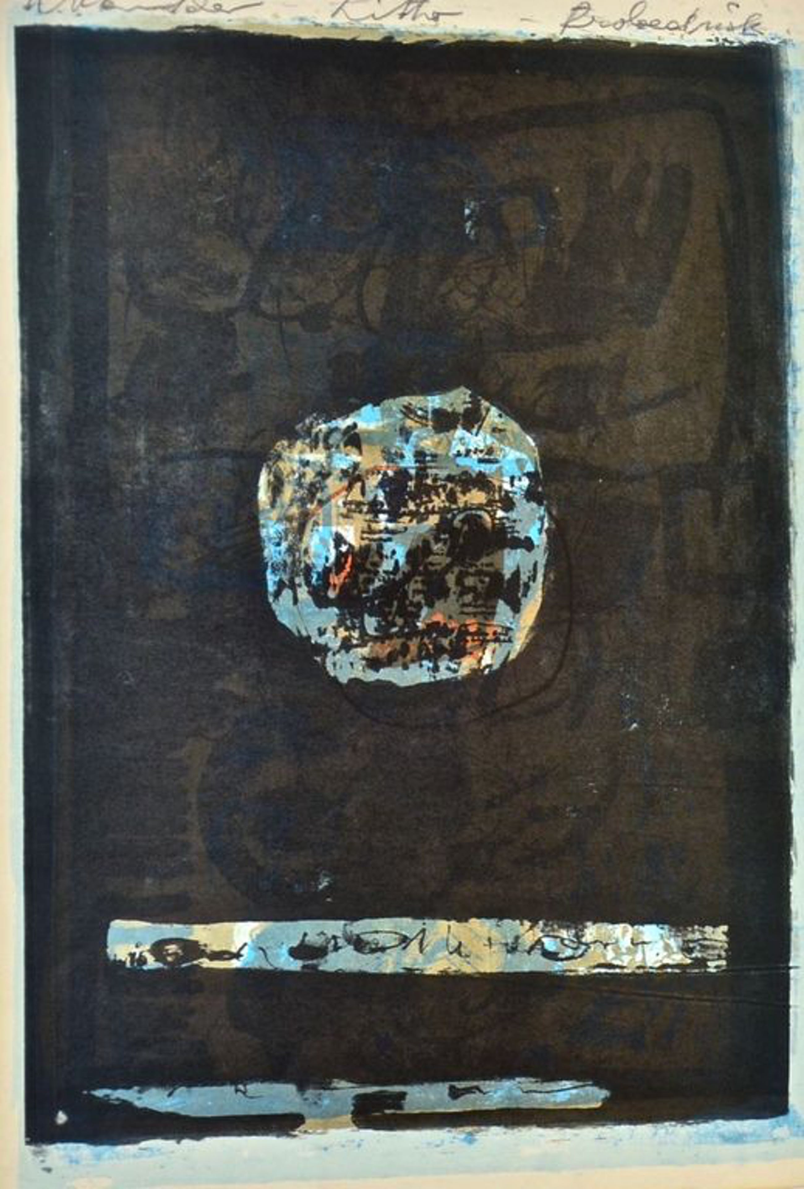 Mooie litho van Hans Staudacher. De verschillende kleuren schijnen van achter het zwart door wat een mooi en bijzonder en effect geeft.