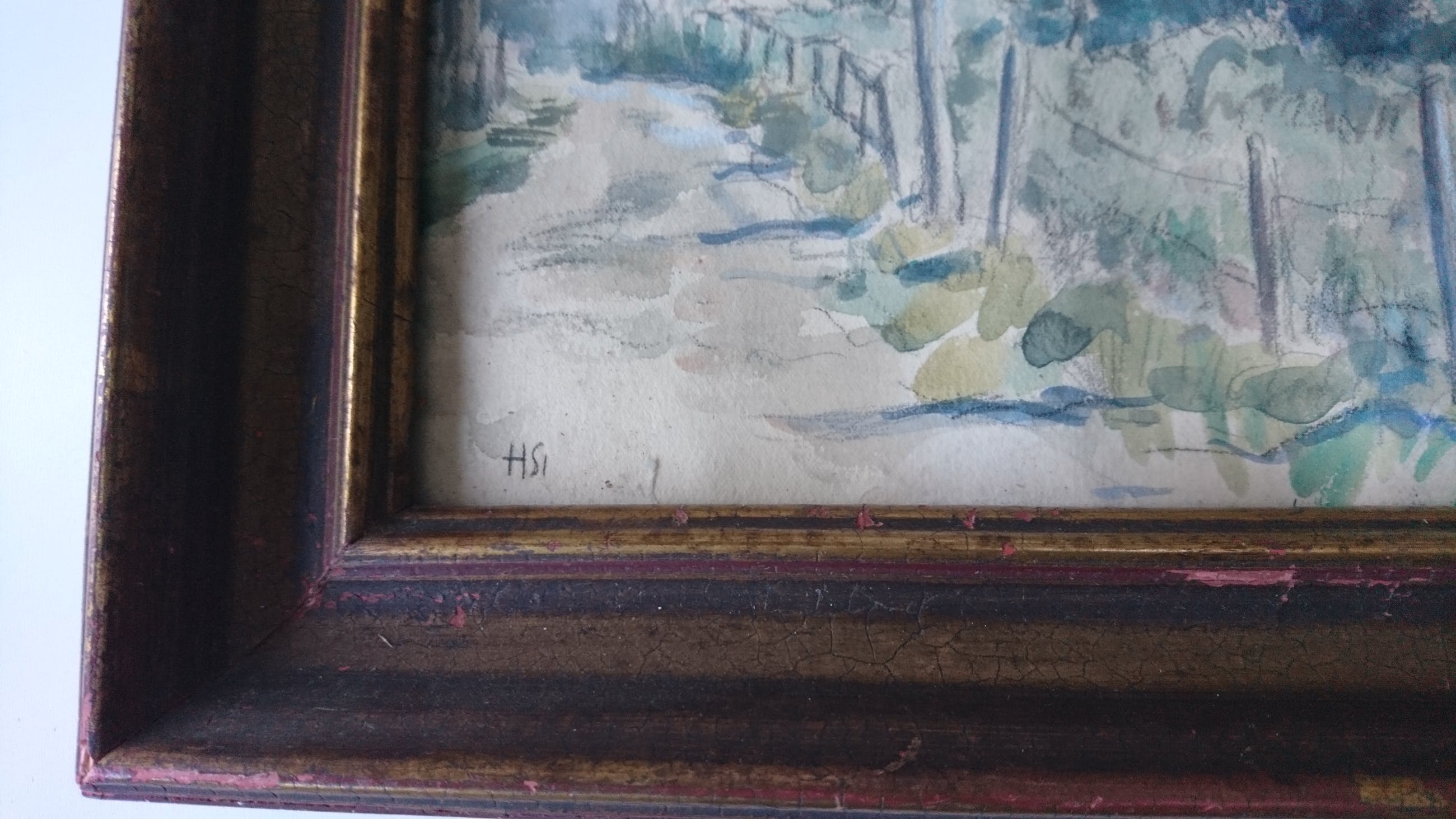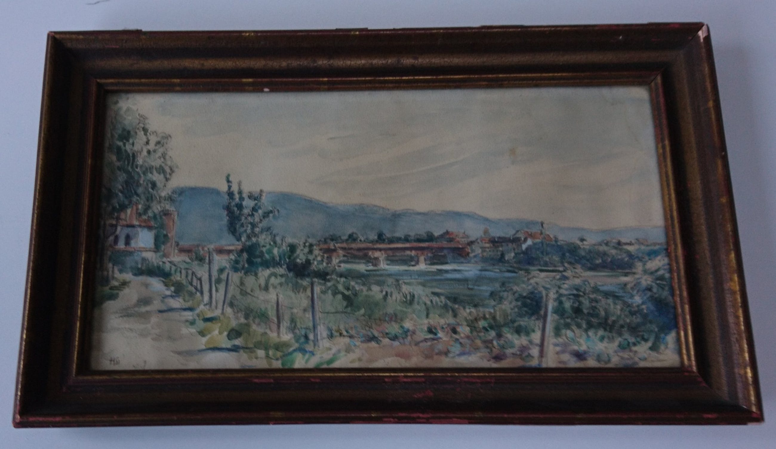 Prachtige aquarel in goede staat, lijst met beschadigingen.