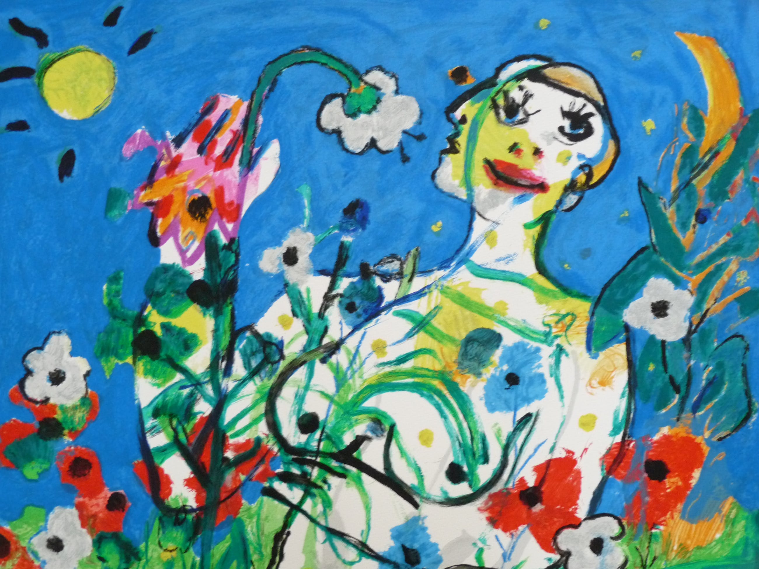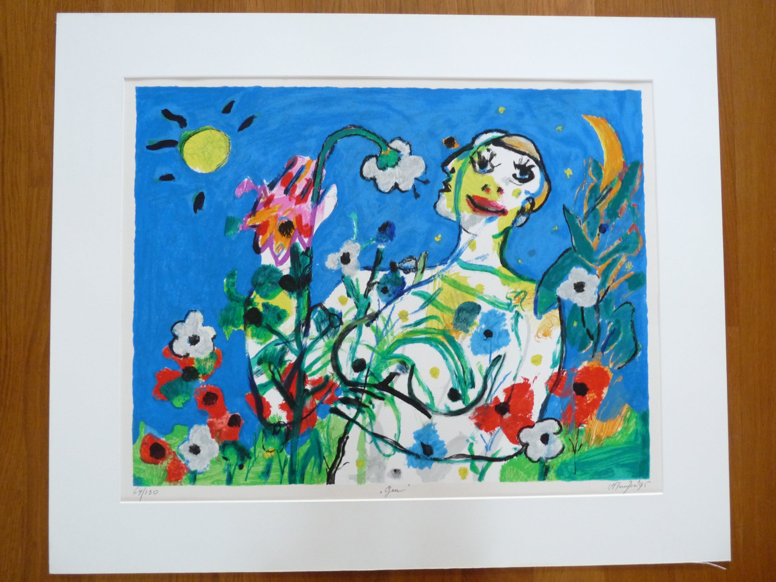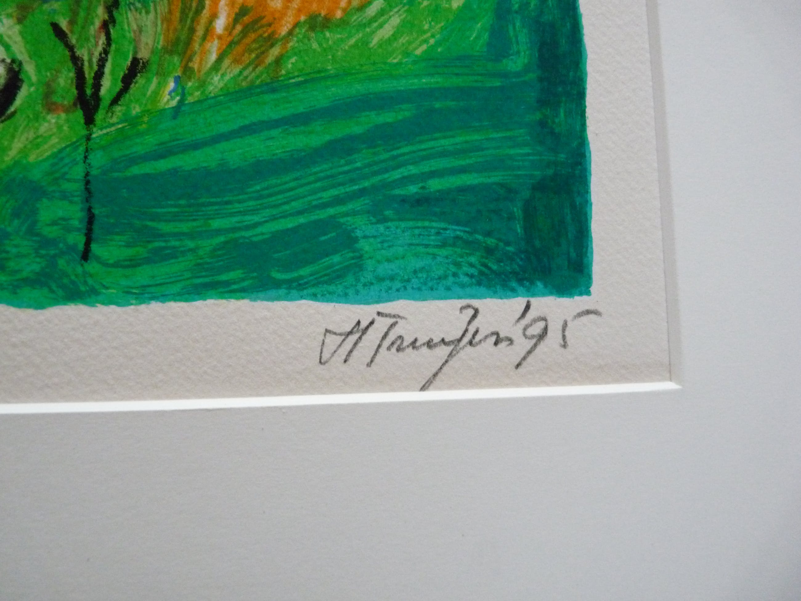Fraaie kleurrijke zeefdruk van bekende Limburgse kunstenaar. Blad zit geplakt in passe partout. Het geheel is in goede conditie. Oplage 64/150 Afmeting afbeelding 50 x 64,5 cm. Inclusief passe partout 70 x 85 cm.