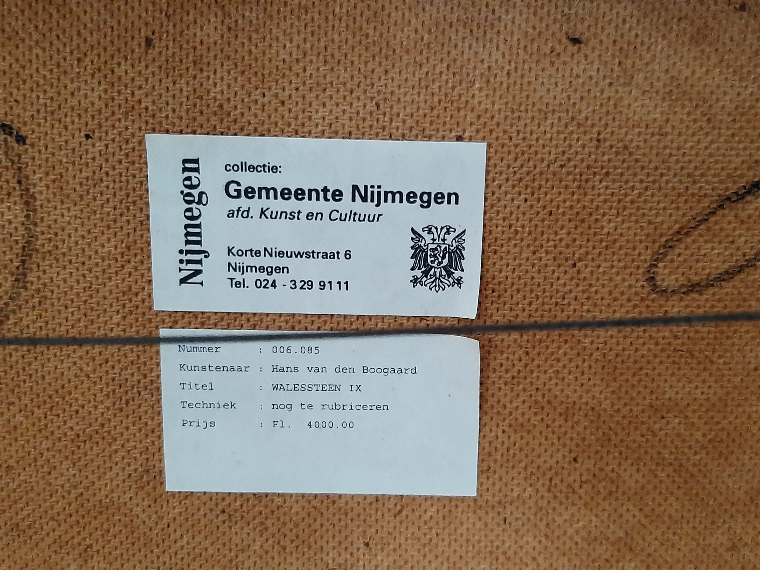Het werk is af te halen op locatie. Als koper dient u zelf verpakkingsmateriaal mee te nemen. De locatie is: Nijmegen, Nederland