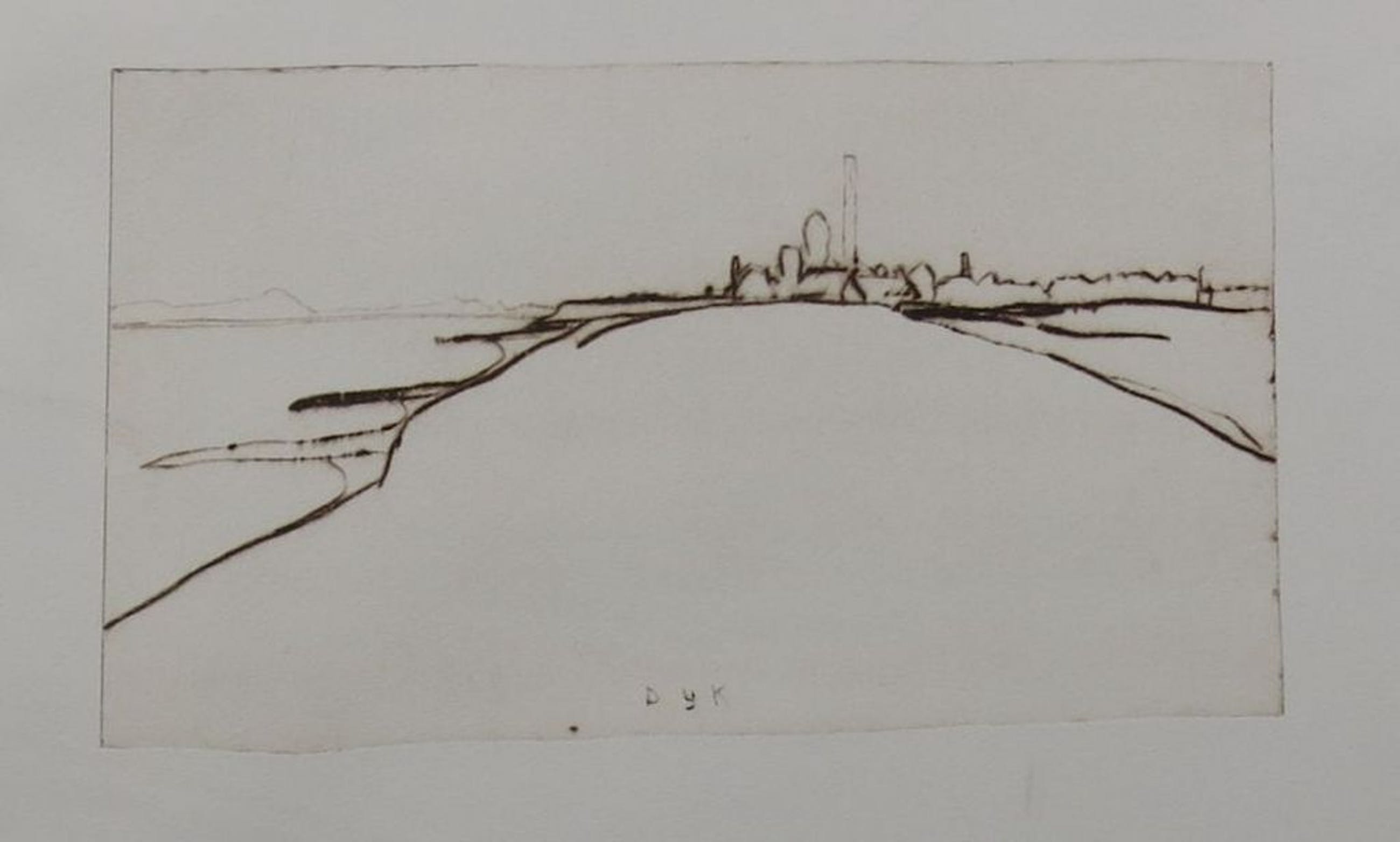 Materiaal: Droge naald op geschept papier, bevestigd op onderblad