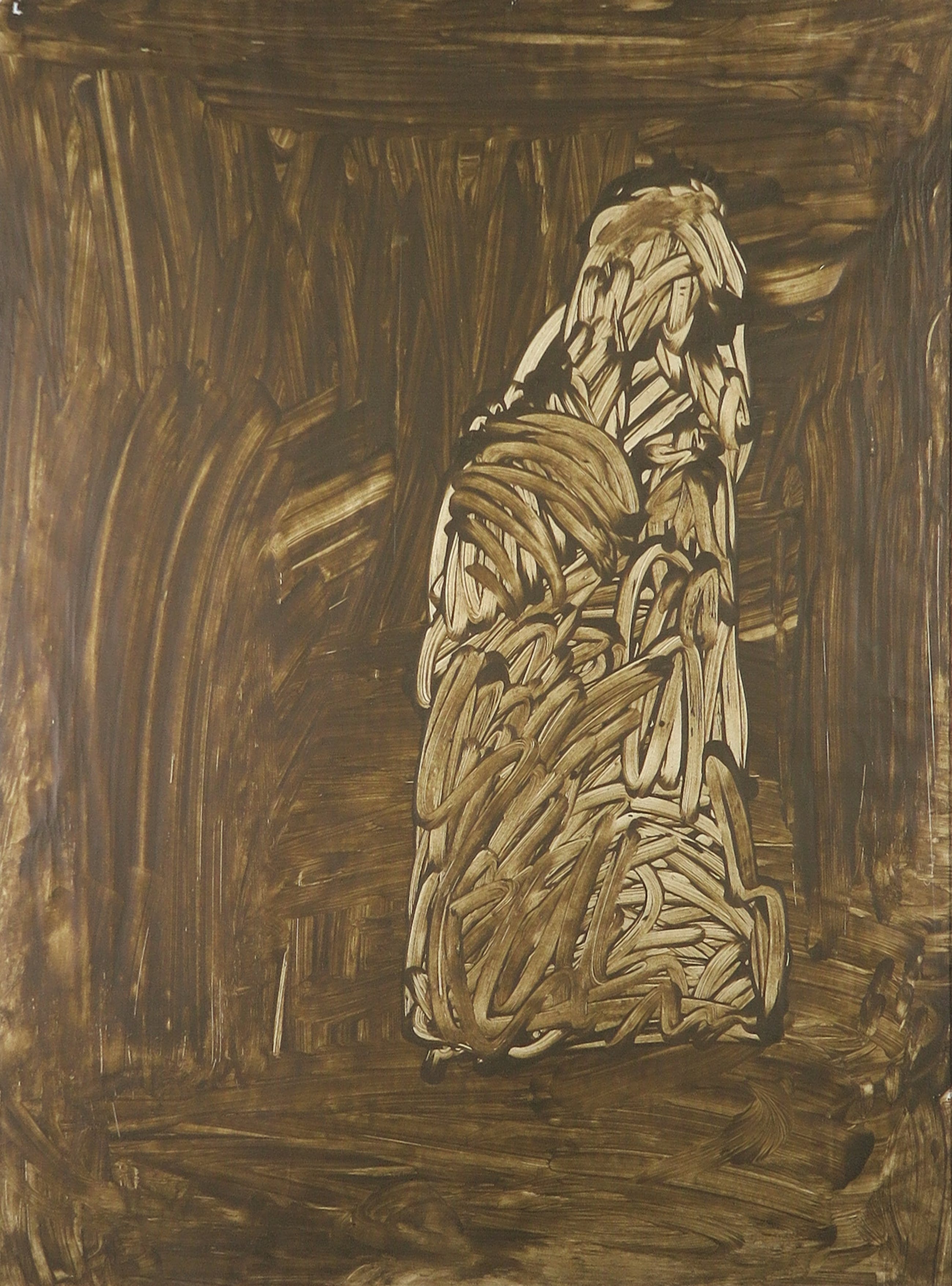 | Kleine beschadiging in de verfvlaag in de linkerbovenhoek, vermoedelijk omdat het werk daar tegen het glas aangeplakt heeft gezeten. | |
