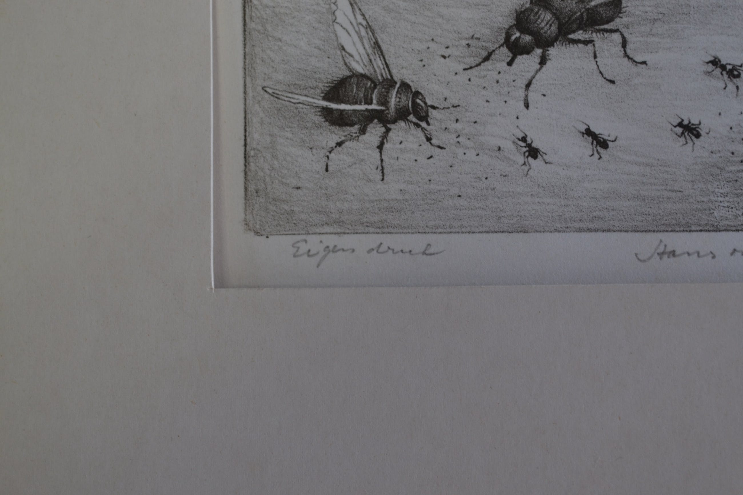 Hans van Dokkum - ets, drie vliegen en vier mieren - Verkocht