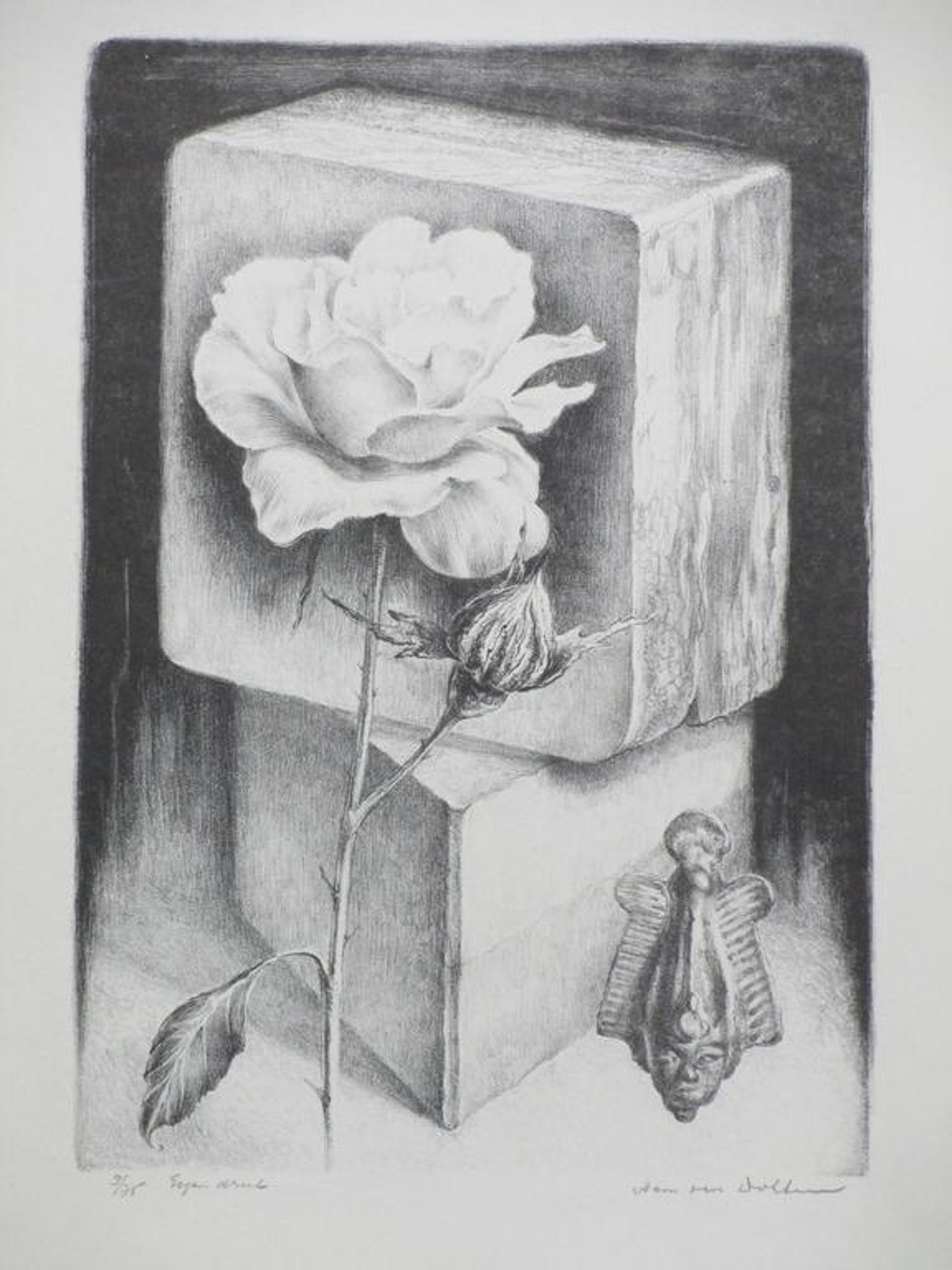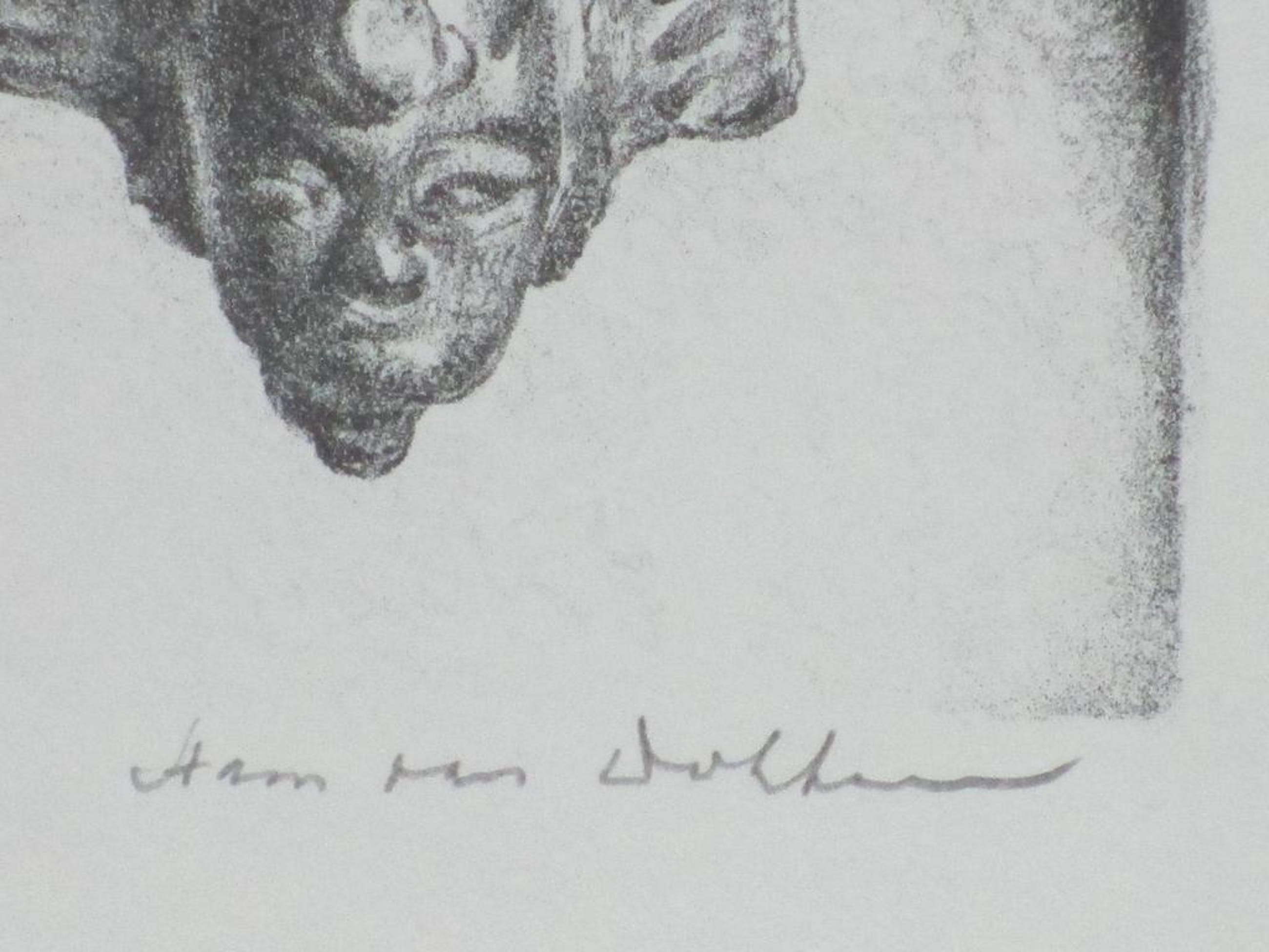 Gesigneerd r.o. 'Hans van Dokkum' en nummering en annotatie l.o. '9/75' en 'Eigen druk'