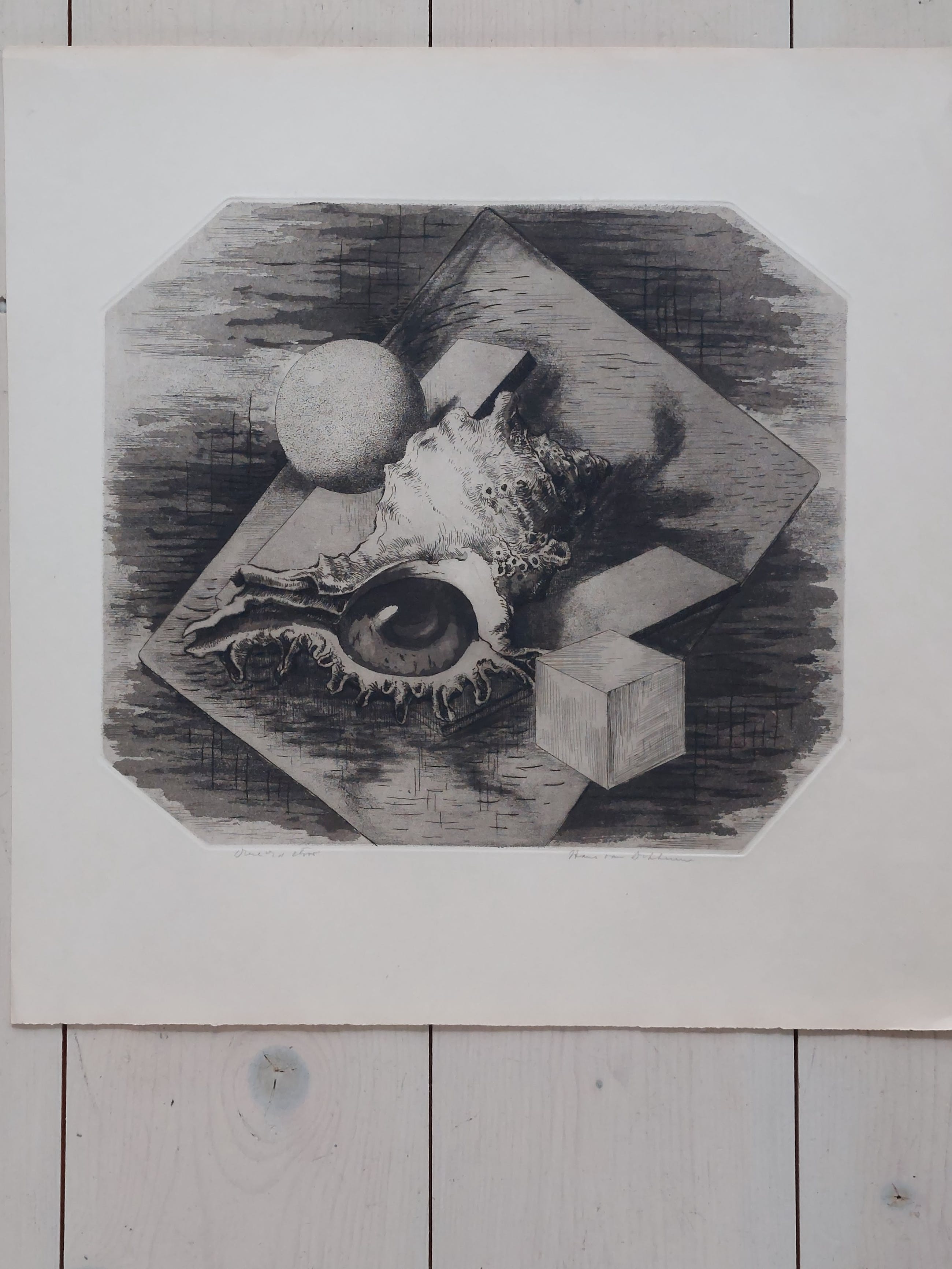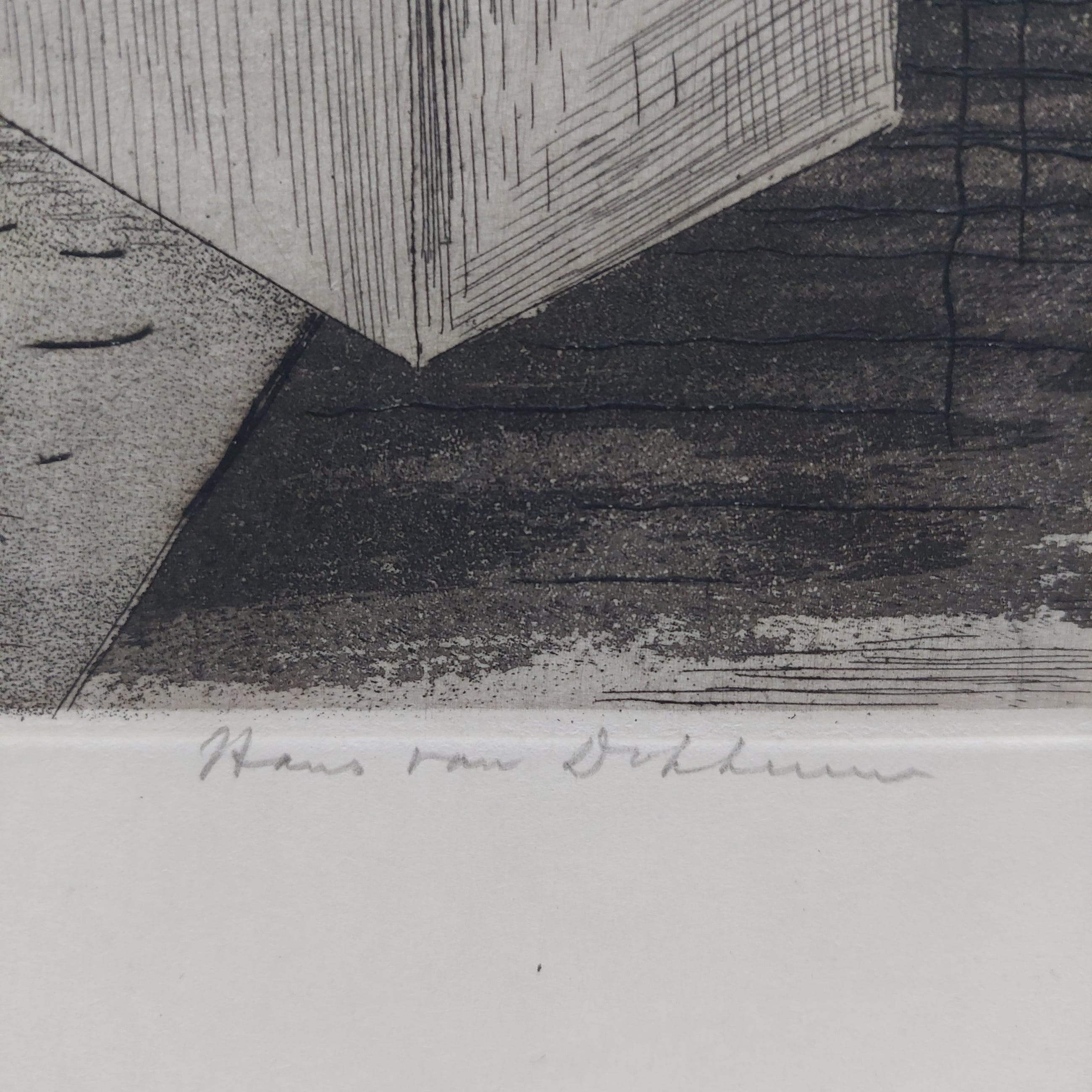 De ets is 33 cm hoog en 38 cm breed. Het papier zelf is 48 cm breed en 50 cm hoog. Met potlood handgesigneerd.