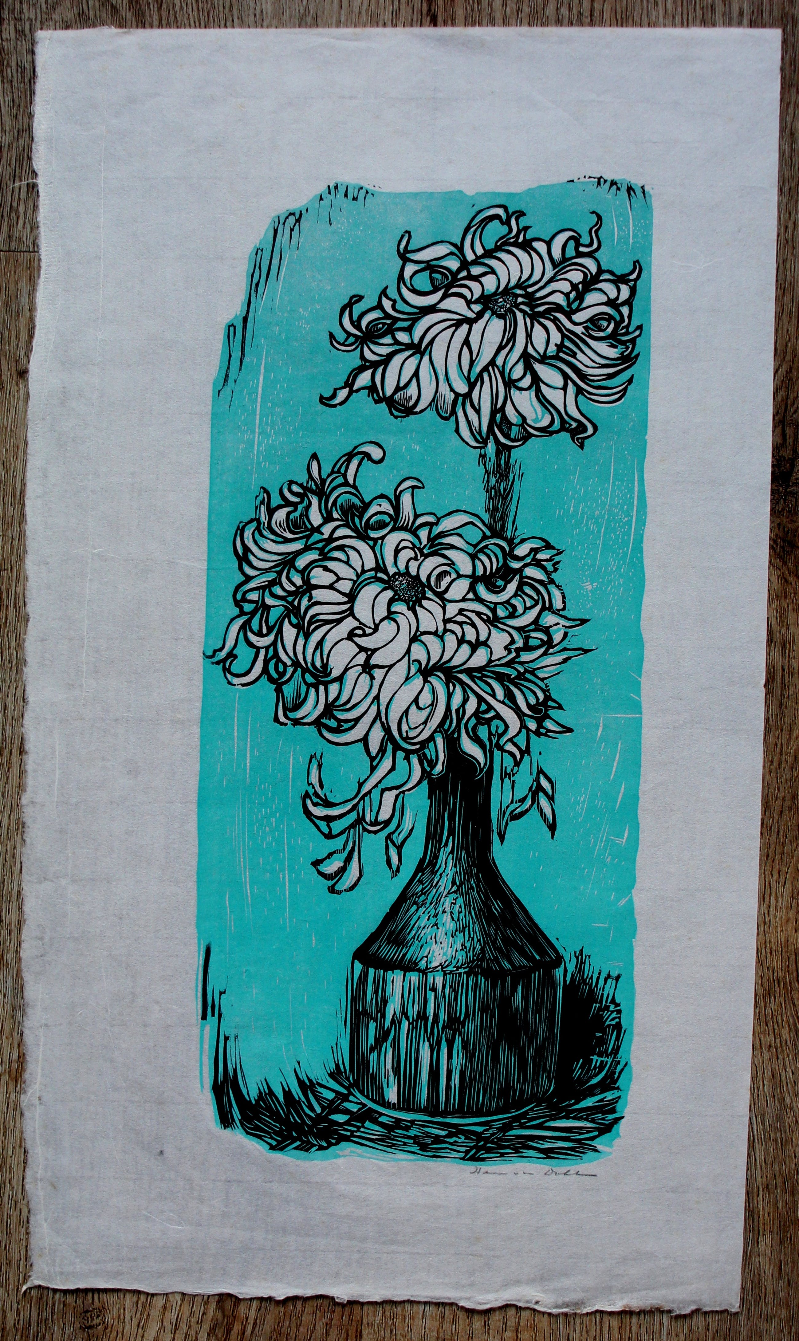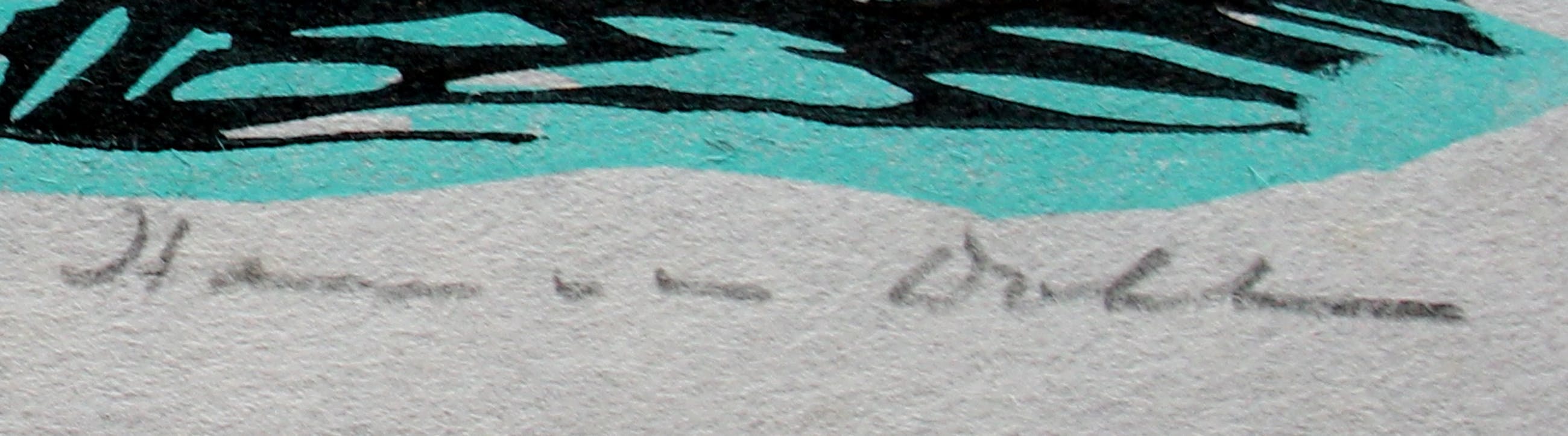 Houtsnede van Hans van Dokkum. Afmetingen blad: H51 x b29.5cm. Afmetingen voorstelling: H38.5 x b17.5cm. Het werk is rechts onderaan, met potlood, gesigneerd door de kunstenaar. De authenticiteit van dit werk wordt volledig gegarandeerd. Een certificaat van echtheid kan, op verzoek, worden gemaild.