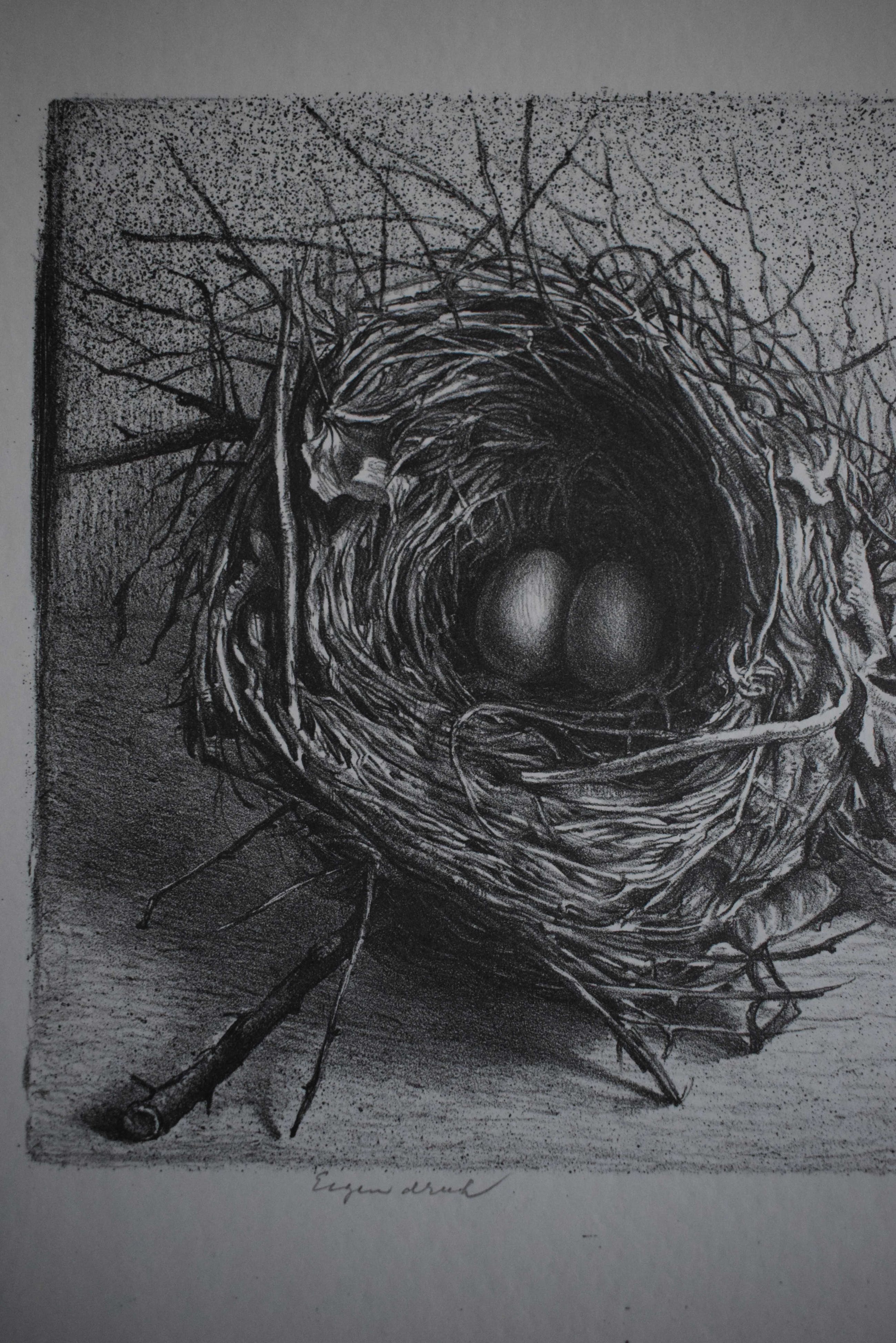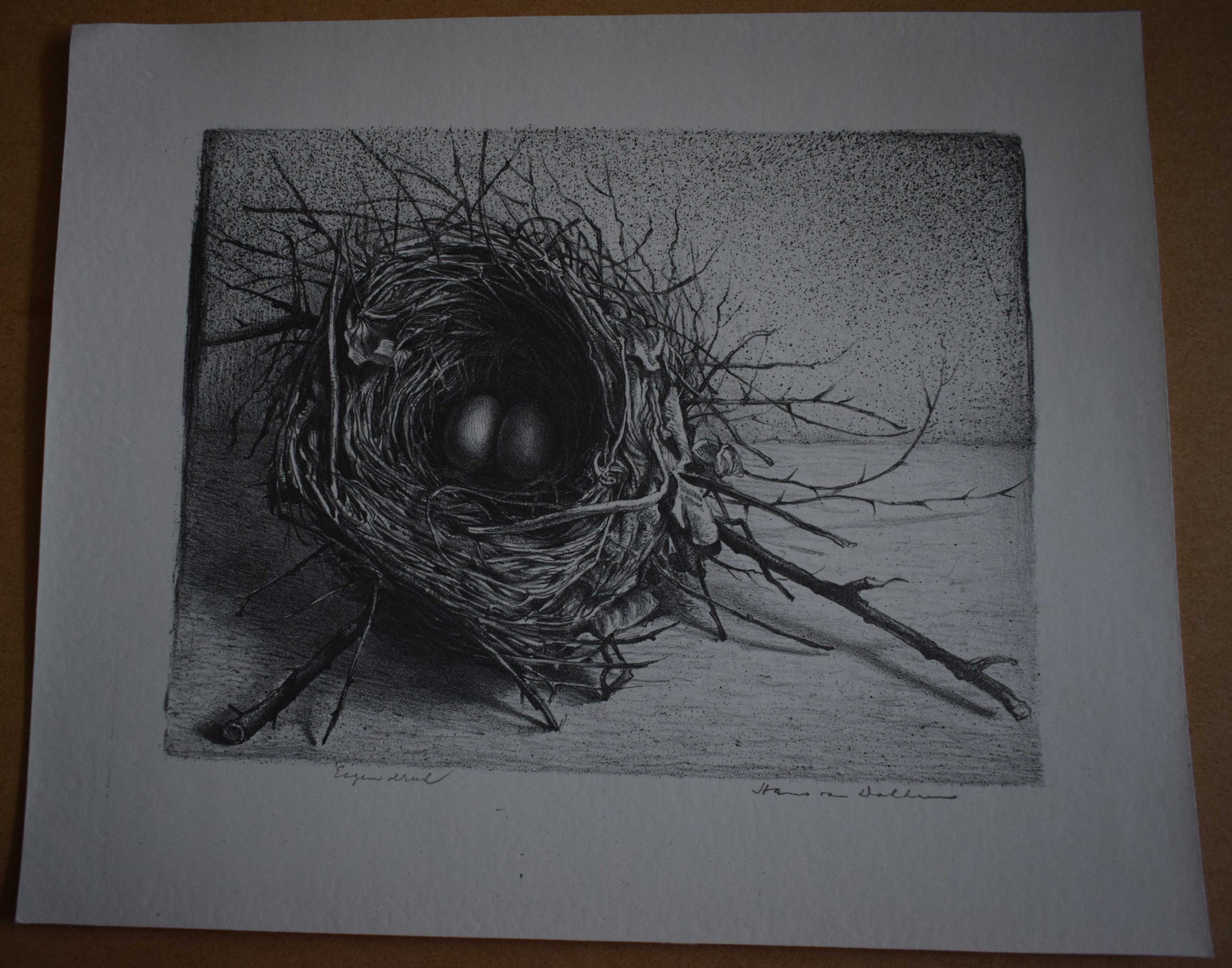 Een stilleven van Hans van Dokkum, met een vogelnestje met 2 eitjes