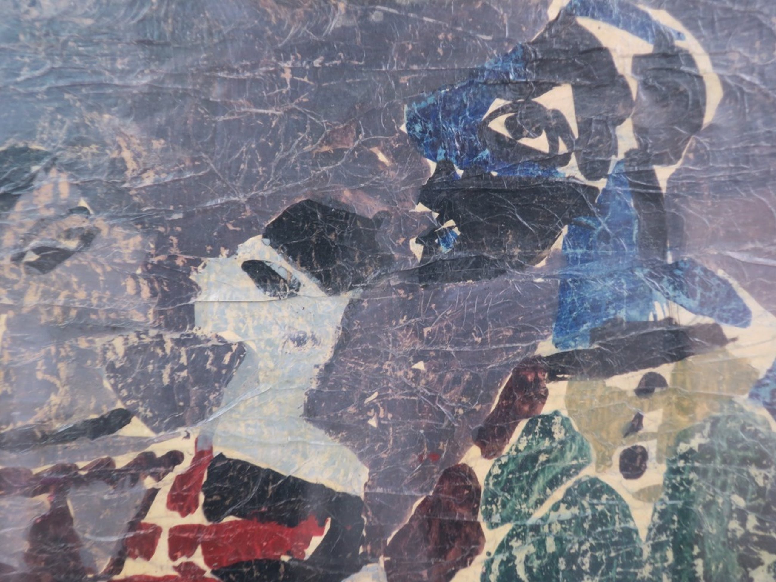 Kleine beschadigingen aan lijsten worden niet beschreven! Bij ingelijste werken achter glas vermelden wij altijd glasschade. Passe-partouts worden op geen enkele manier gegarandeerd en ook niet altijd meegezonden. Alleen als een werk niet uit het passe-partout te halen is, zal dit vermeld worden.