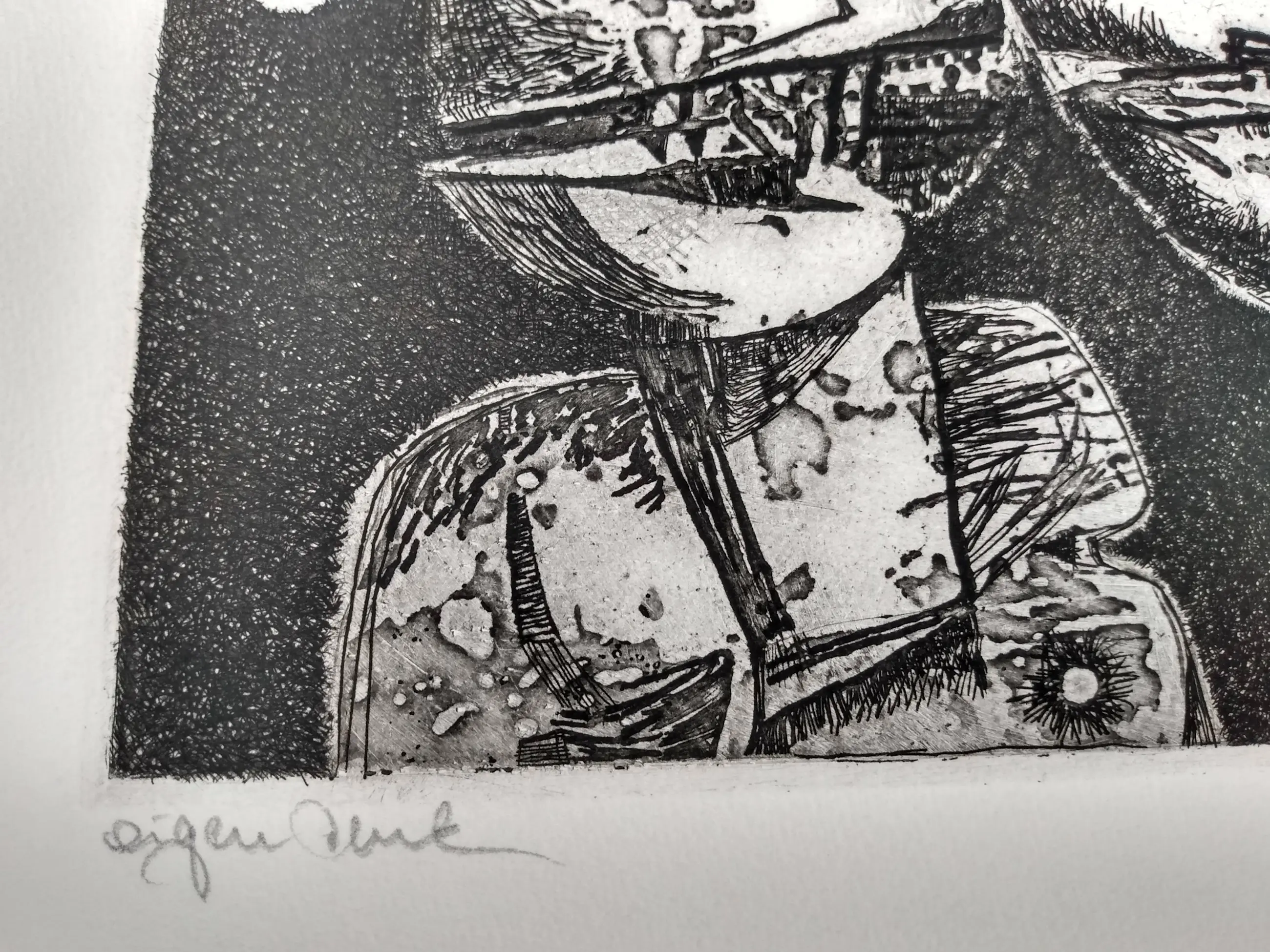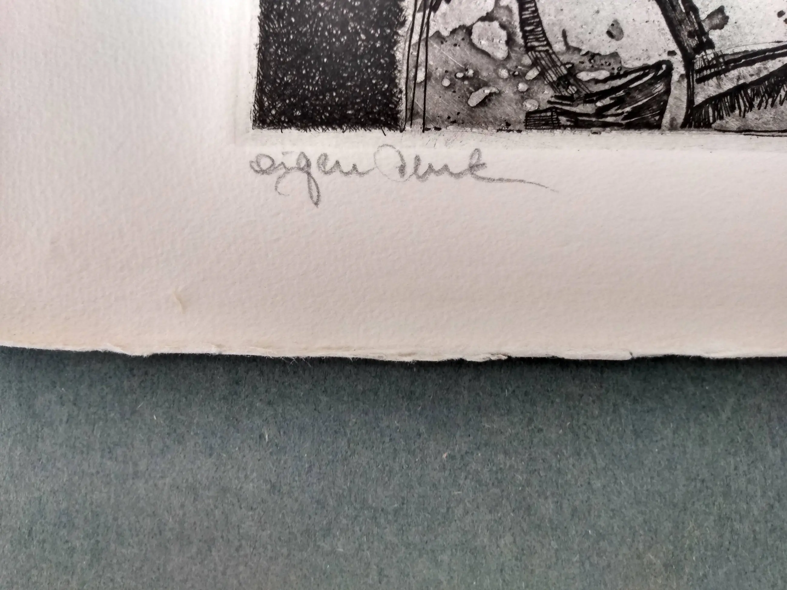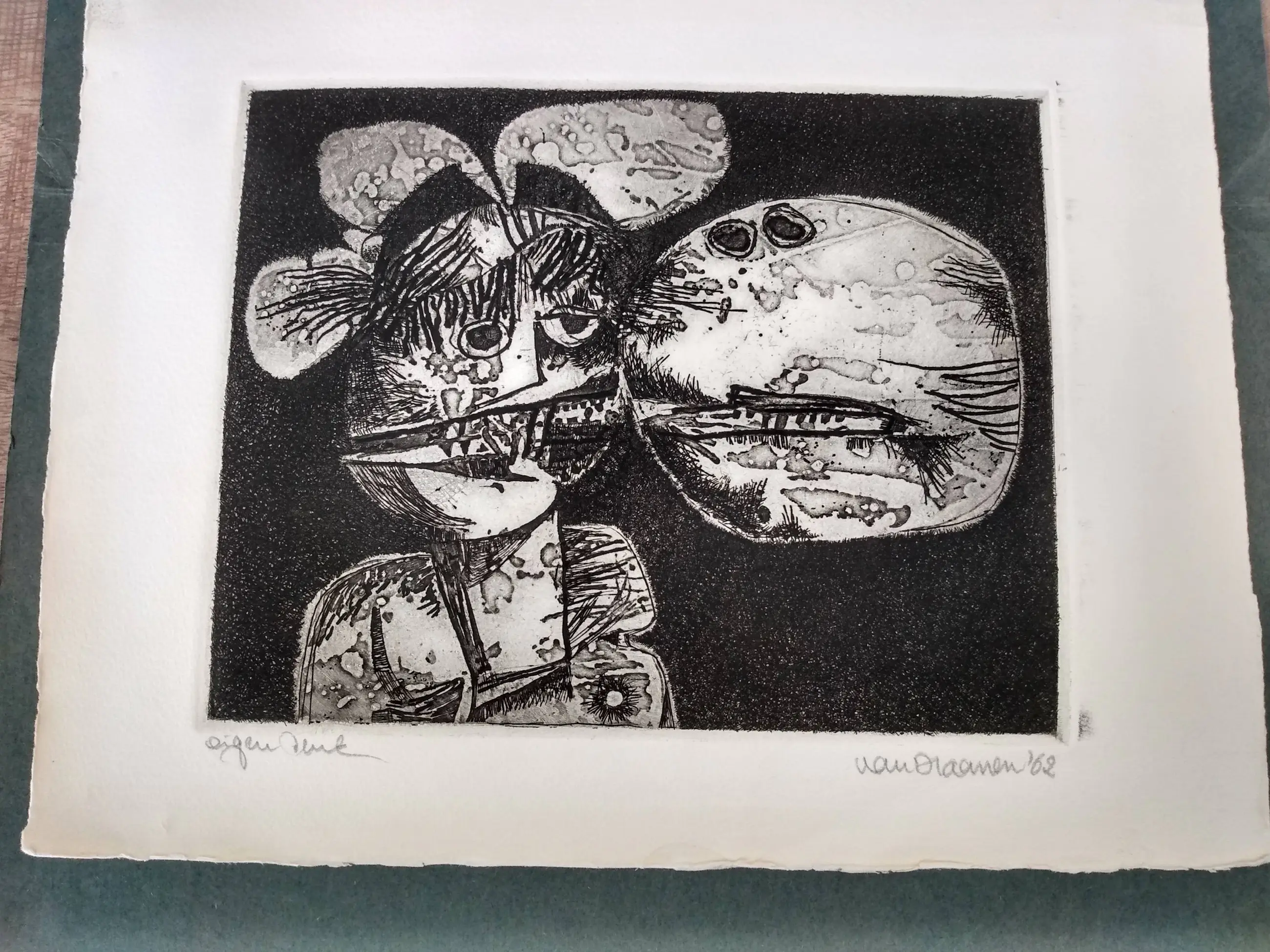 Zwart wit ets; eigen druk; Bladmaat 24,5 X 33. Maat ets 23 X 19. Geschept papier; jaartal goed leesbaar 1962. Puntgaaf!!