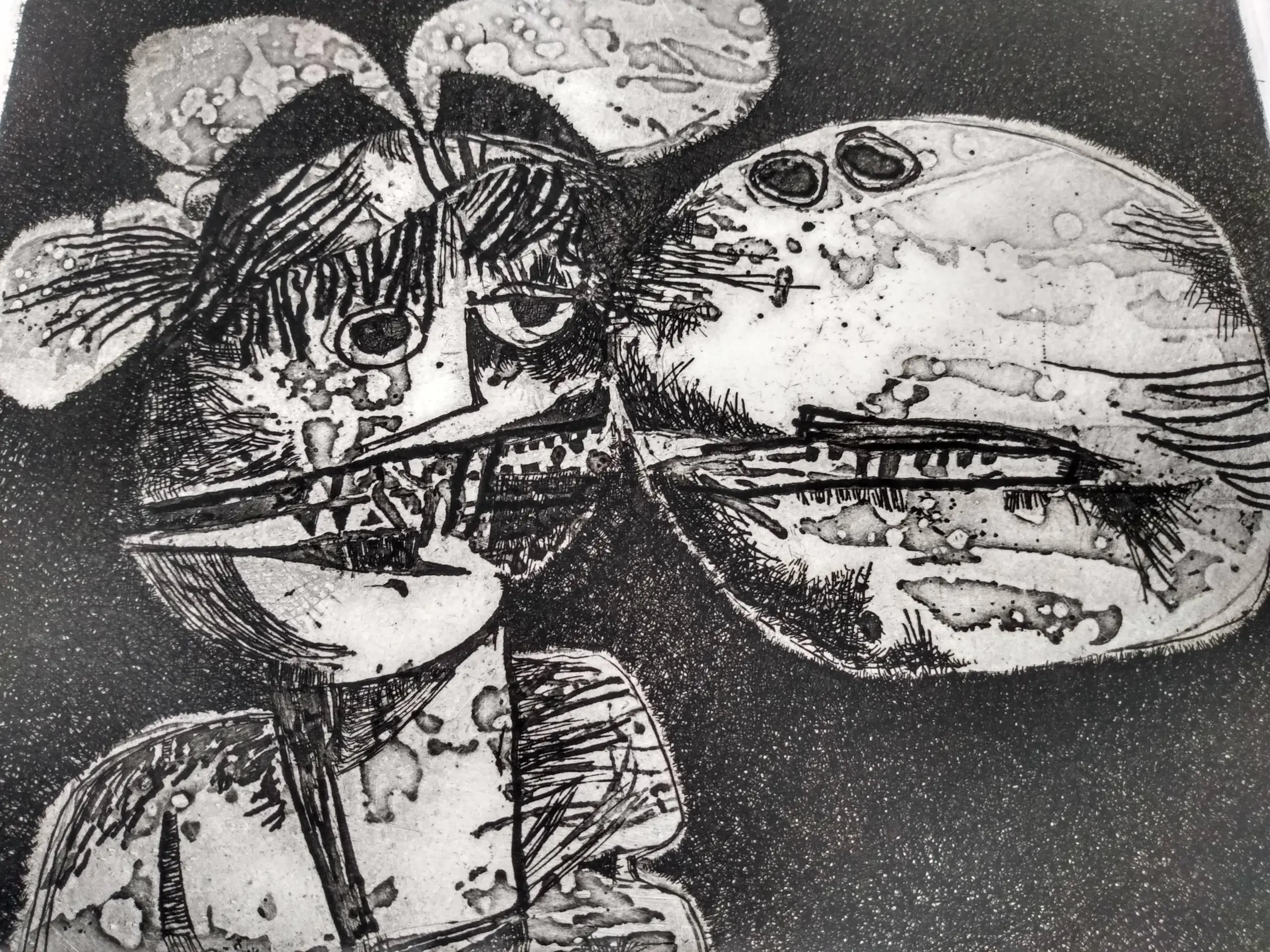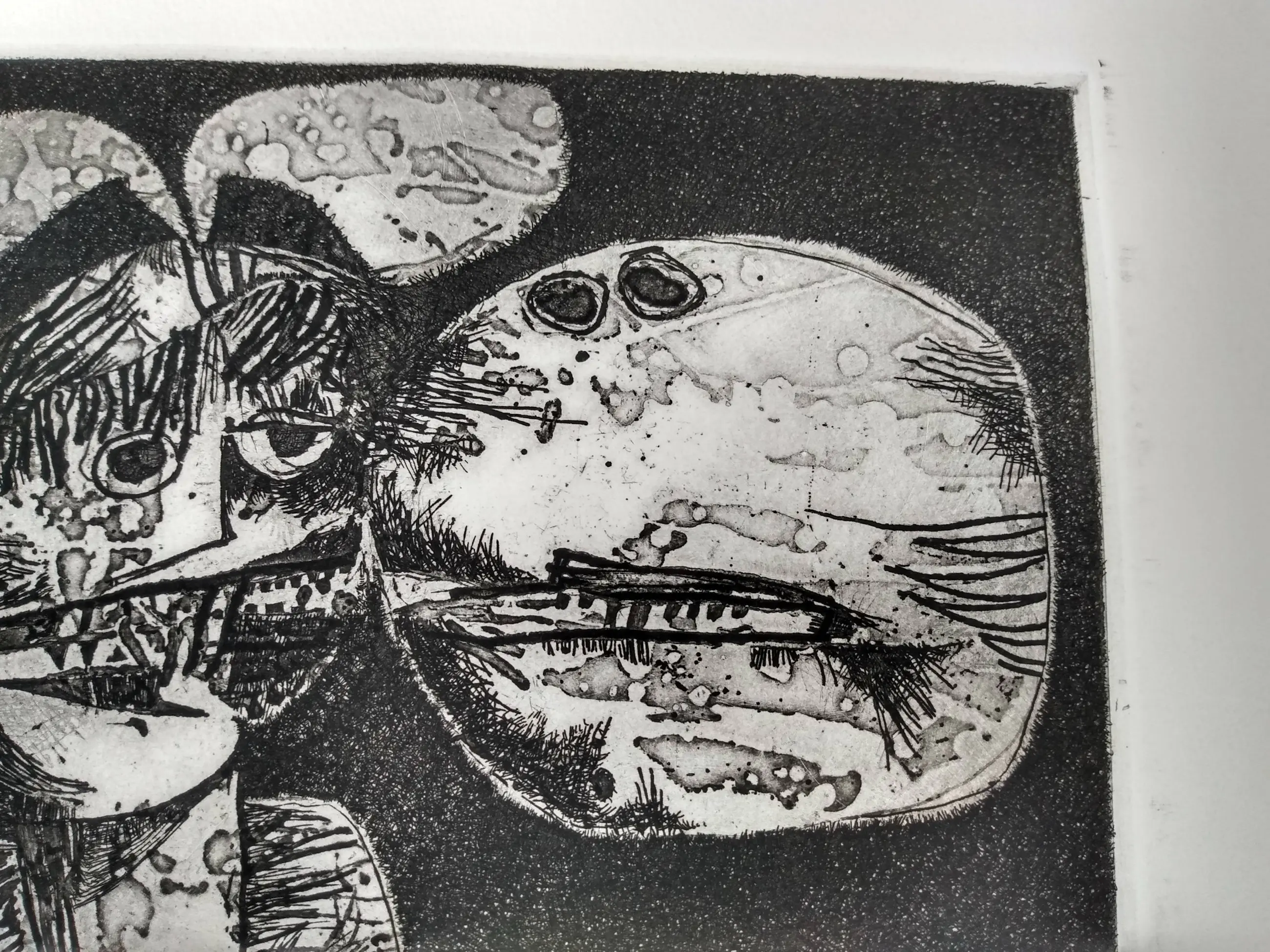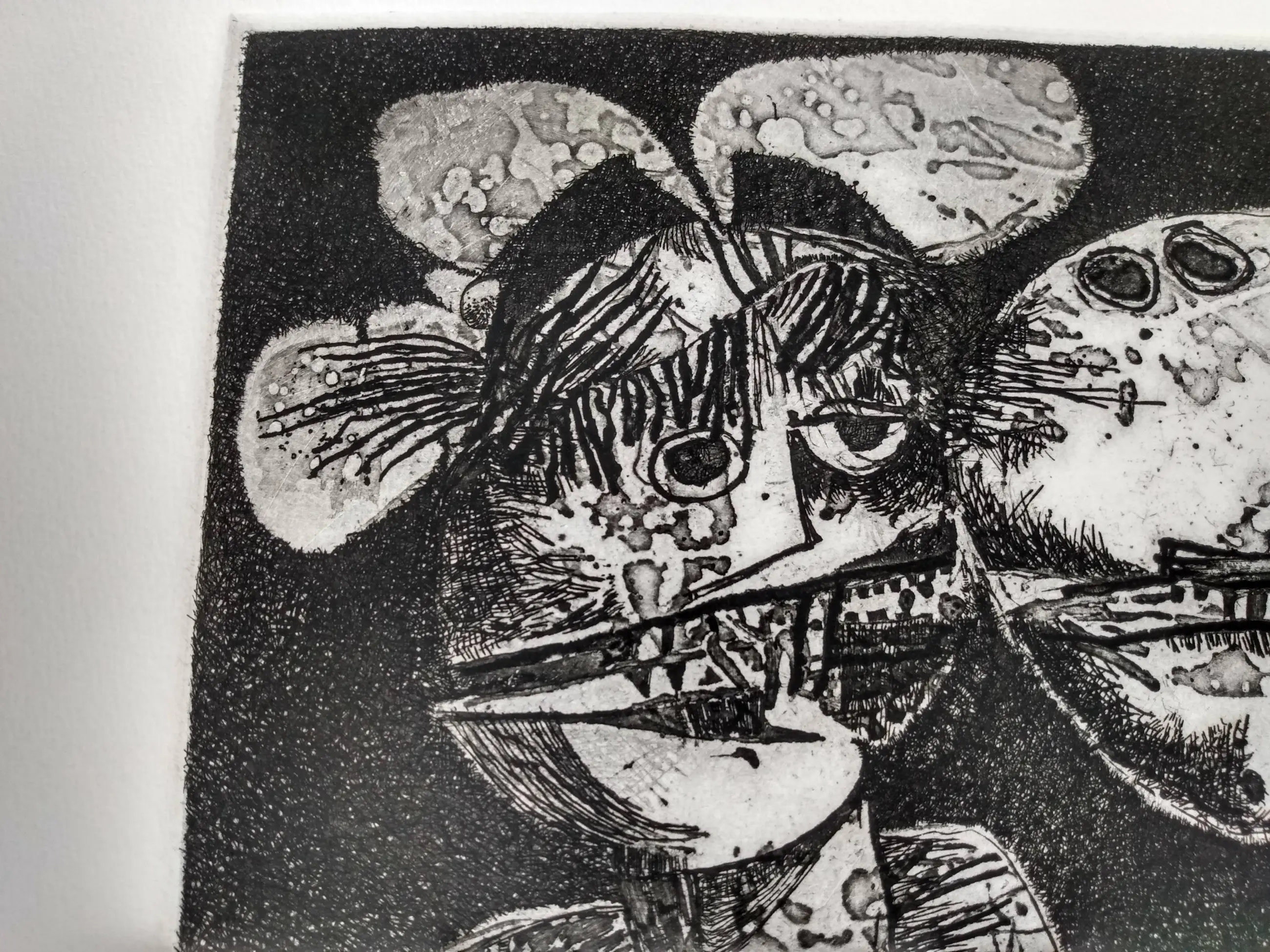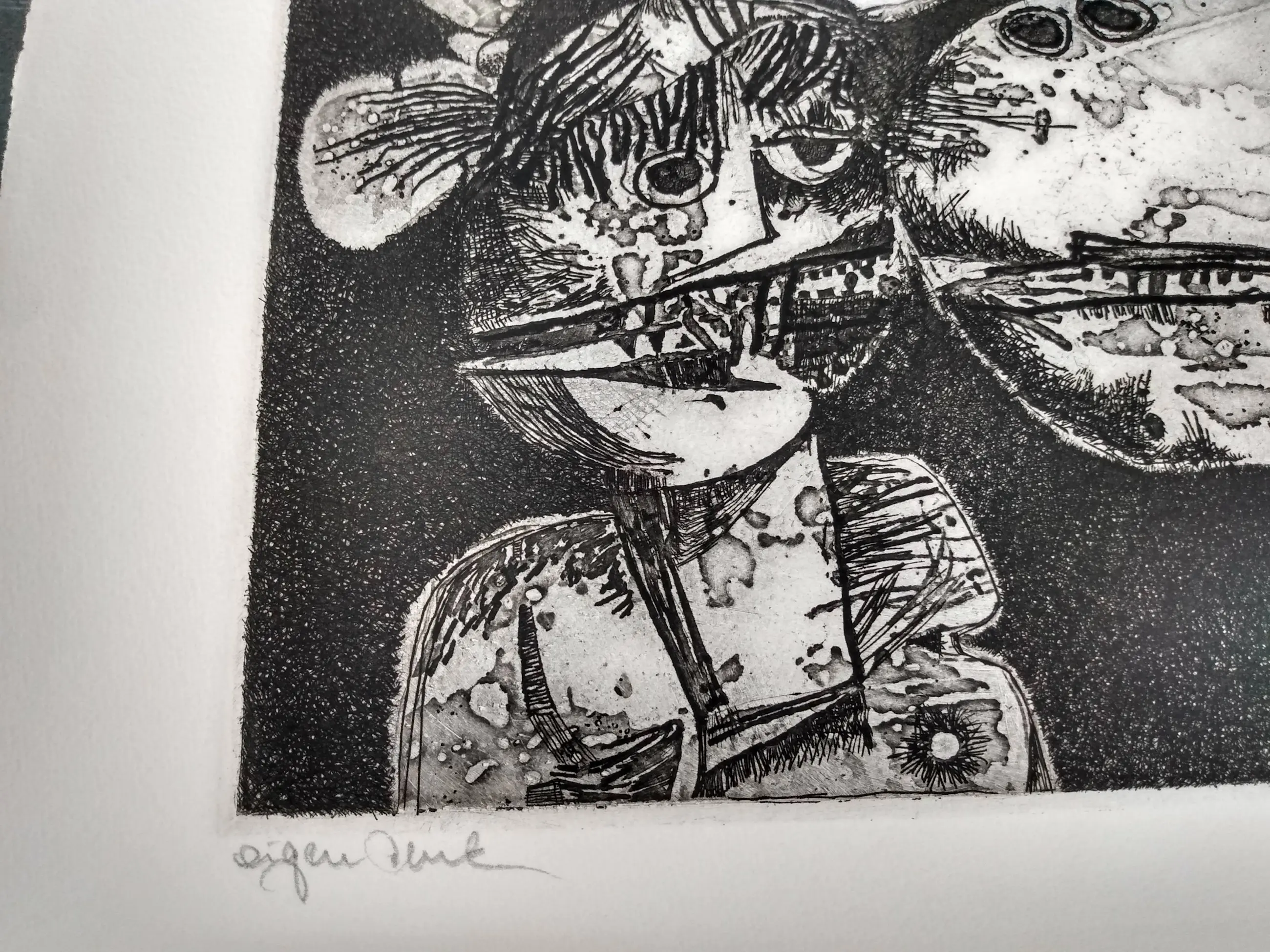 Zwart wit ets; eigen druk; Bladmaat 24,5 X 33. Maat ets 23 X 19. Geschept papier; jaartal goed leesbaar 1962. Puntgaaf!!