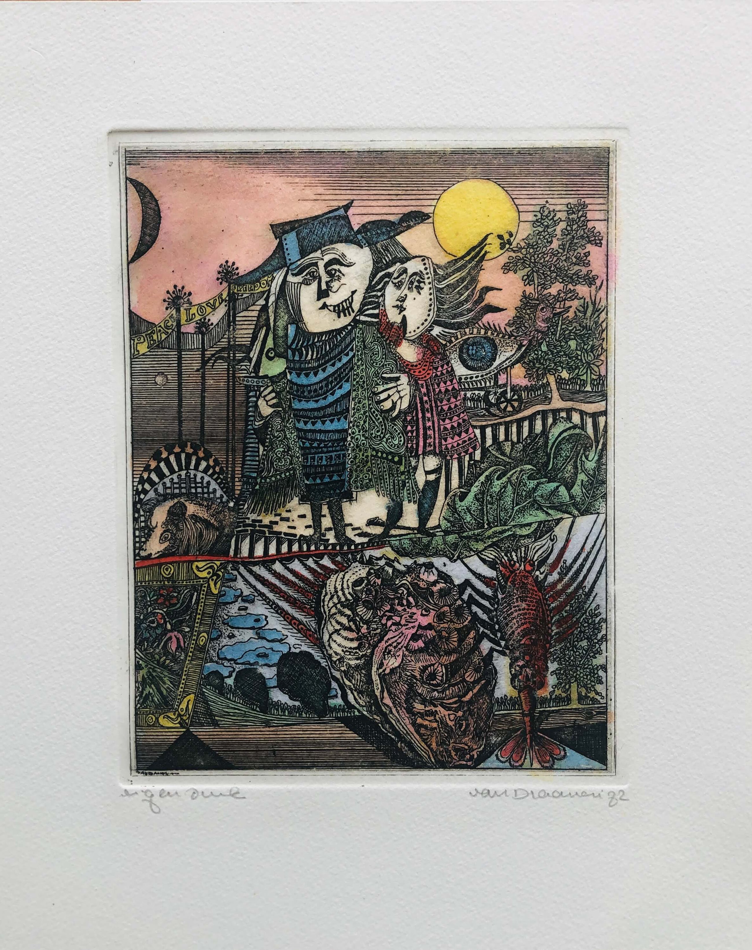 De ets is handmatig door Hans van Draanen ingekleurd. Dus een uniek exemplaar!