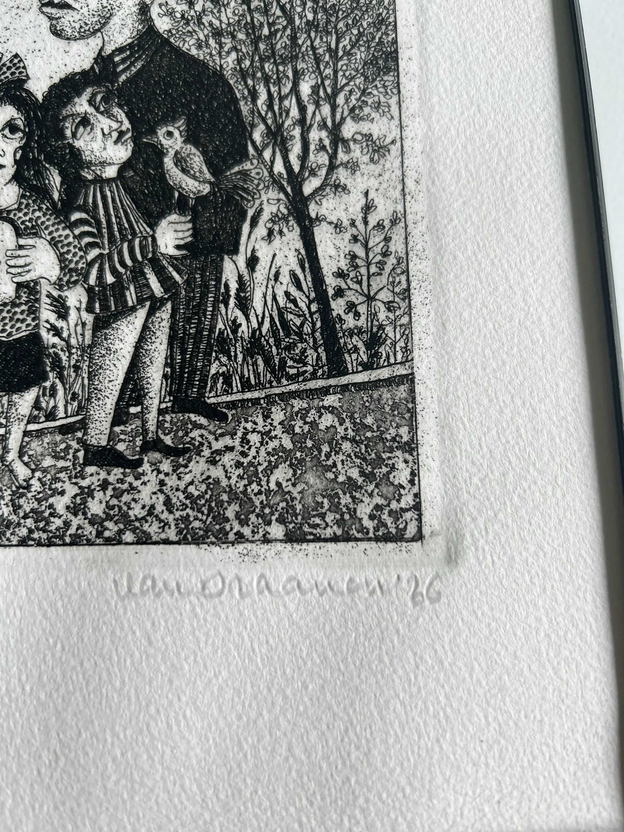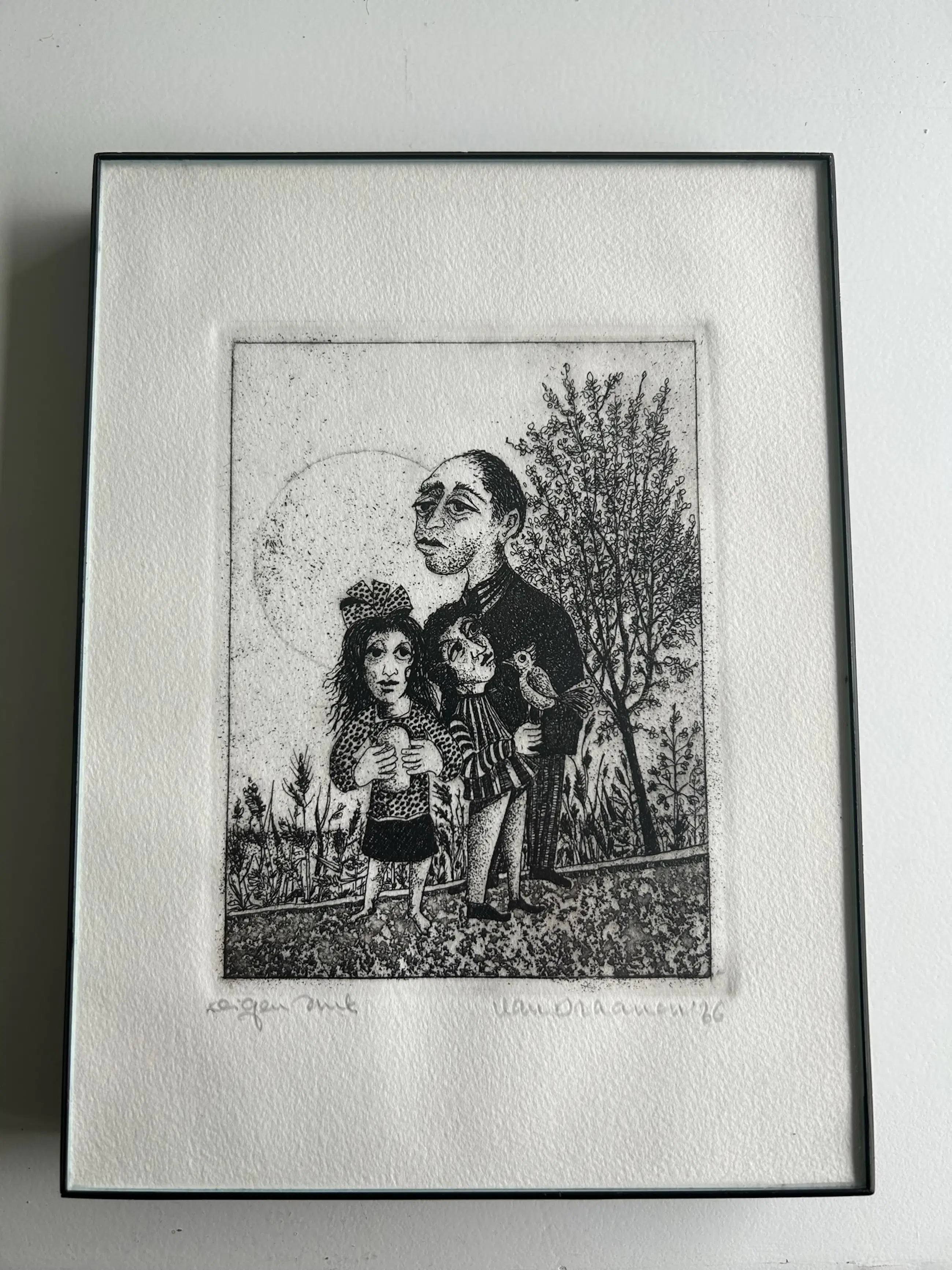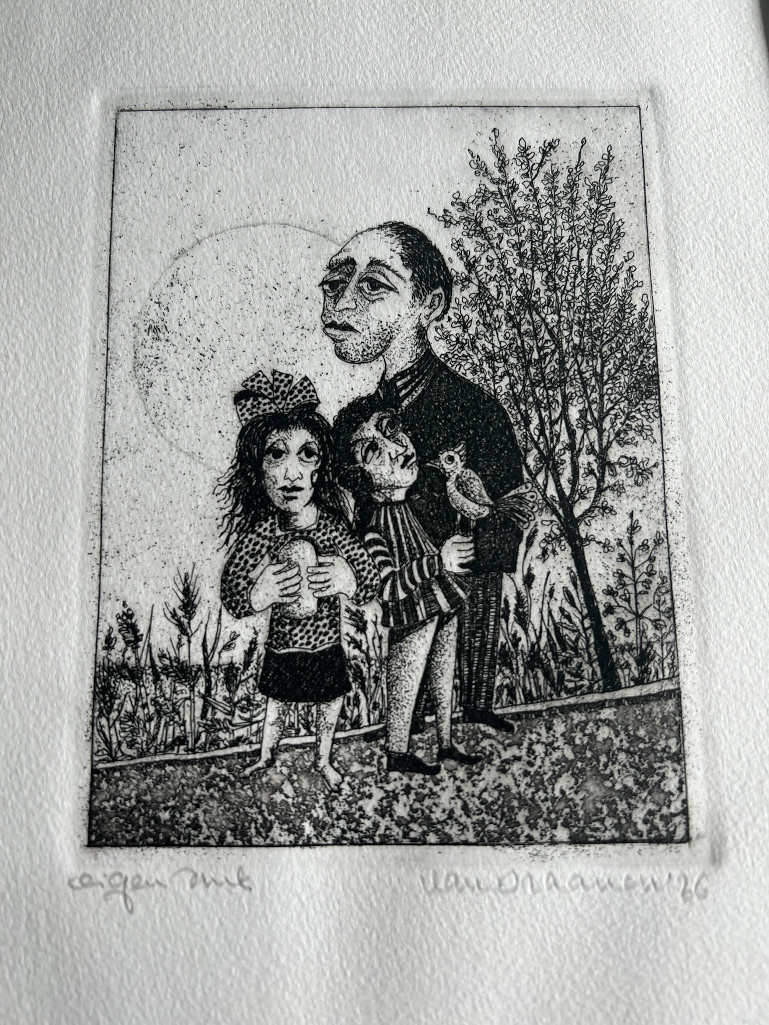 Ets uit 1976 (eigen druk) van Hans van Draanen (Bergen NH).
