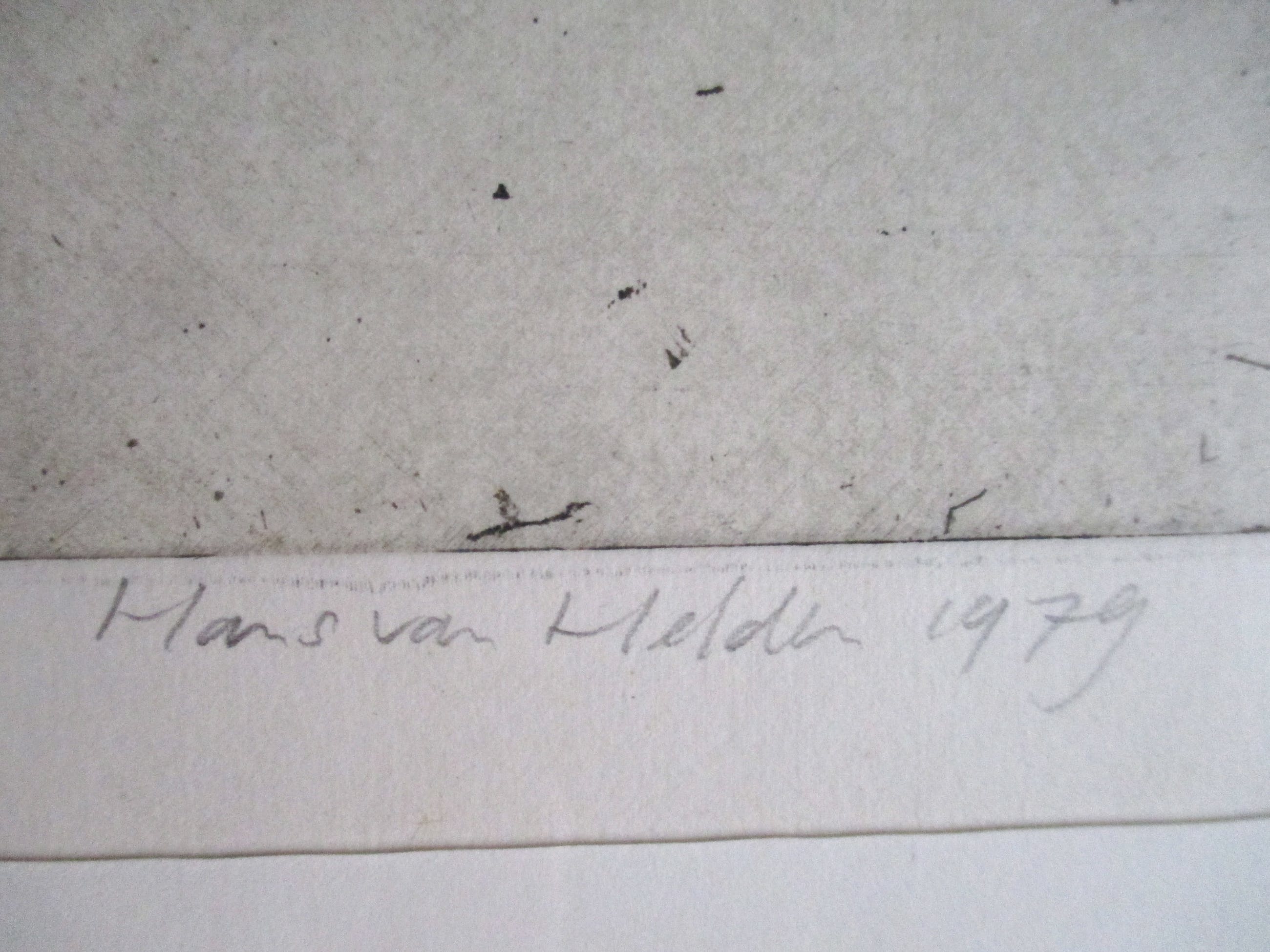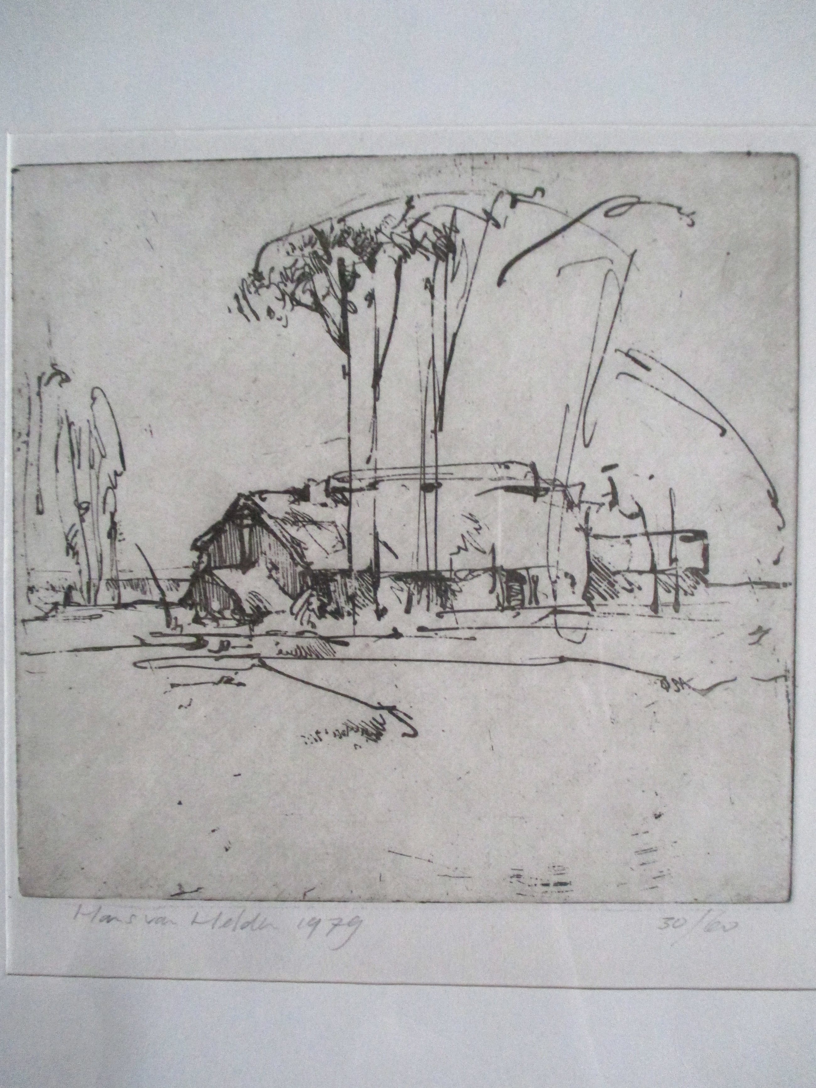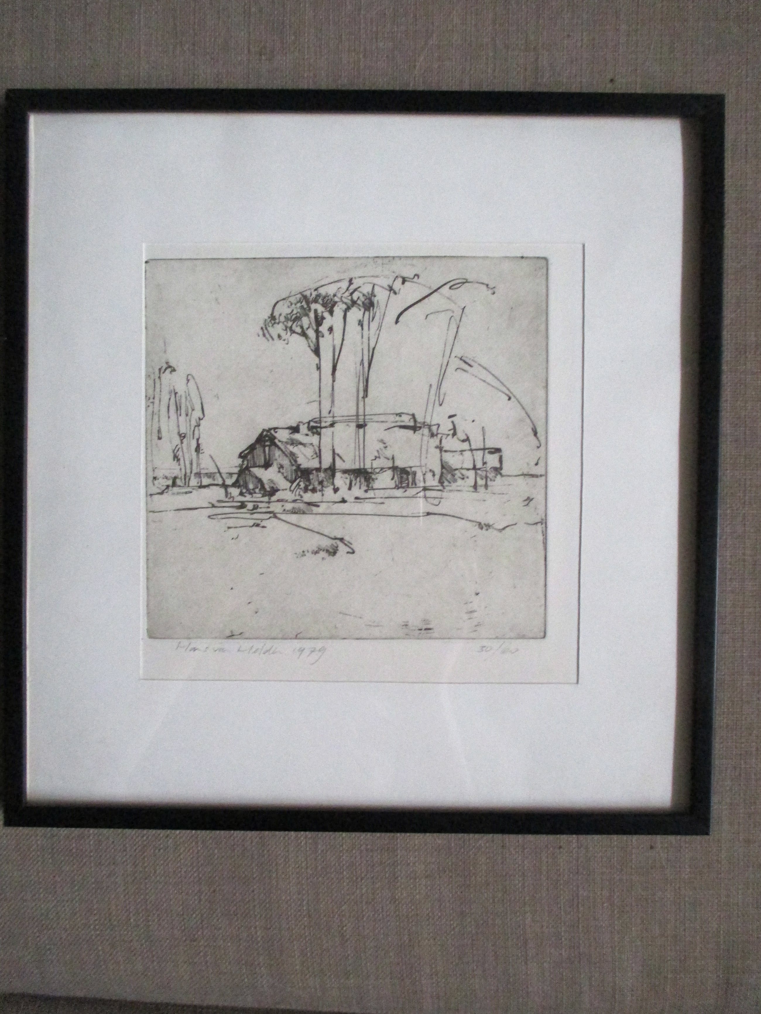 Ets van Hans van Helden, ingelijst in houten lijstje achter glas. gesigneerd, genummerd en gedateerd in potlood.Verzending 8 euro, aangetekend 9,65