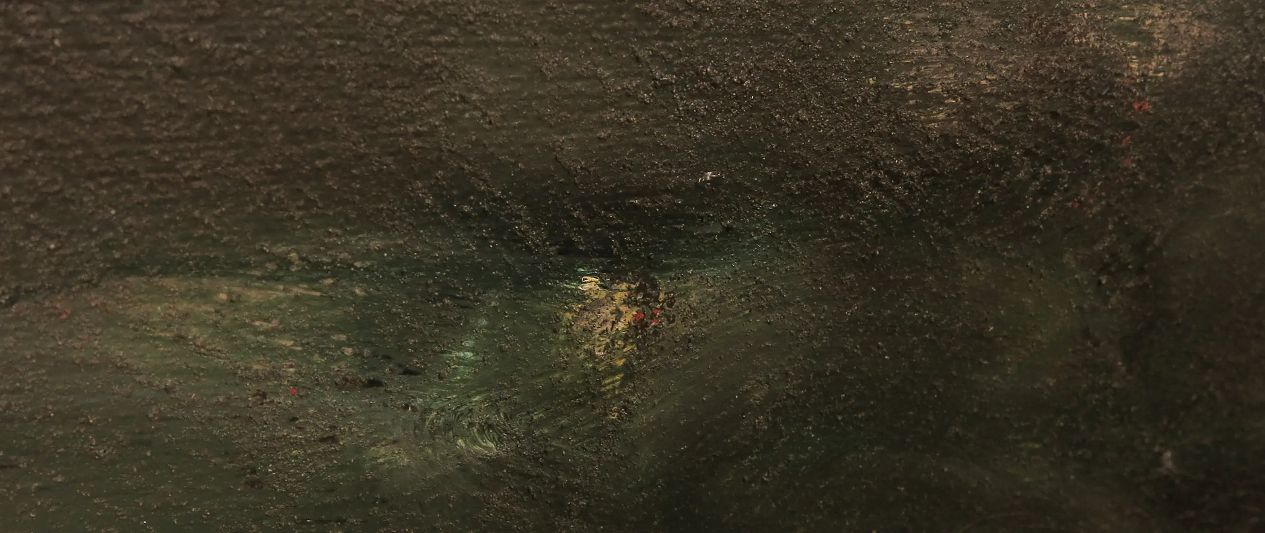 | Wat zeer minimale oppervlakteschade. Rechts onderin zit een kleine deuk in het doek, zoals ook op de detailfoto is te zien. | |