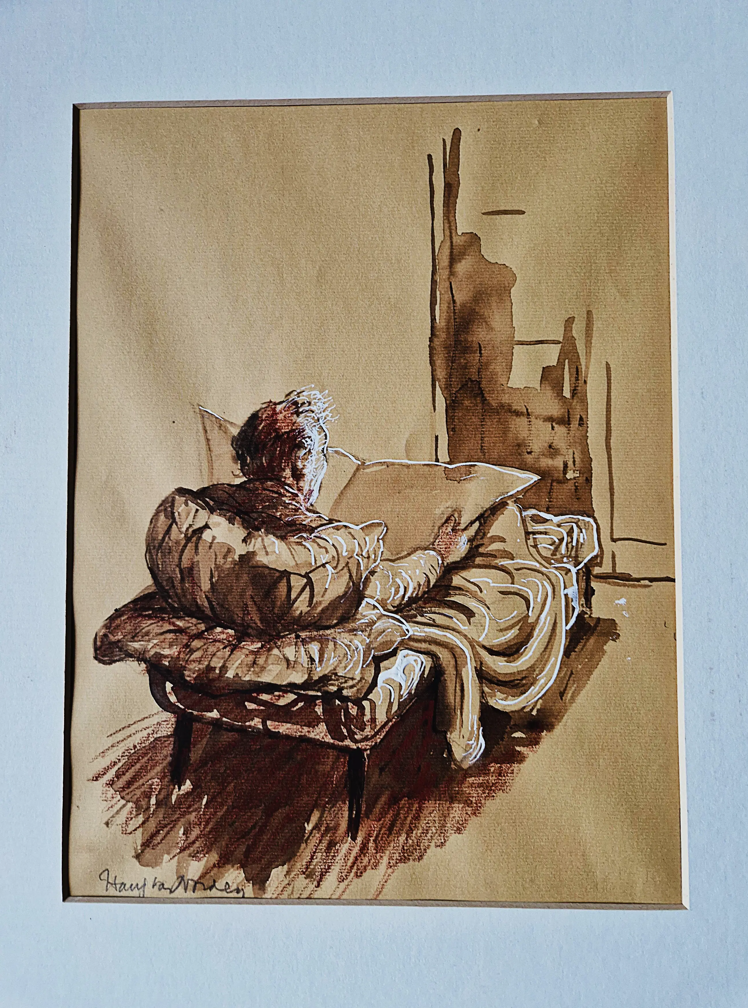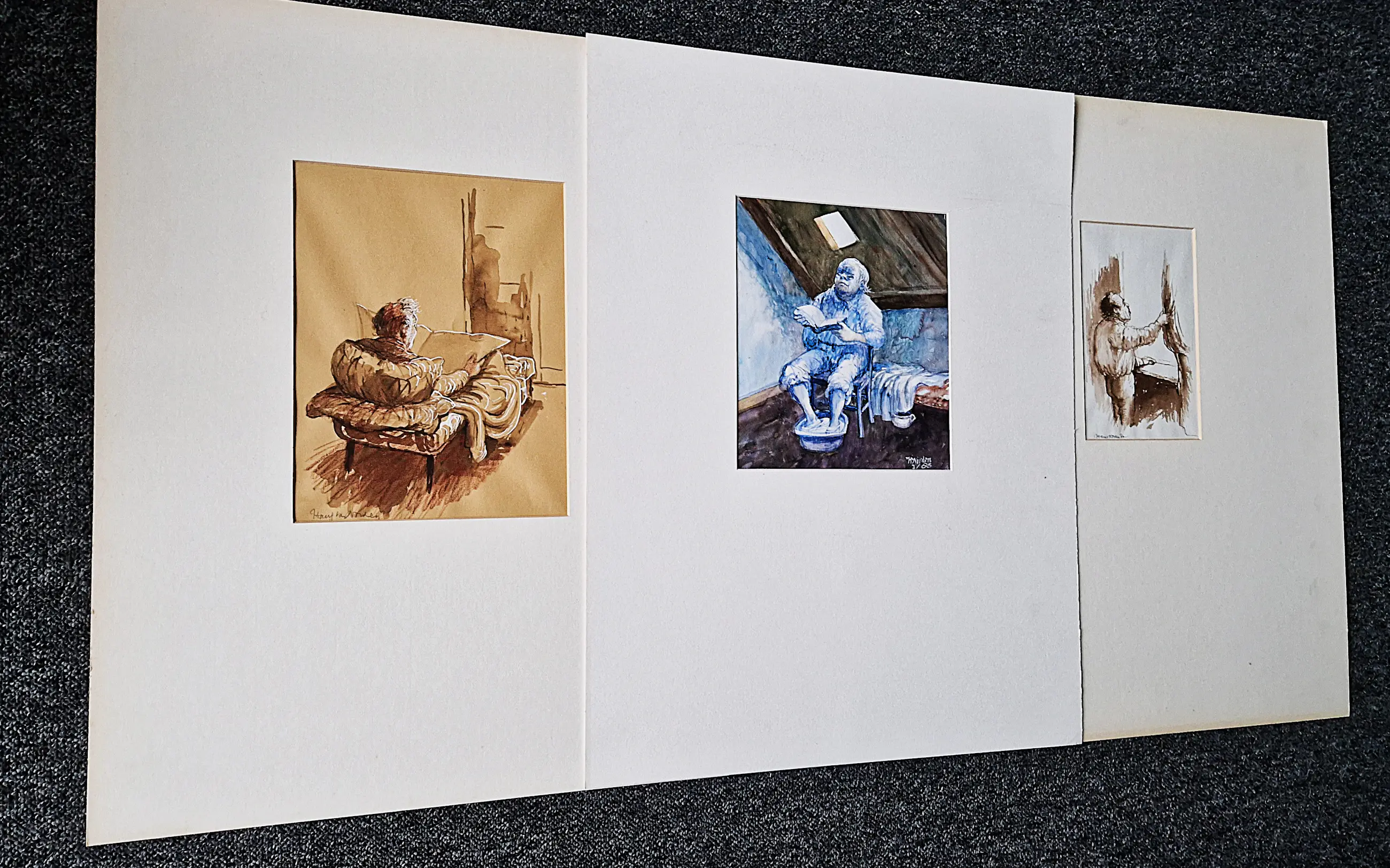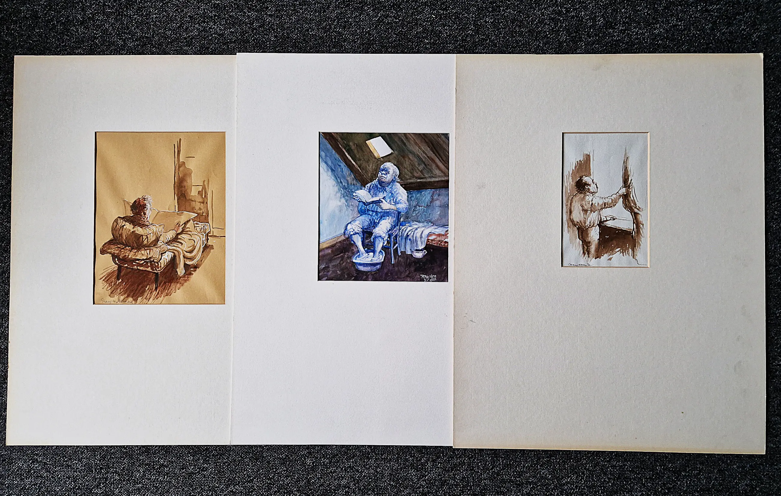 Hans van Norden - Drie karikaturale aquarellen op papier "man alleen" gesigneerd