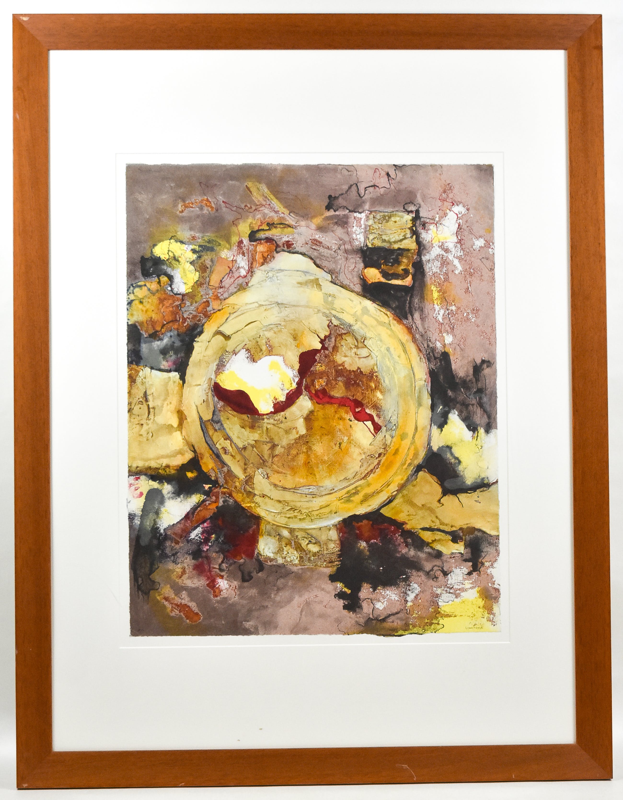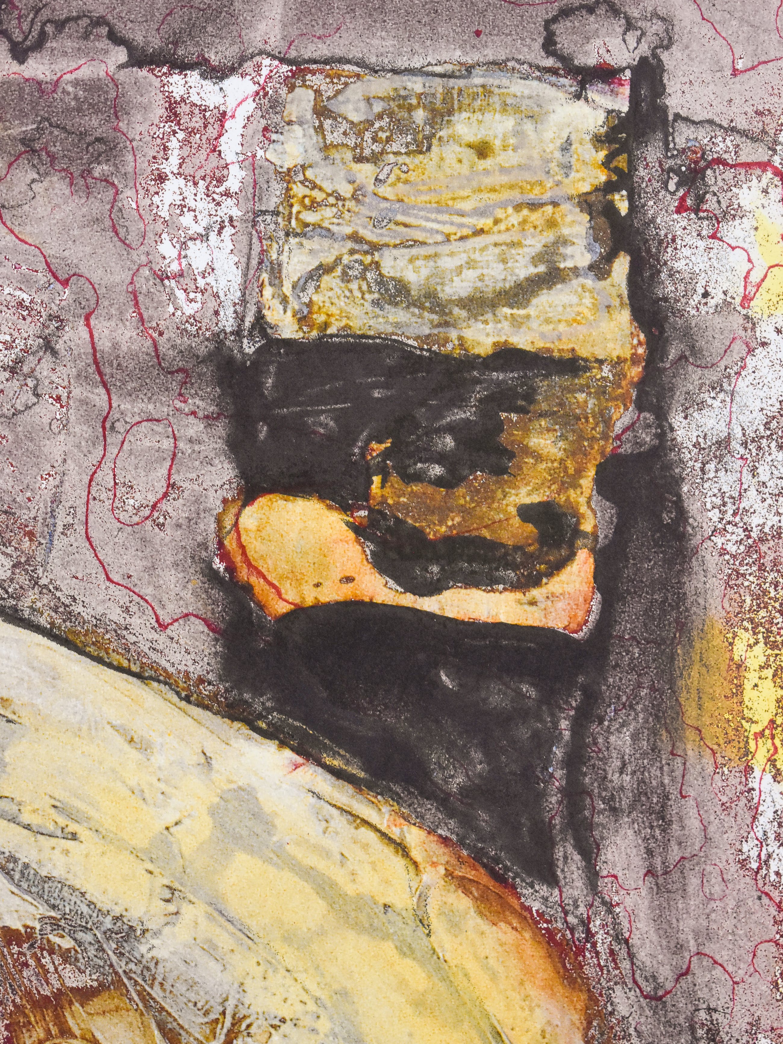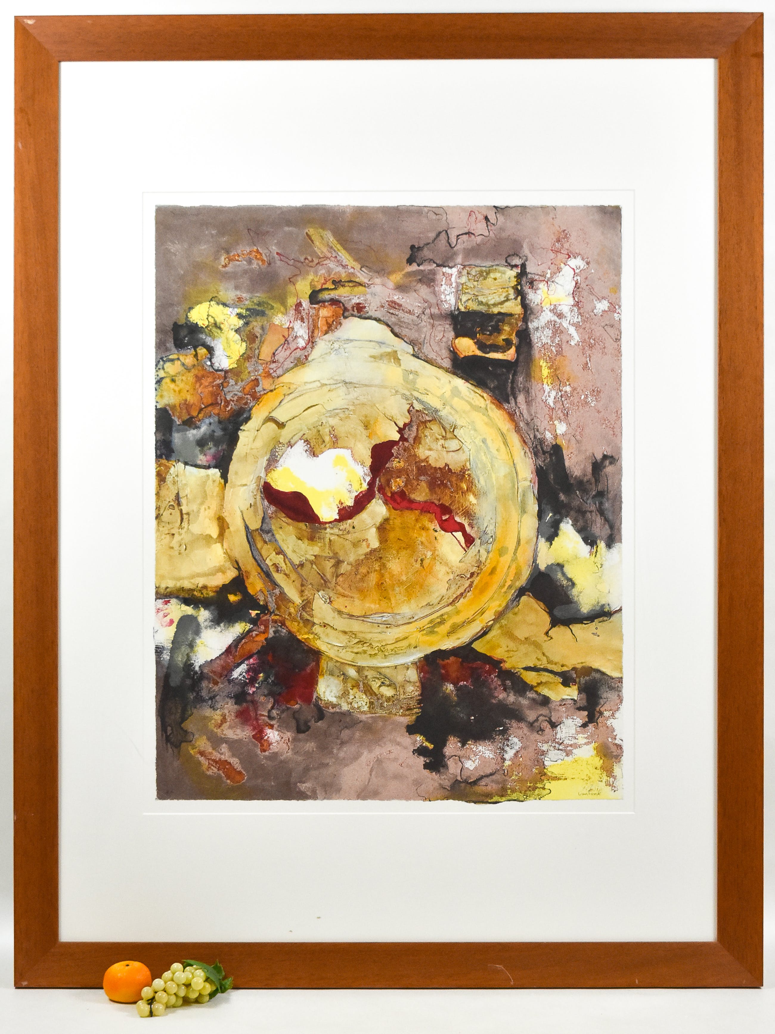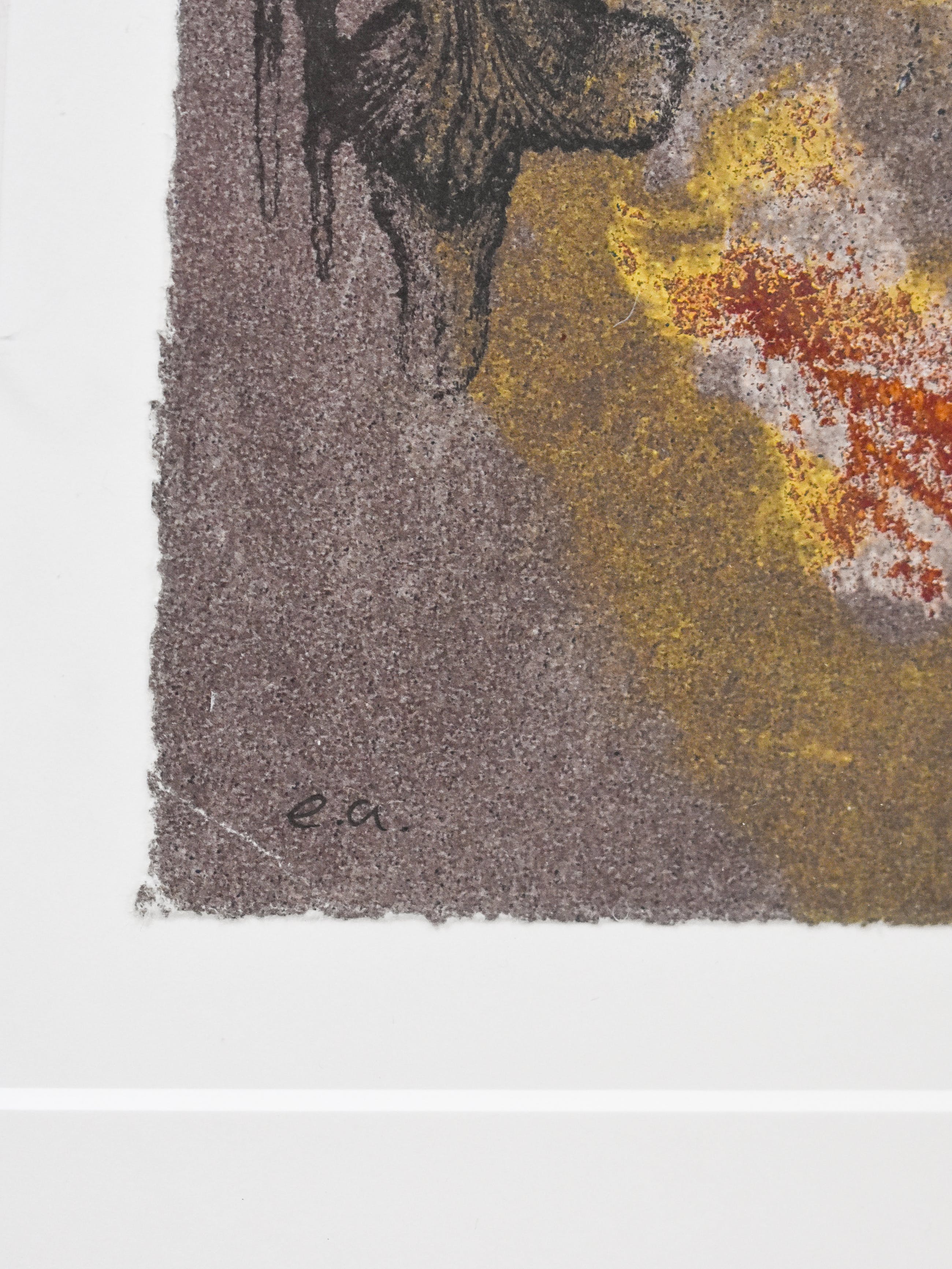 Aangezien het werk uit een bedrijfscollectie komt, kan de lijst wat gebruikssporen overeenkomstig met de leeftijd tonen, deze zijn eenvoudig te verwijderen door de houten lijst licht op te schuren