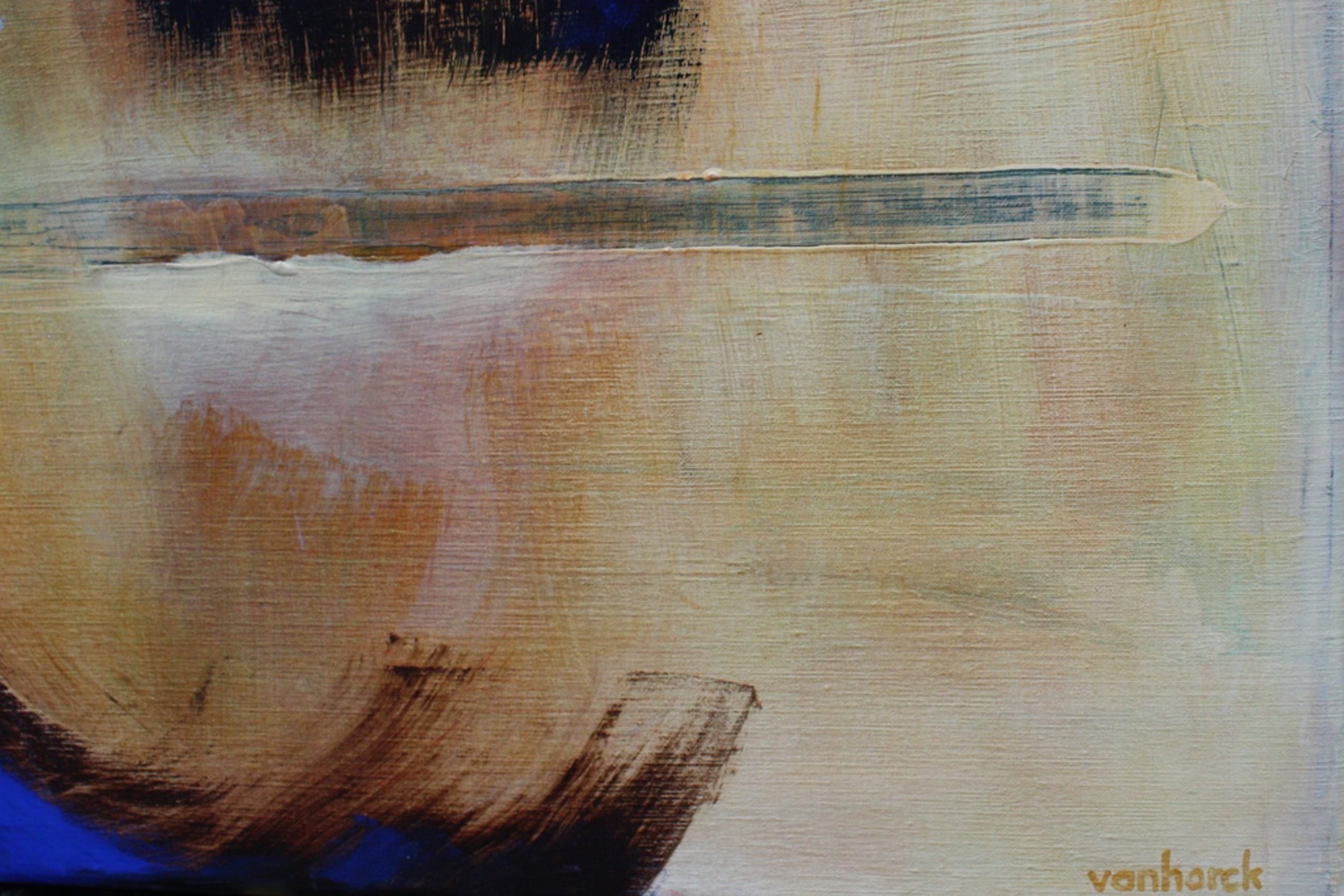 Het schilderij loop in de zijkanten door, zodat het niet ingelijst is.