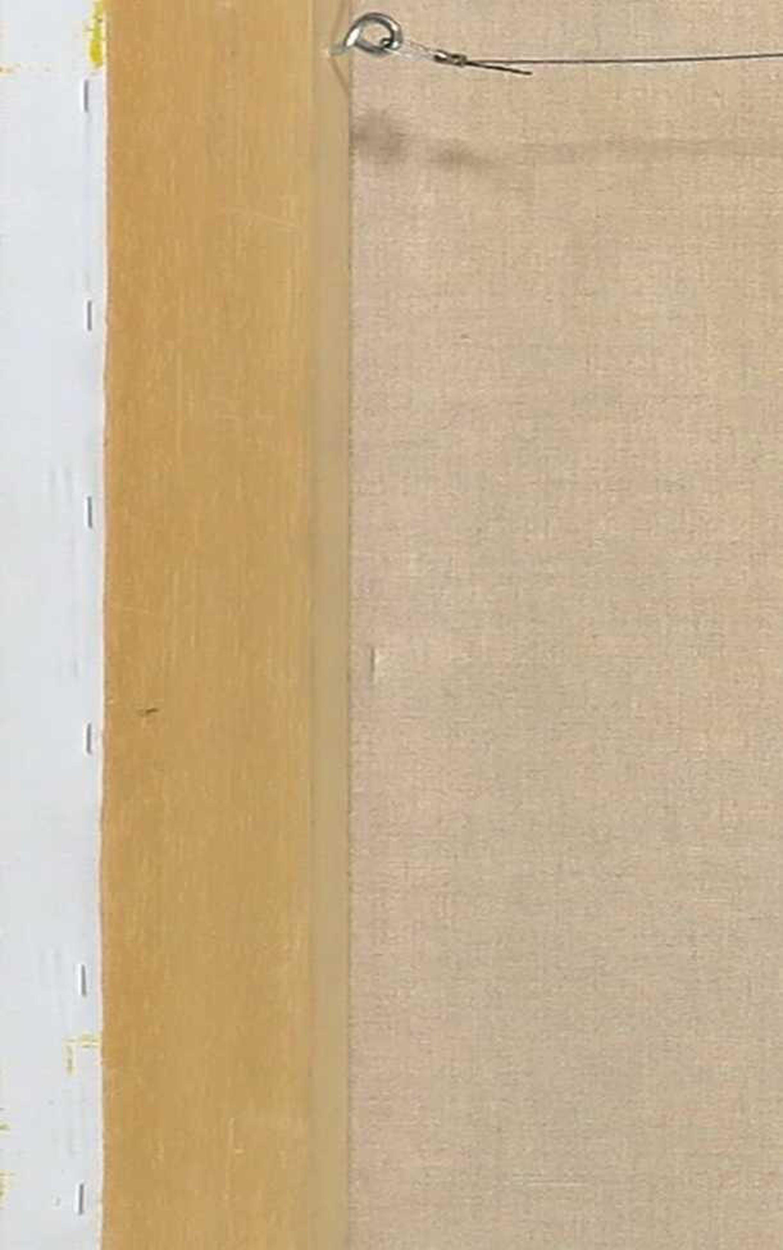 | Met wat slijtage langs de randen en hoeken. Het doek trekt wat in de onderste hoeken. Er zit een klein scheurtje in het doek, zie de laatste twee foto's voor een impressie. | |