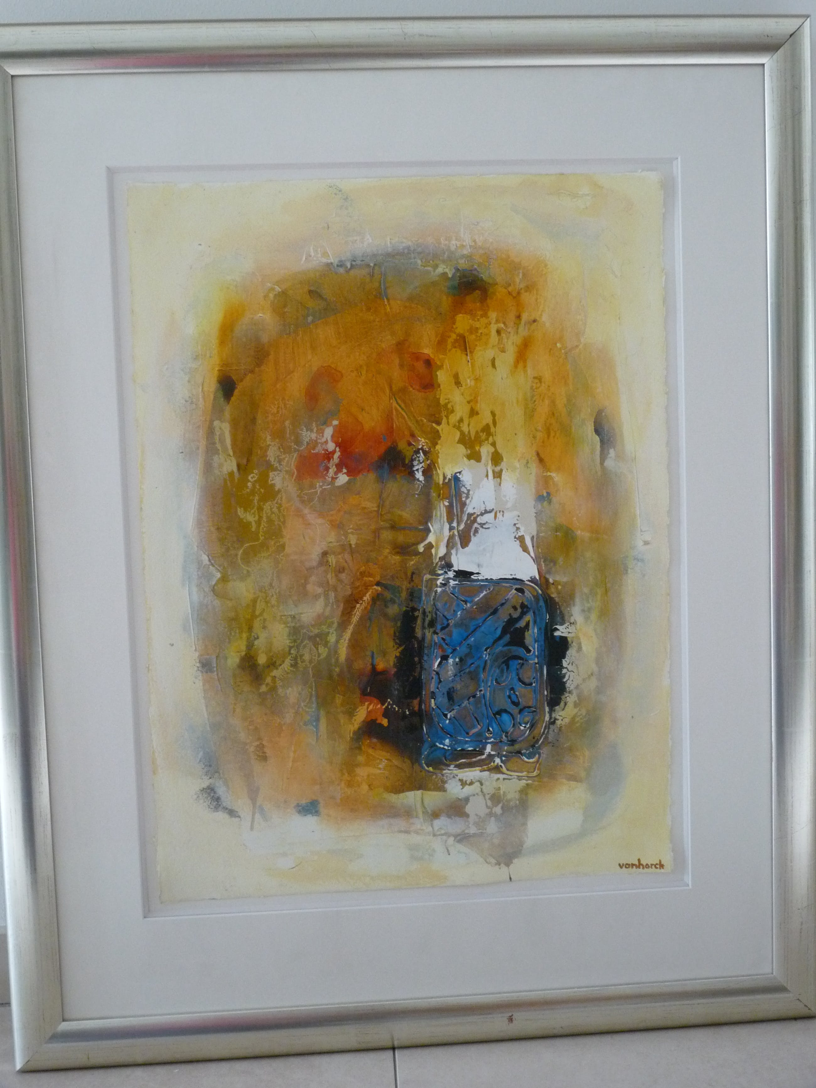 Gouache achter glas beoordeeld. Lijst is ook in goede staat (kleine gebruikssporen)
