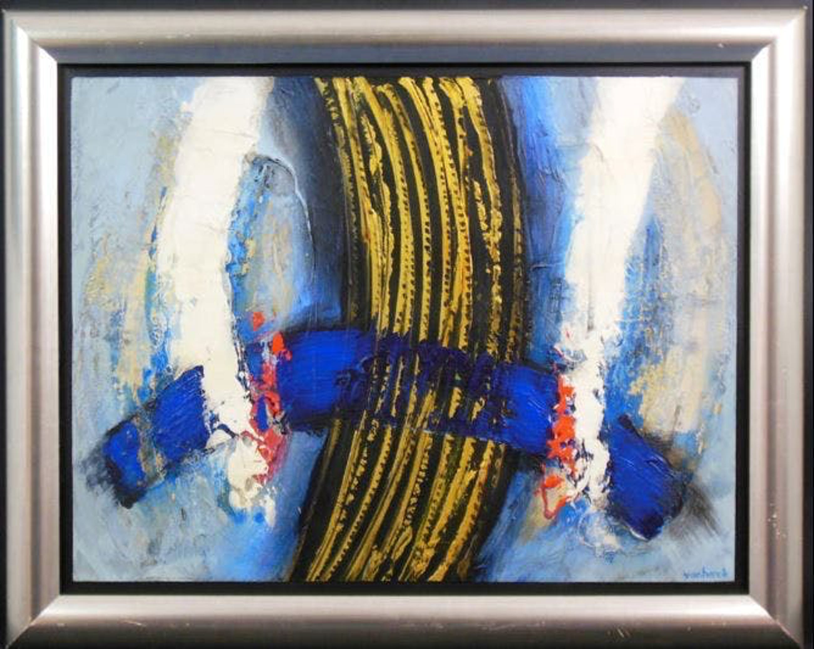 Titel: Exodus Jaartal: 1999 Afmetingen lijst: 63 cm x 78 cm Gesigneerd: Ja, handgeschreven (rechtsonder) Materiaal: Olieverf op paneel Ingelijst: Ja, in zilveren houten lijst. Conditie: In zeer goede staat. Oorspronkelijke galerieprijs: € 2269,00