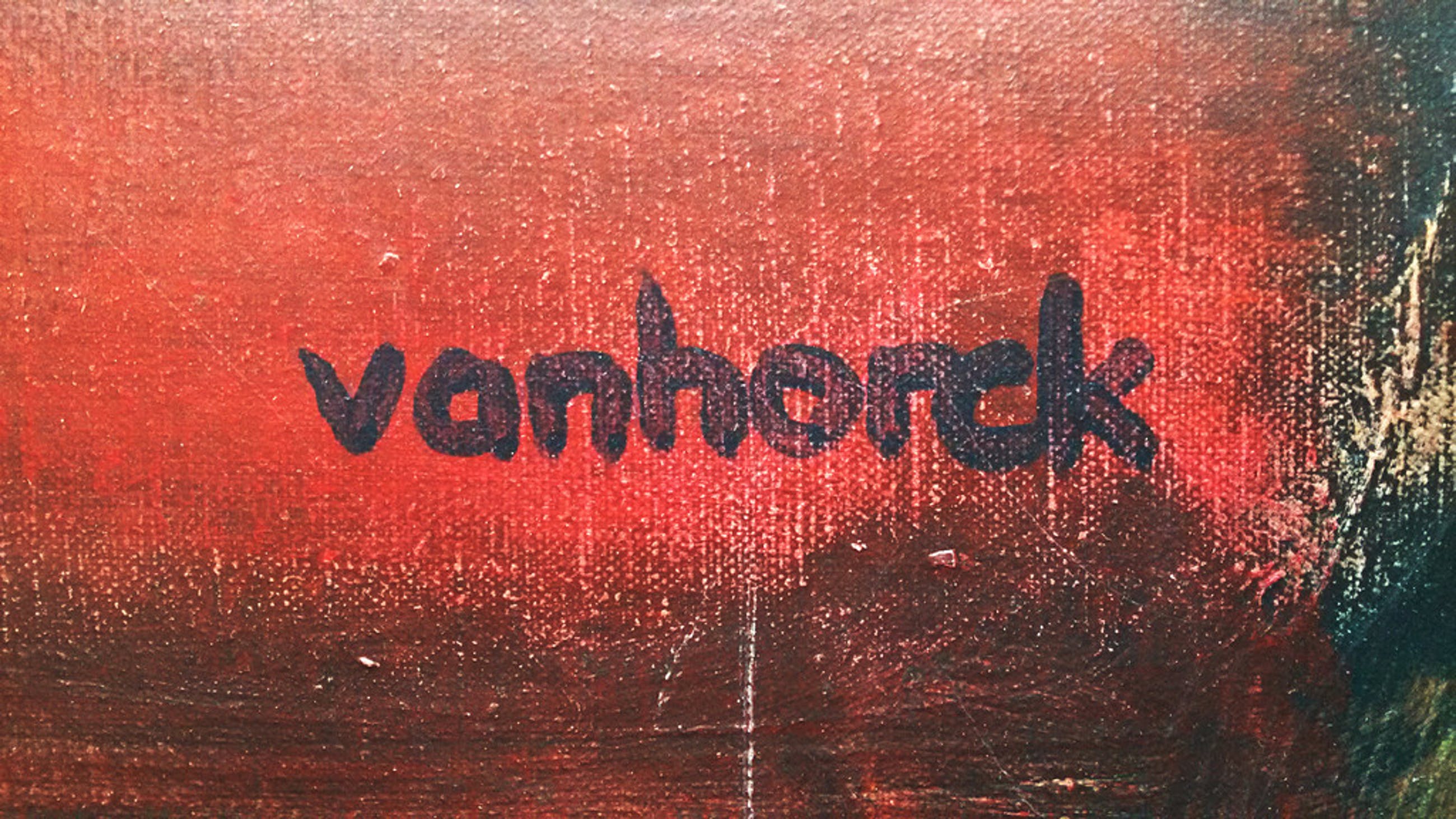 Zeer groot, karakteristiek werk van Hans Vanhorck. Gemengde techniek (hoofdzakelijk acrylverf) op doek, gesigneerd rechtsonder en getiteld, gedateerd (1992) en nogmaals gesigneerd in verso. Gespannen op zeer solide spieraam en beschilderd aan de zijkanten dus kan zonder lijst aan de muur. In uitstekende conditie.