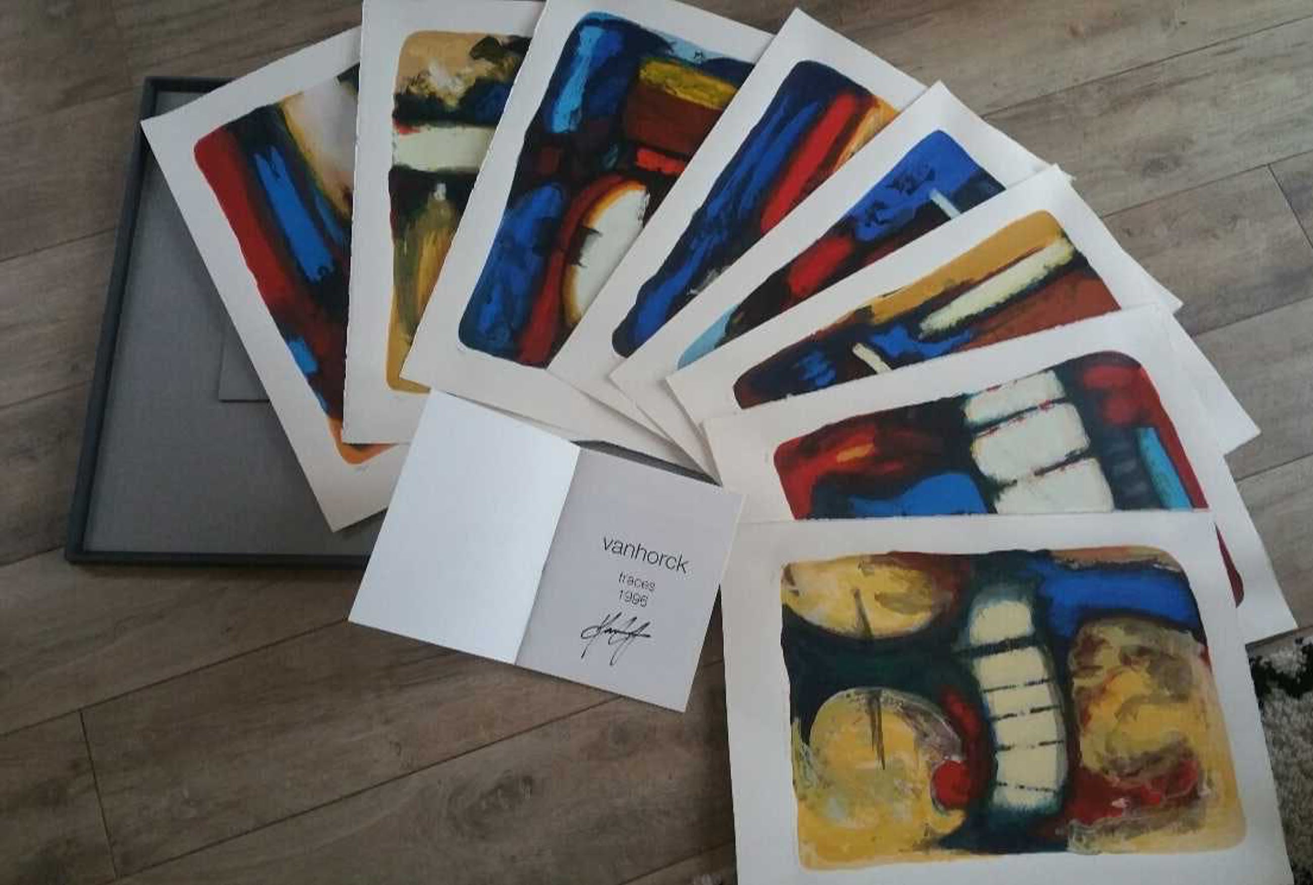 Dit gaat om een collector item box van Hans van Horck Traces 1996 met daar in 8 zeefdrukken met een 28 kleuren druk gang