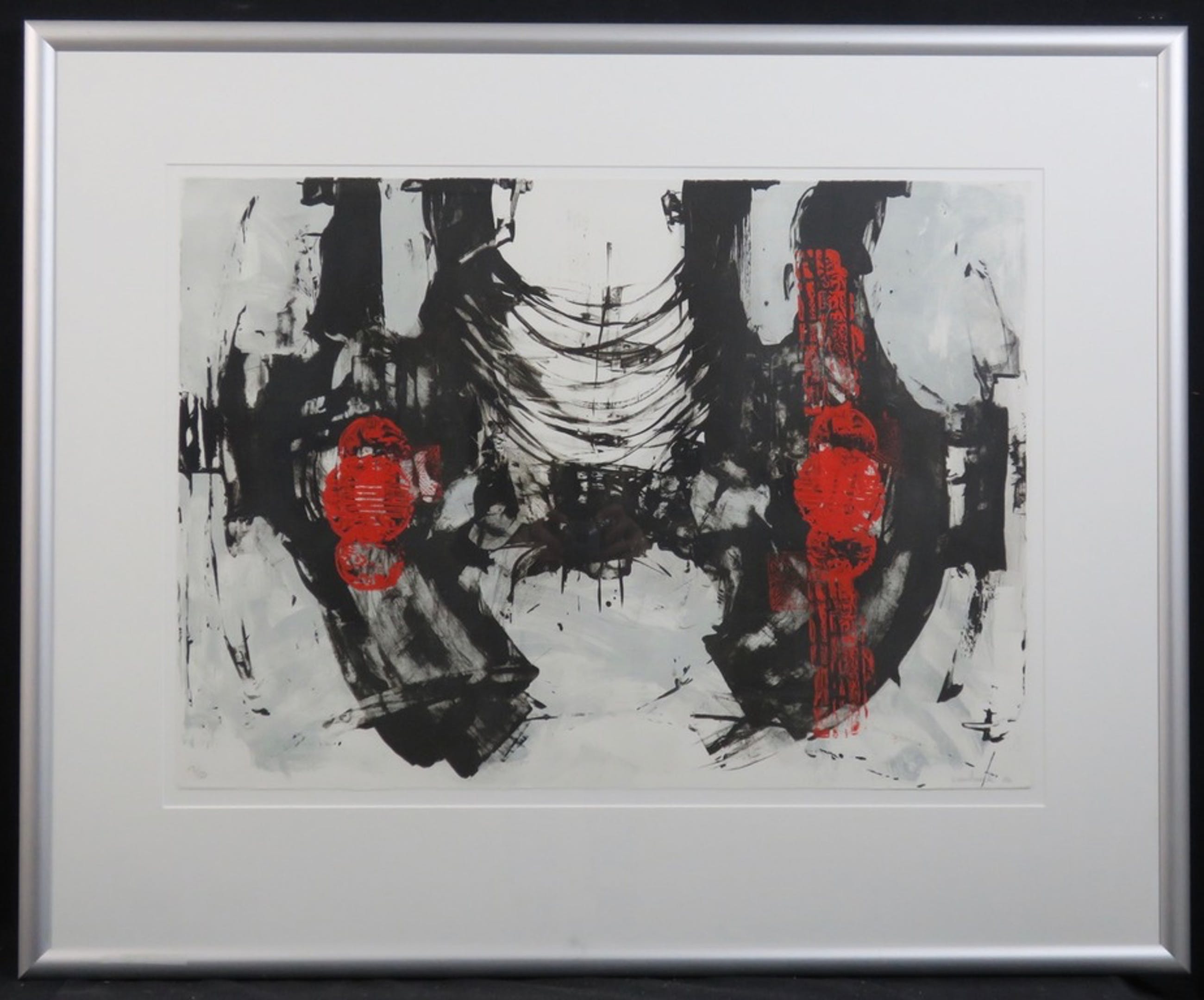 Titel: Zonder titel Jaartal: 2000 Afmetingen lijst: 78 cm x 96 cm Oplage: 13/50 Gesigneerd: Ja, handgeschreven met potlood (rechtsonder) Materiaal: Zeefdruk op papier Ingelijst: Ja, in aluminium lijst Conditie kunstwerk: In zeer goede staat Oorspronkelijke galerieprijs: € 500,00