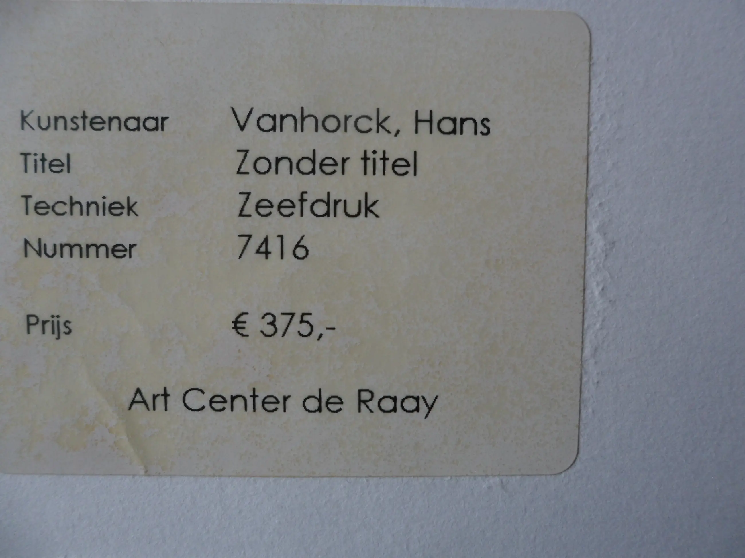 Het werk is af te halen op locatie. Als koper dient u zelf verpakkingsmateriaal mee te nemen. De locatie is: Alkmaar, Nederland