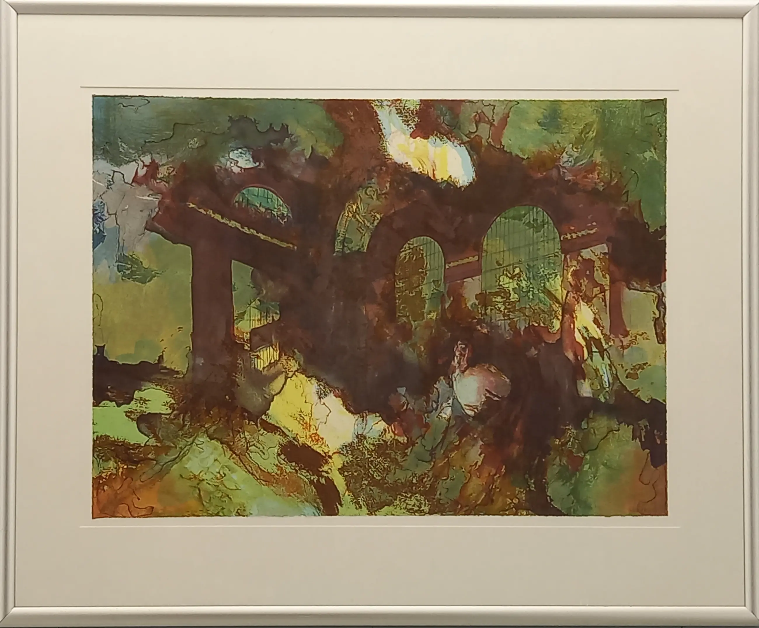 Fraaie zeefdruk in aluminium lijst.