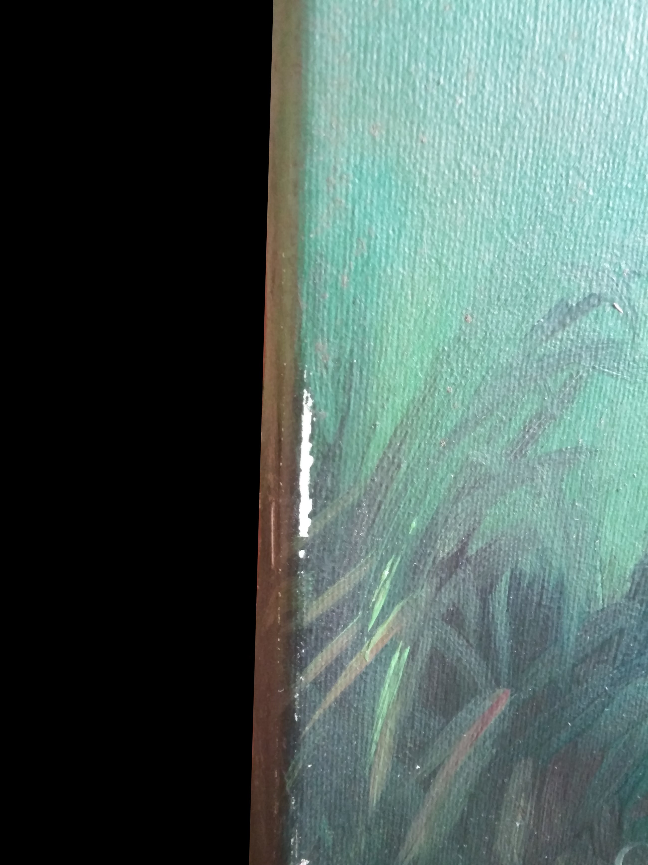 Het werk is vrij netjes. Een enkel gebruiksspoor aan de zijkant waar eens de lijst heeft gezeten. bij een nieuwe lijst zal dit wegvallen.