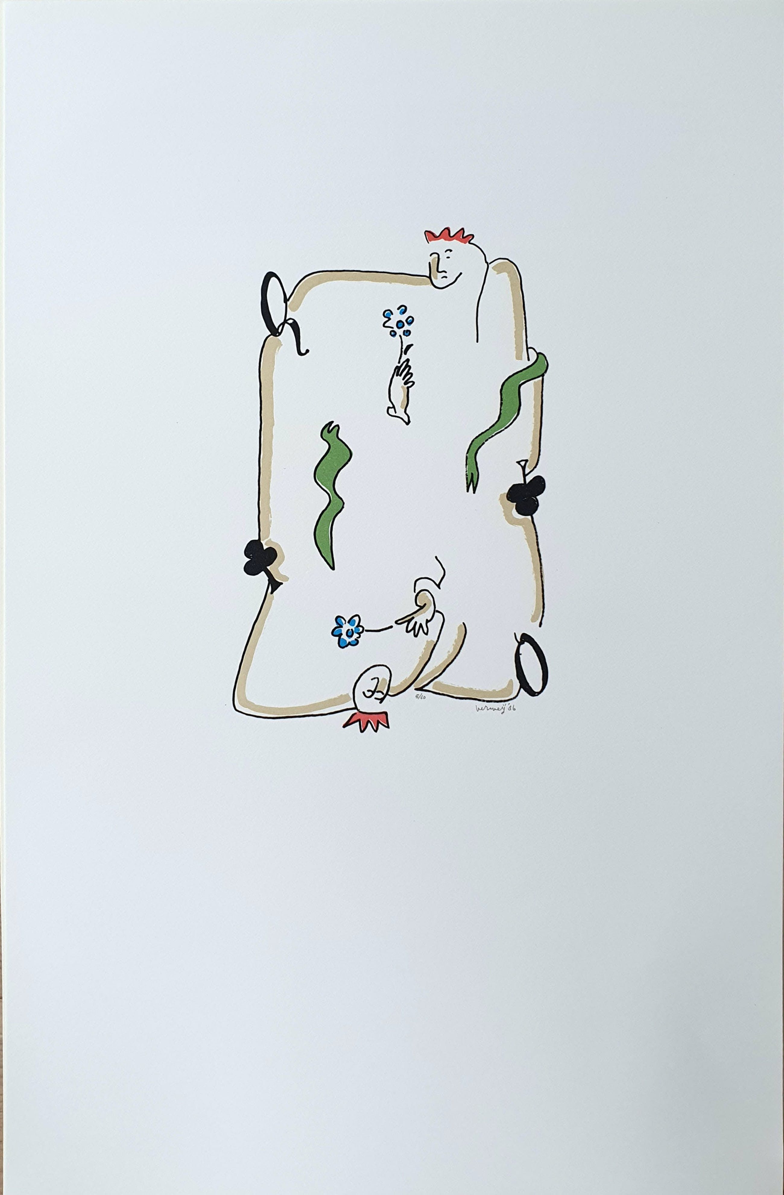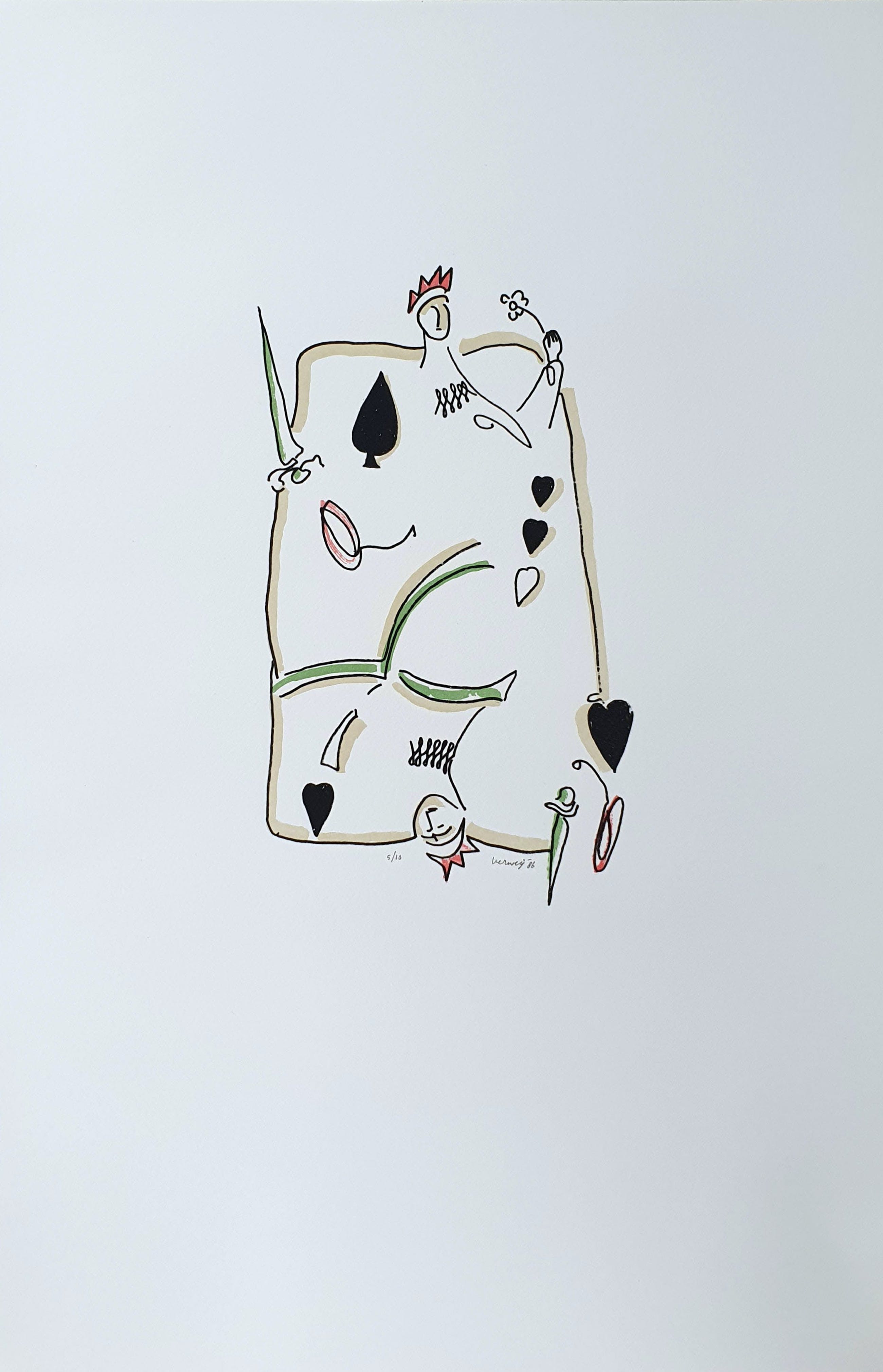 Naast de vier gesigneerde litho's en het Portugees Sonnet van de reguliere portfolio bevat deze editie een handgesigneerde originele tekening in passe partout en een handgeschreven en gesigneerd gedicht van Rien VroegindeWeij.