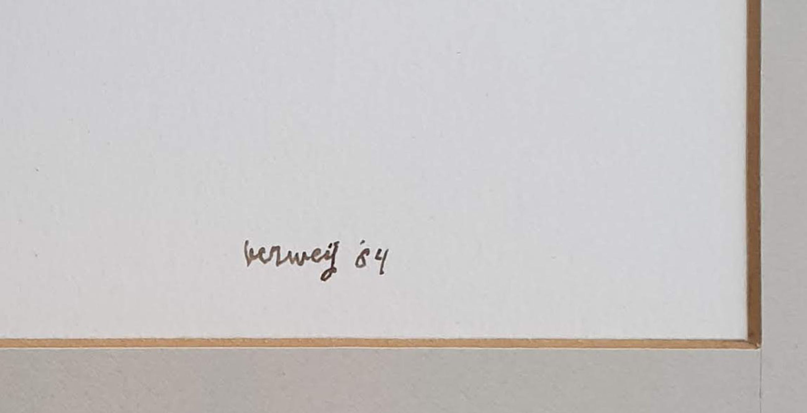 Tekenign van Hans Verweij uit 1984. Het werk is rechtsonder met de hand gesigneerd door de kunstenaar.