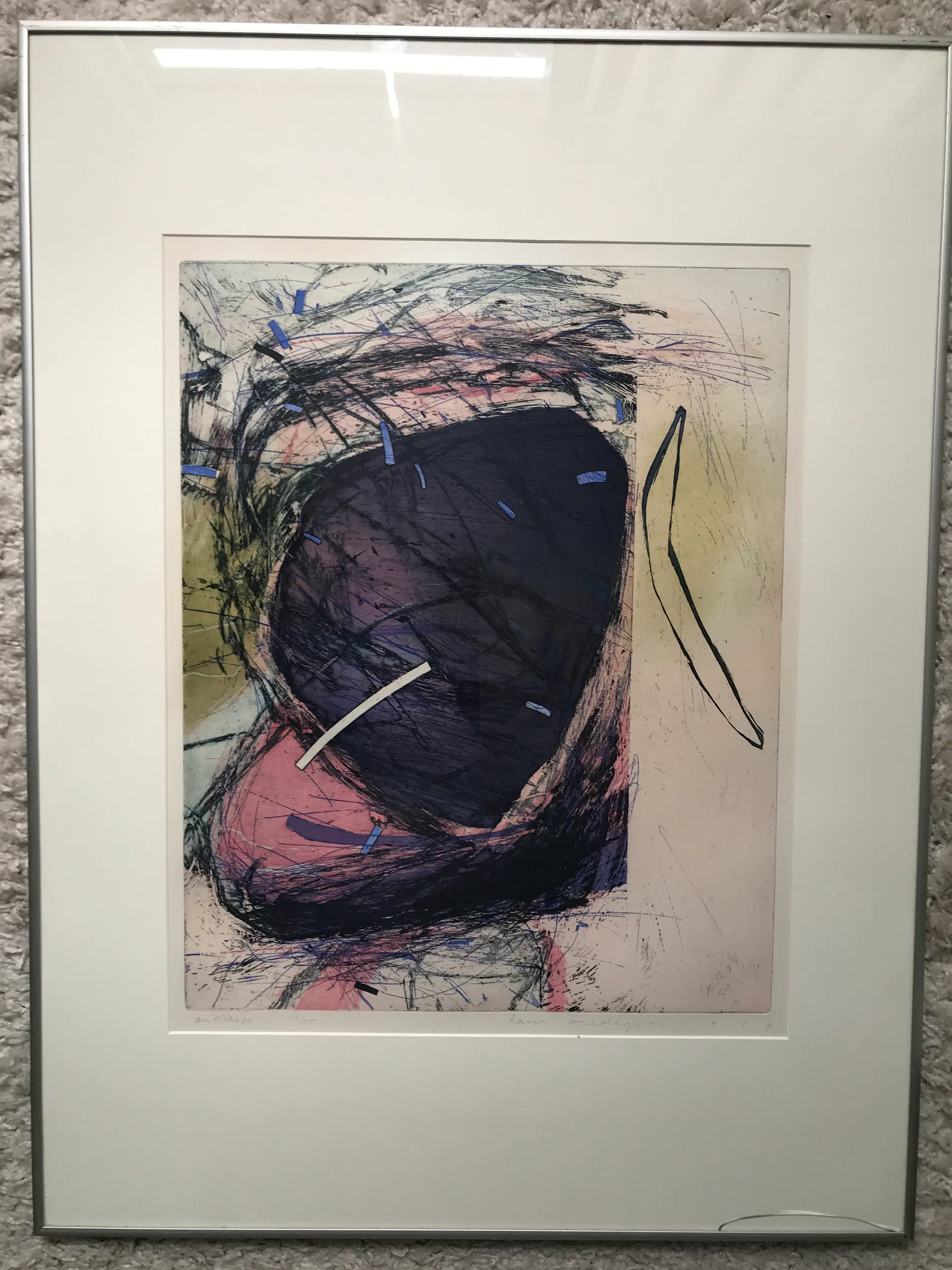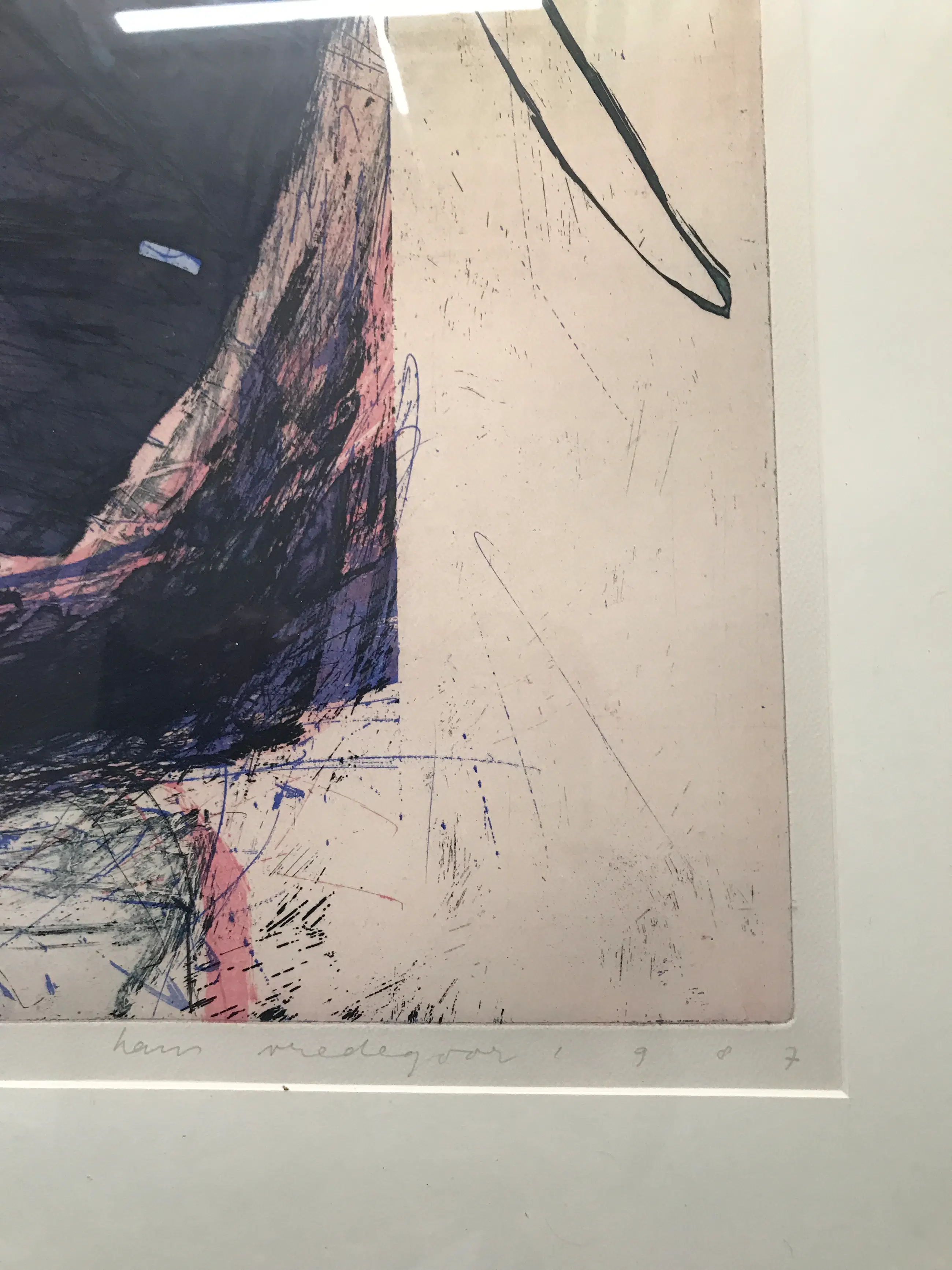 Hans Vredegoor 1953- Mooi kleuren pallet Lijkt ook op een ets achtige plaat Nummer 26 van 35 Mooi ingelijst Klein stukje glas rechts onder kapot