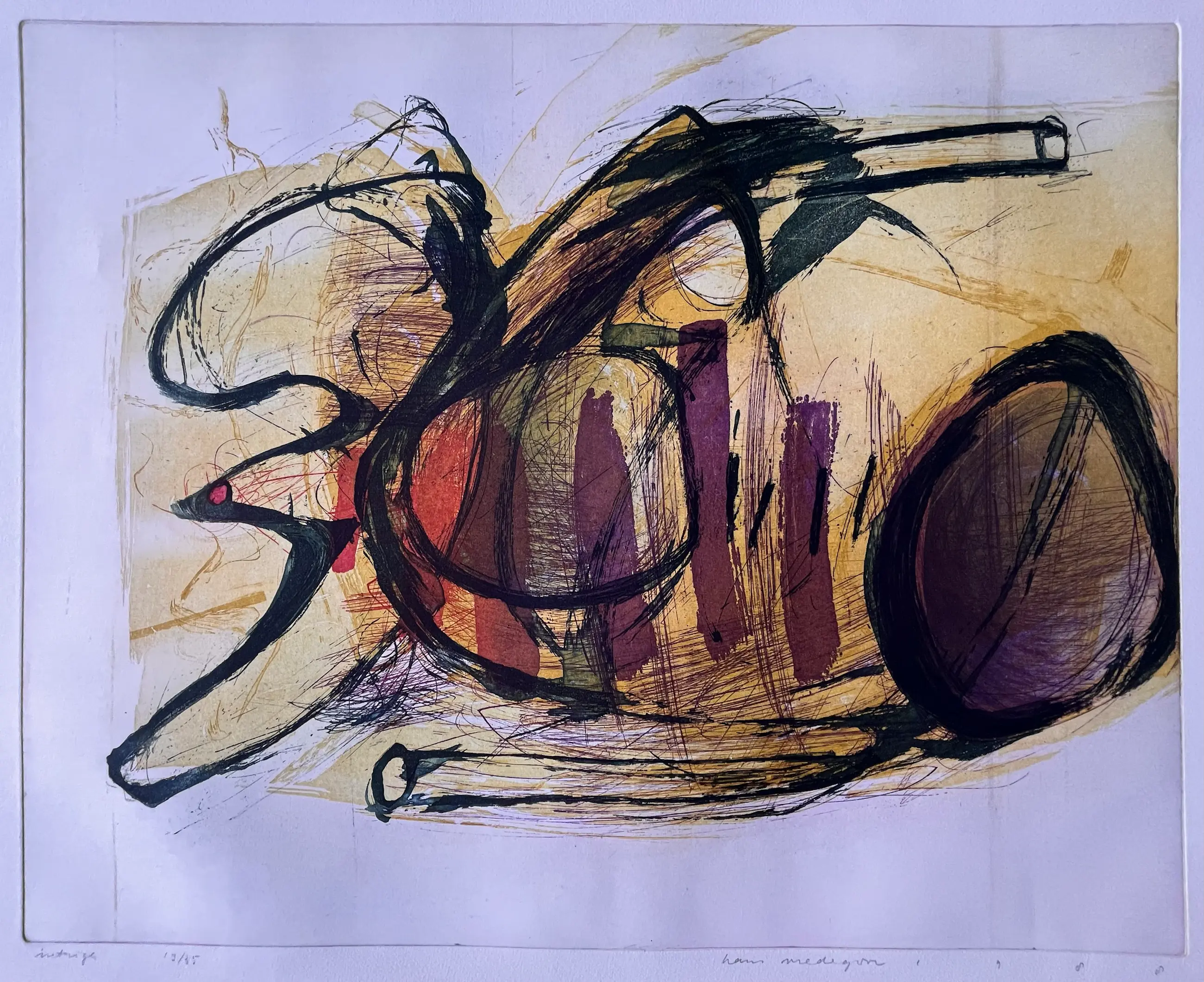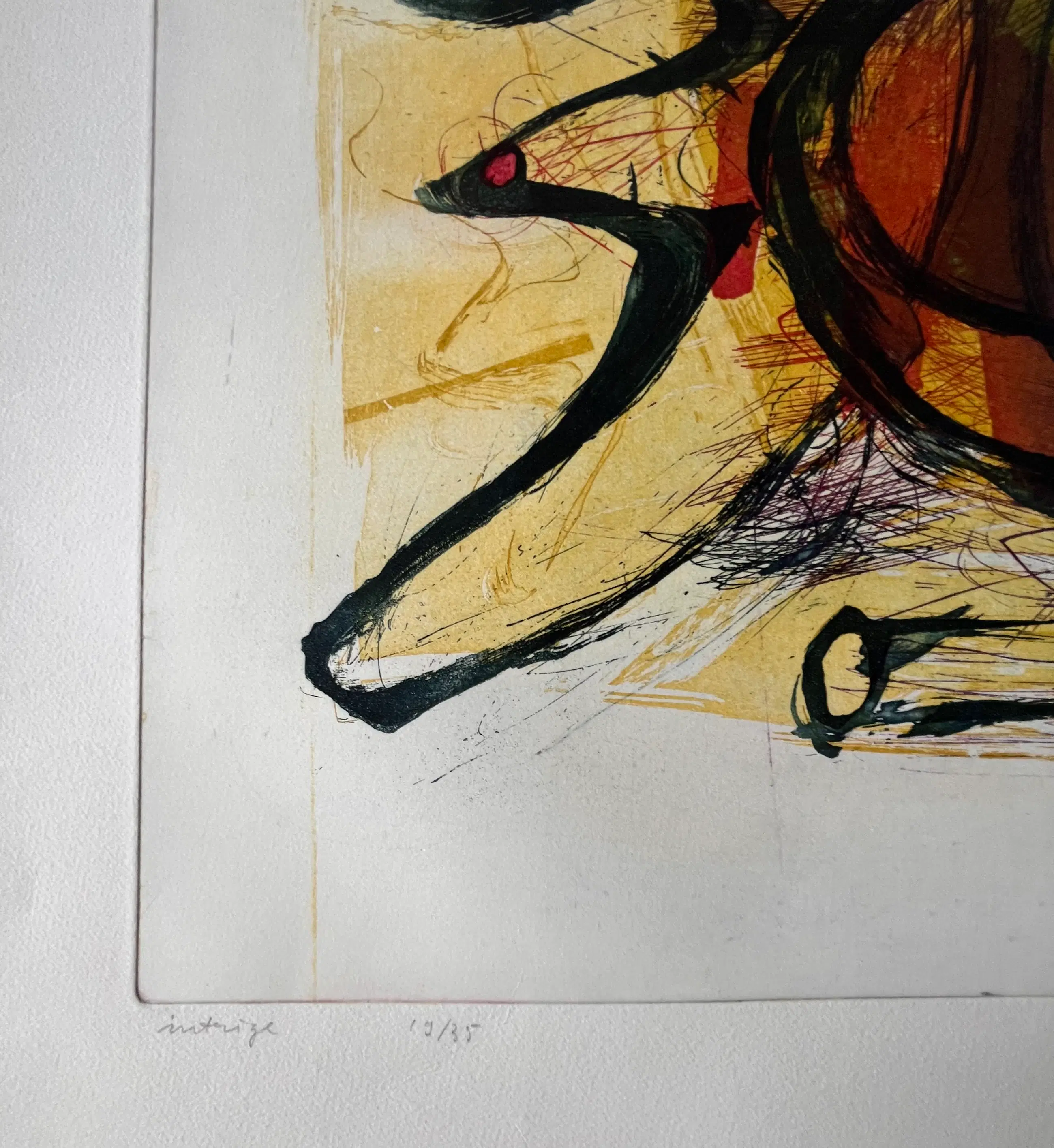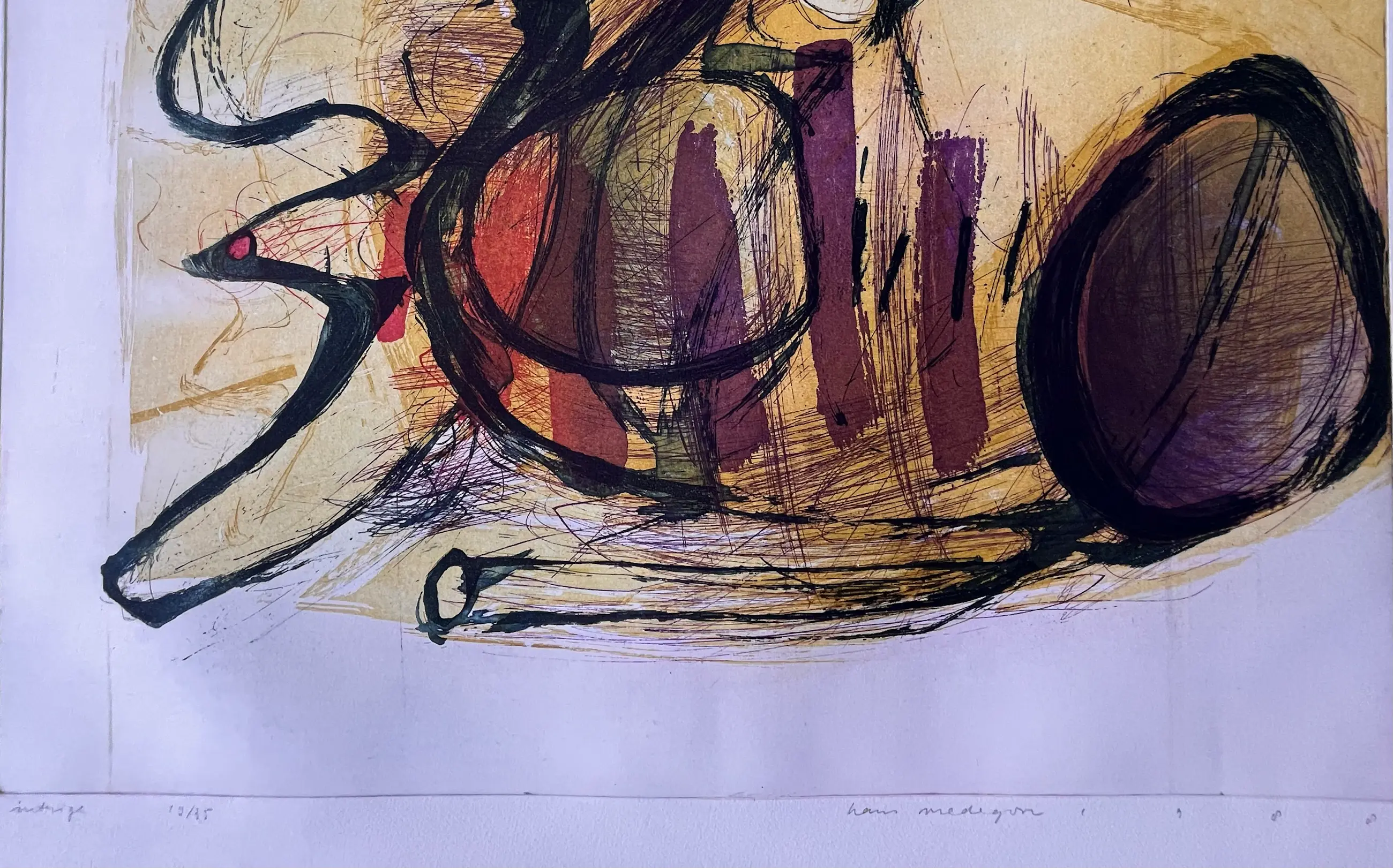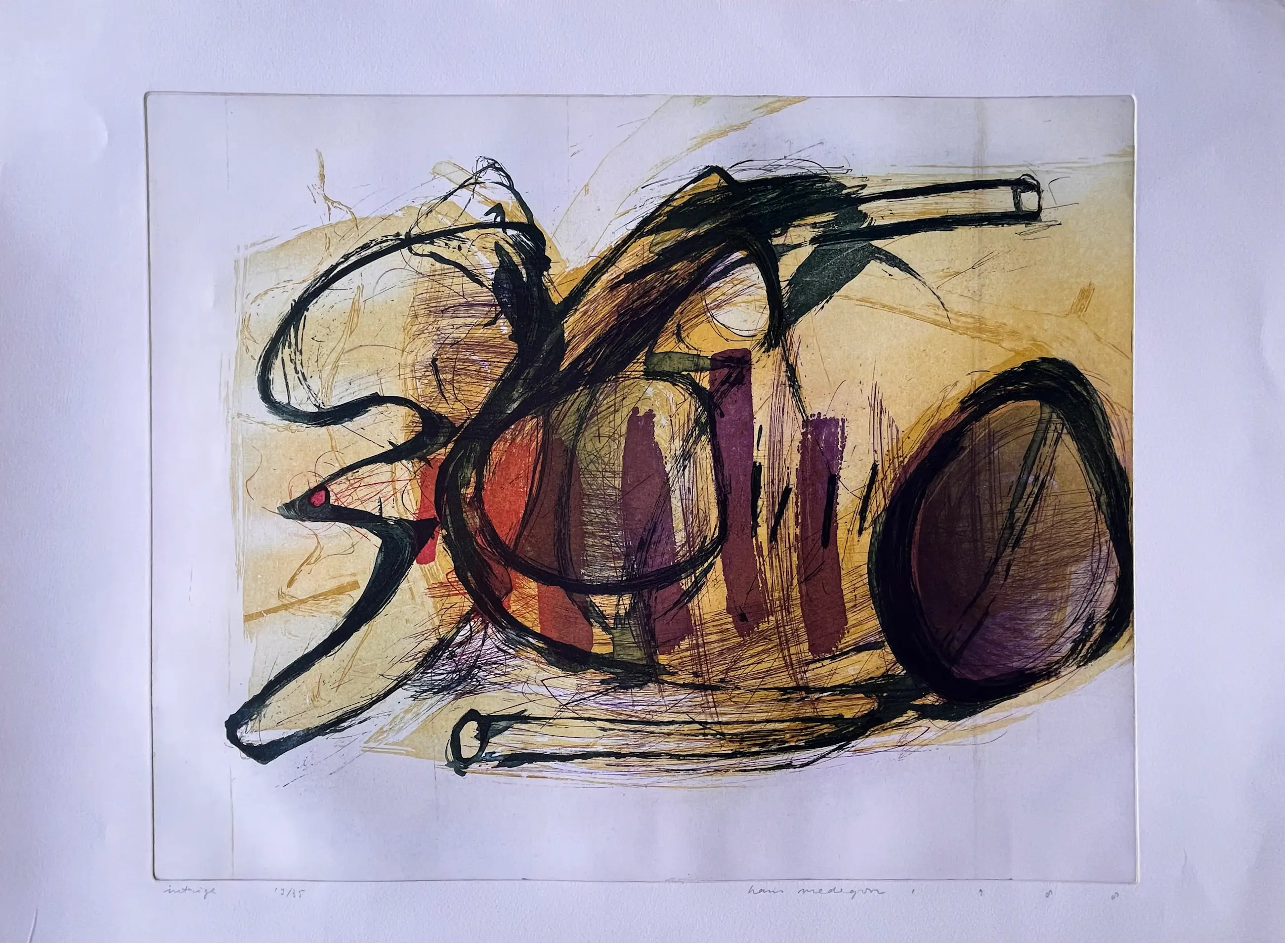 Mooie gesigneerde, gedateerde en genummerde kleurrijke ets van Hans Vredegoor uit 1988. Oplage: 19/35 Titel: "Intrige" In zeer goede conditie, Nooit eerder ingelijst. Steeds bewaard in een kunstmap. Eerste 4 foto's zijn wat overbelicht (paarse tint) Laatste 2 foto's geven weer hoe het werk er echt uitziet.