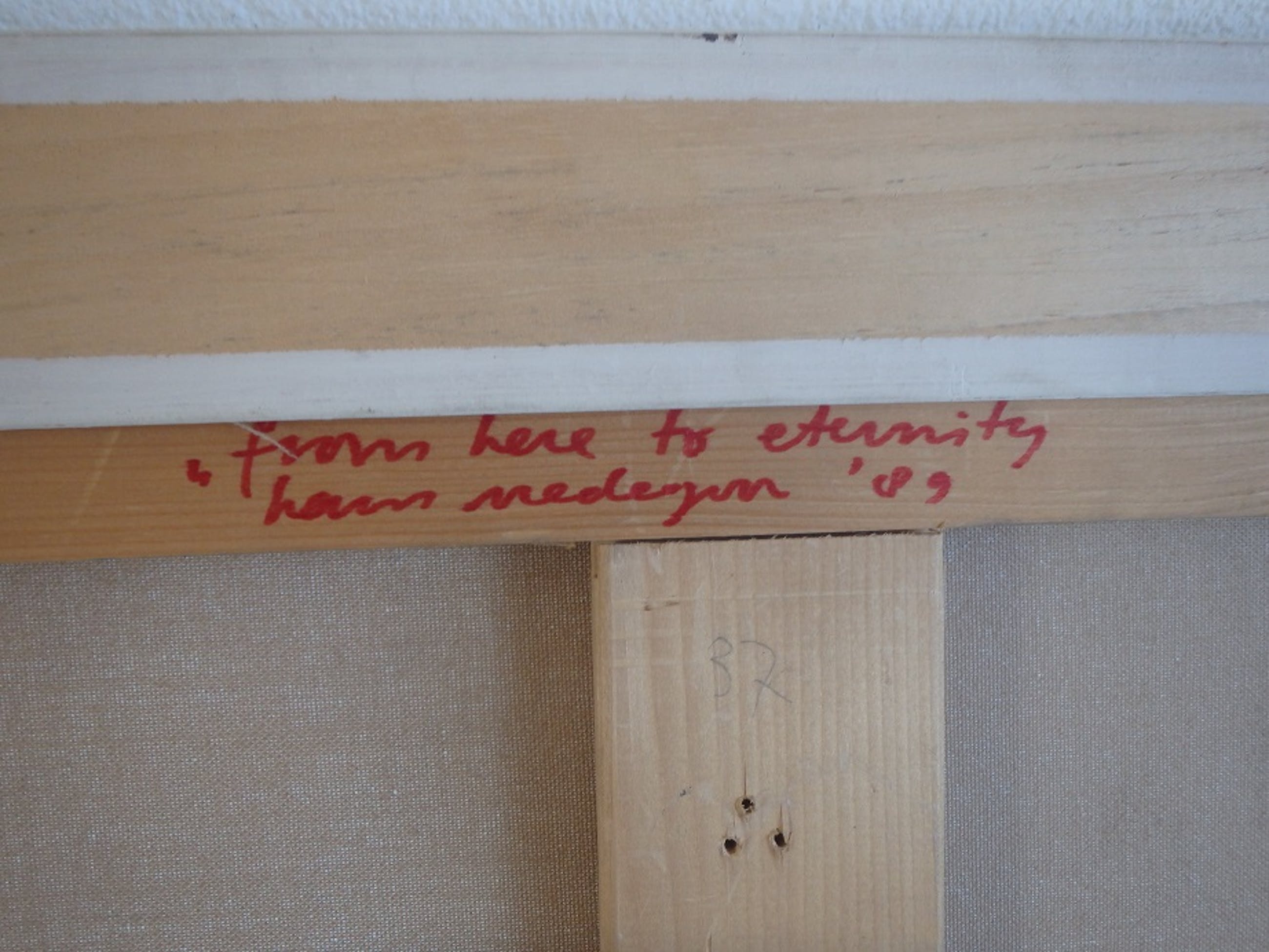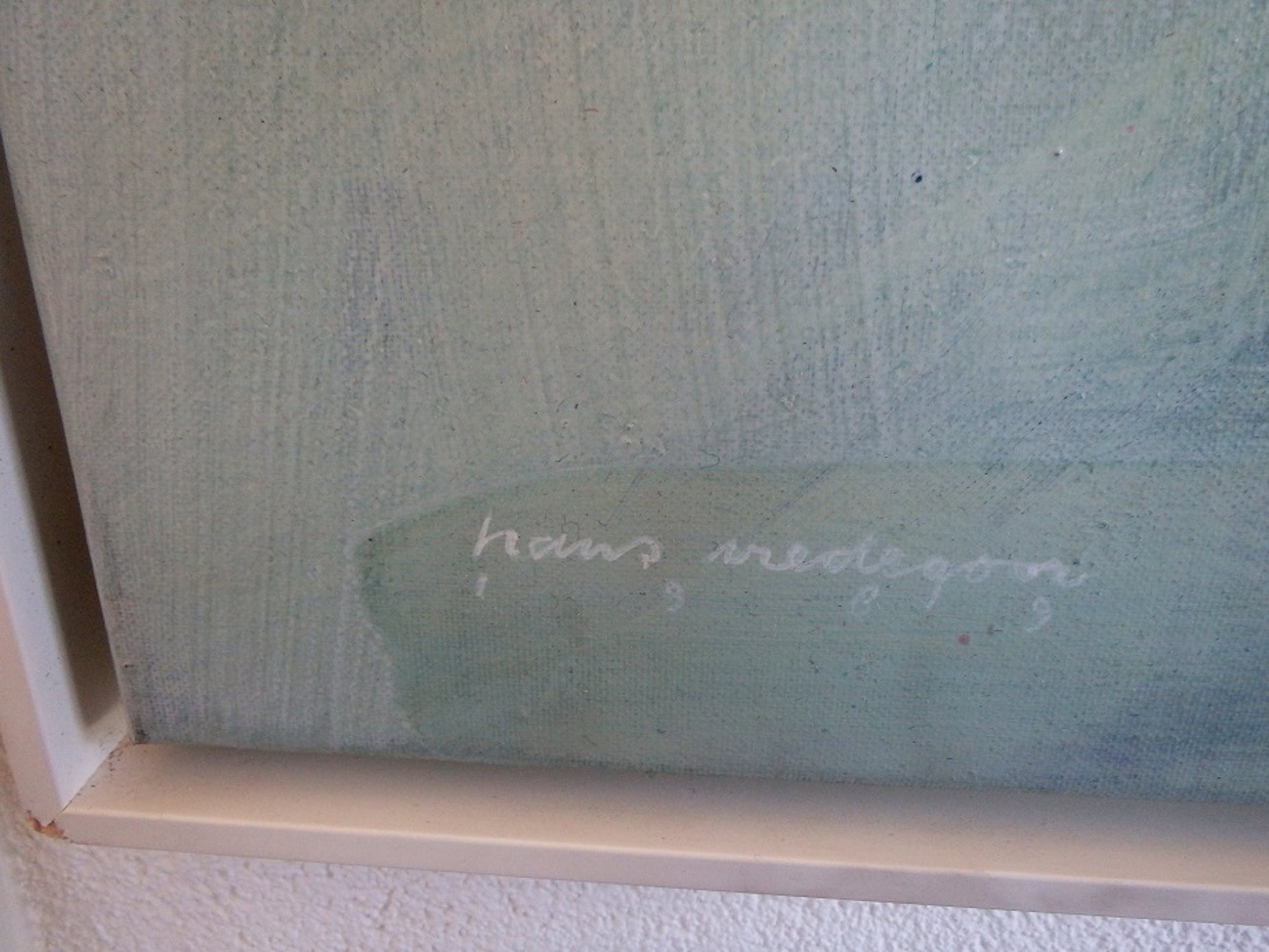 Olieverf op doek 90x120, linksonder gesigneerd Hans Vredegoor en gedateerd 1989, in witte baklijst.