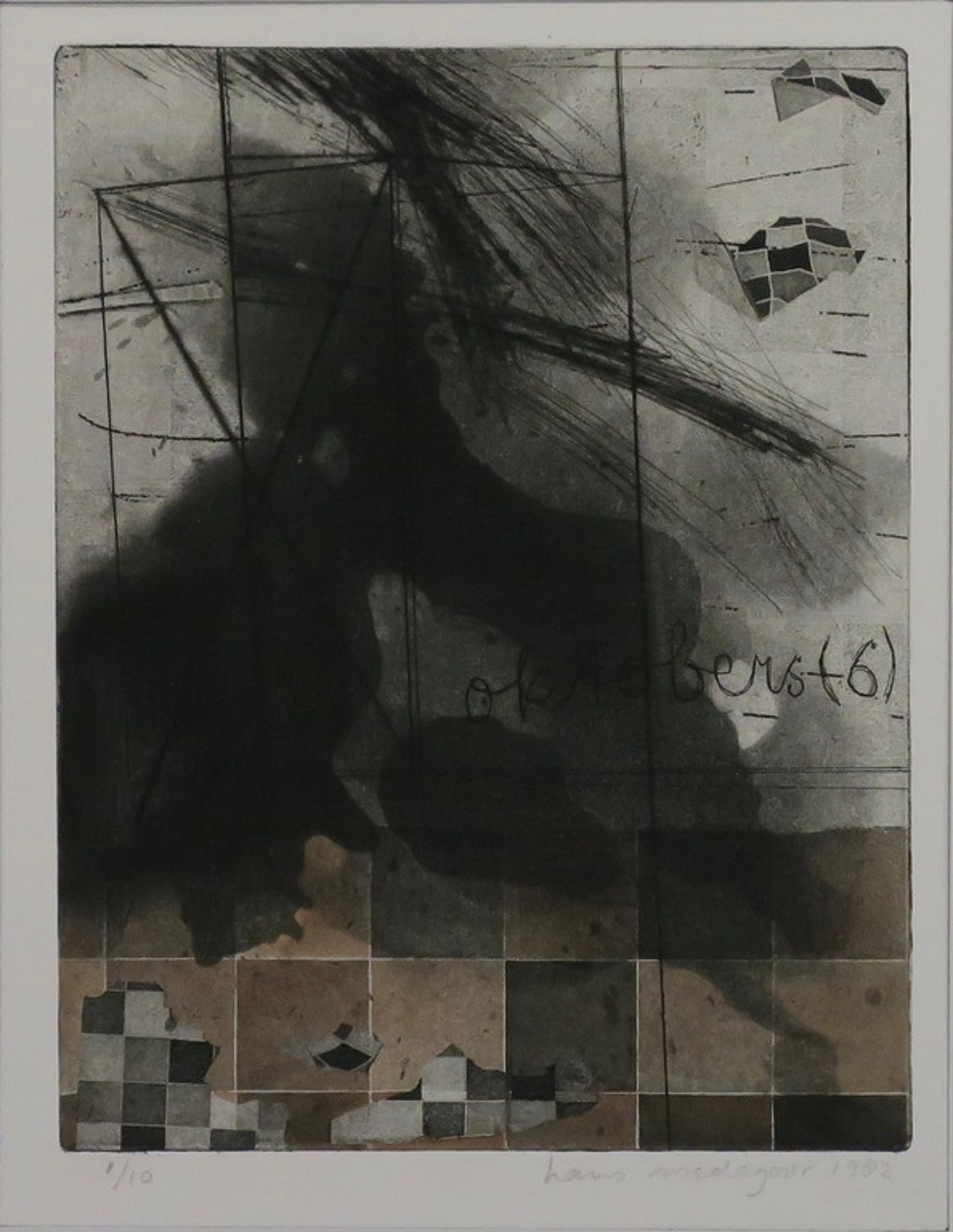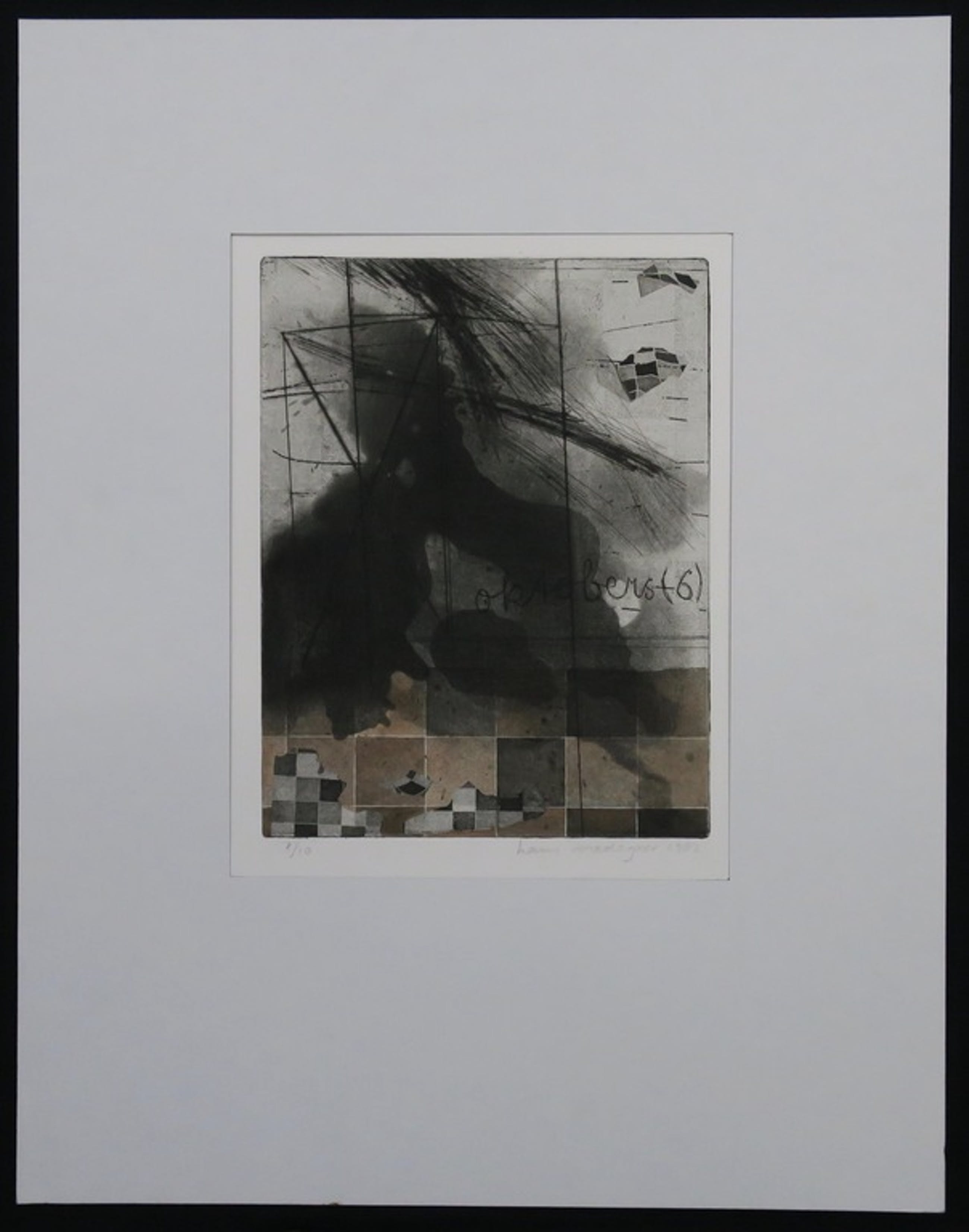 Materiaal: Ets op papier, bevestigd achter passe-partout