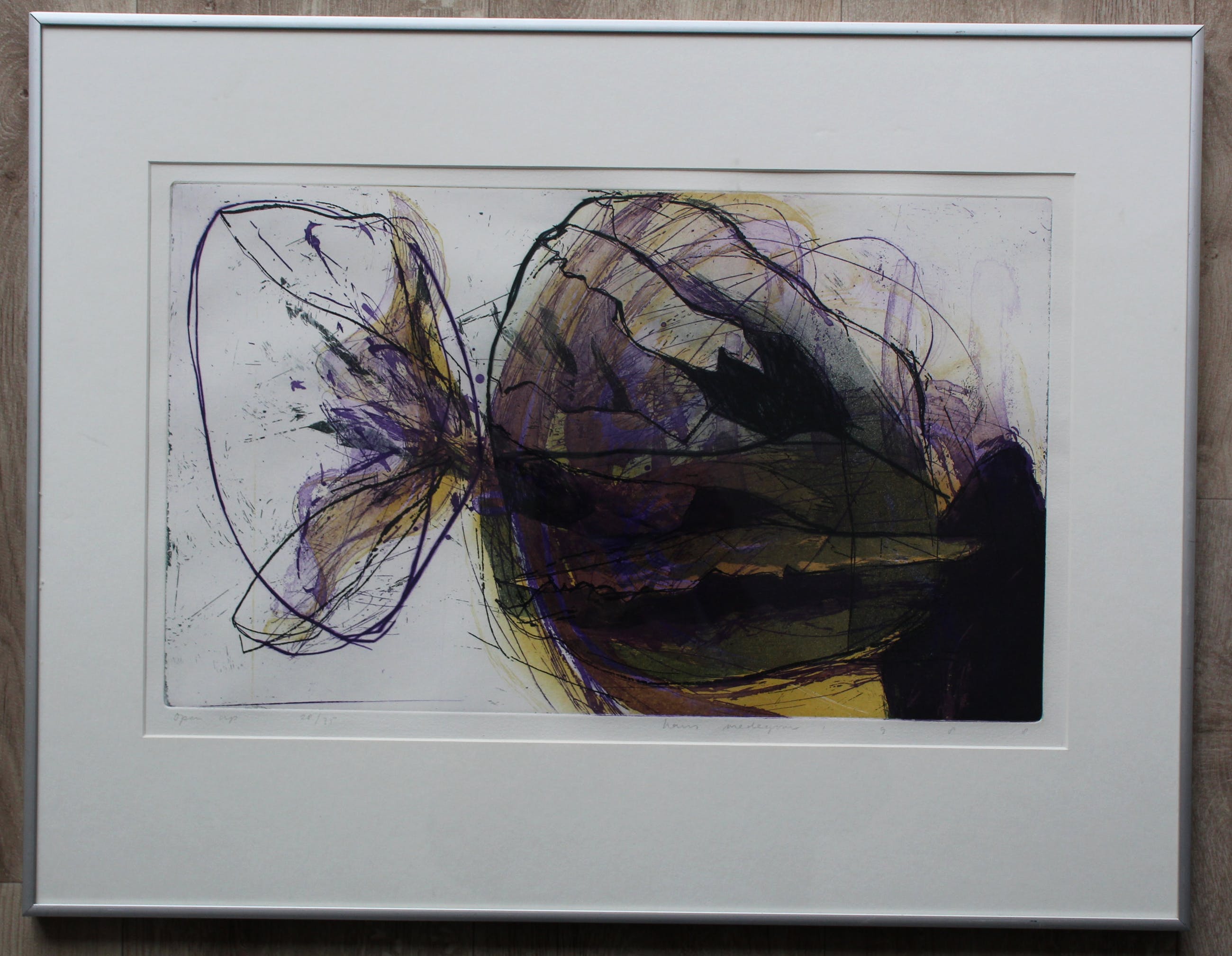 Ingelijste ets van Hans Vredegoor. Titel: Open Up. De authenticiteit van dit werk wordt volledig gegarandeerd. Een certificaat van echtheid kan, op aanvraag, worden gemaild.