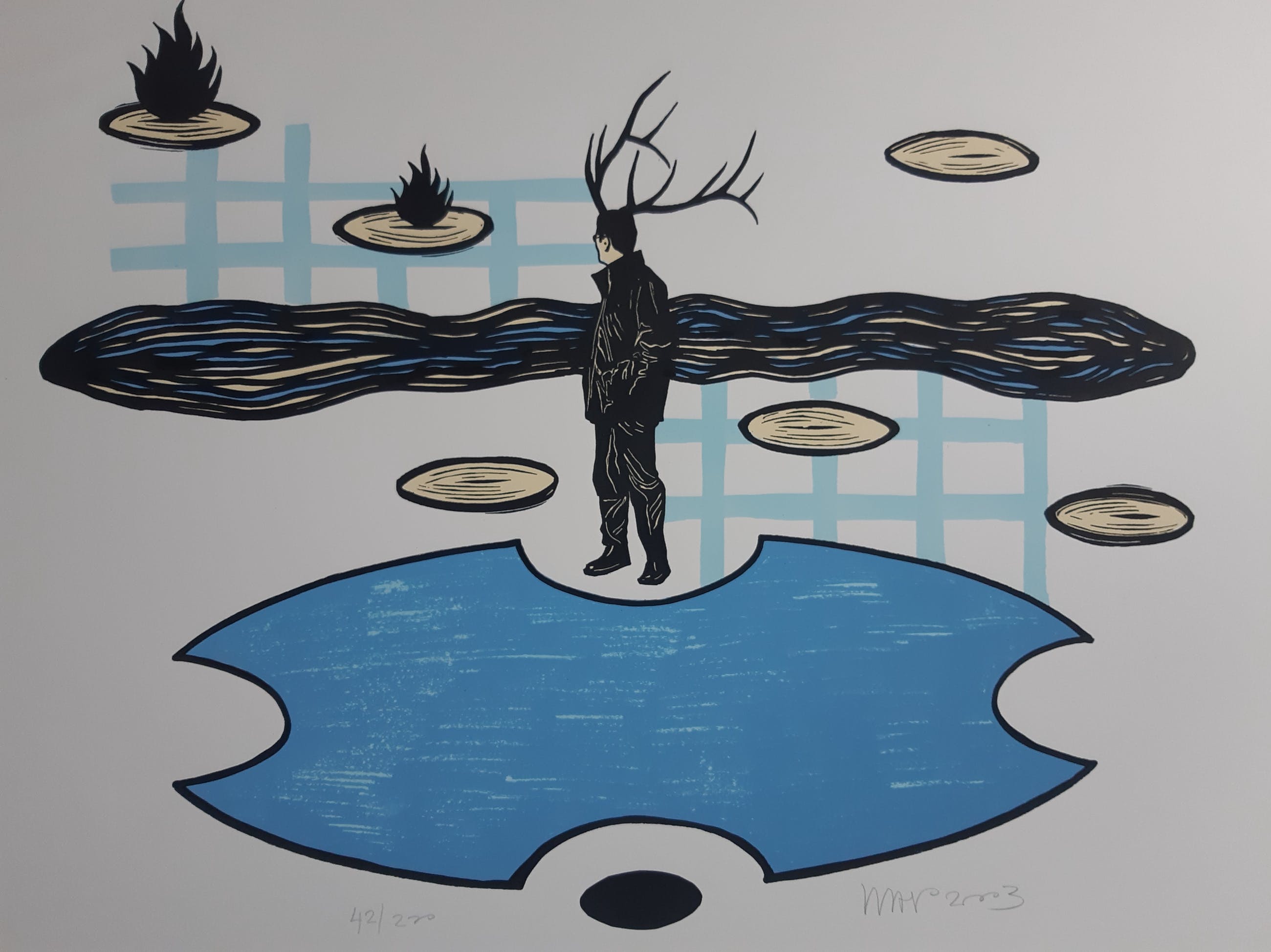 Zeefdruk van Hans Wap. Met potlood gesigneerd, gedateerd en genummerd. De conditie is goed, het blad vertoont een lichte golving linksboven.