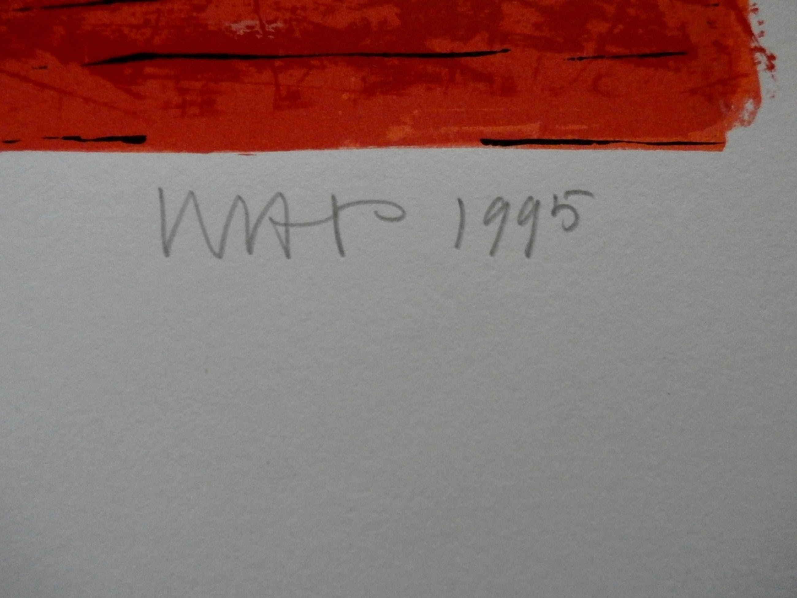 Kleurenlitho van Hans Wap uit 1995. Titel: From To. Nummer: 69/100. Afmetingen blad: H76 x b56 cm. Afmetingen voorstelling: H59 x b43 cm. De authenciteit van het, aangeboden, werk wordt voor 100% gegarandeerd