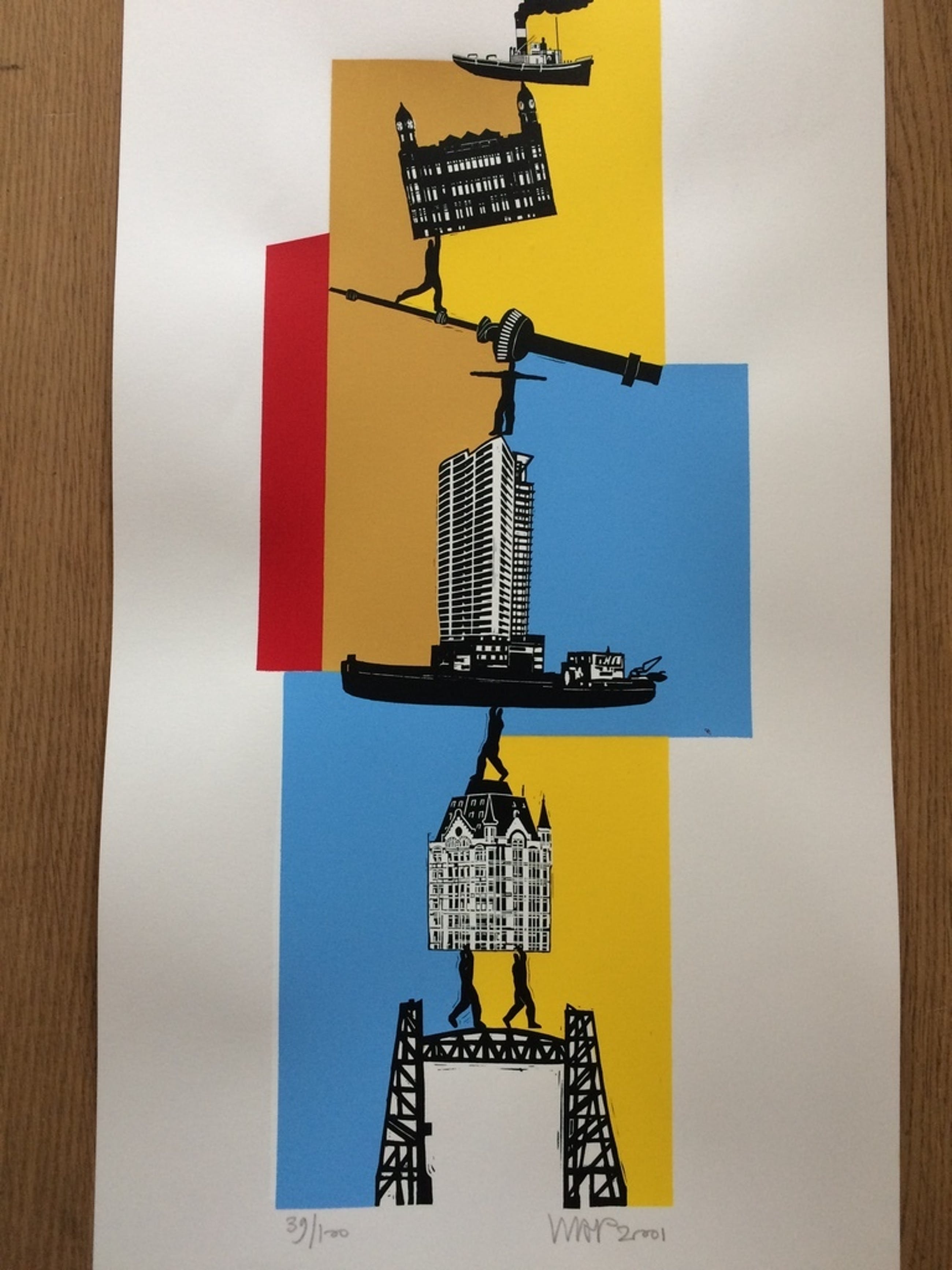 Rotterdamser kan bijna niet, Hans Wap maakte een speciale zeefdruk om zijn stad te eren. In een oplage van 100 is dit nummer 39.