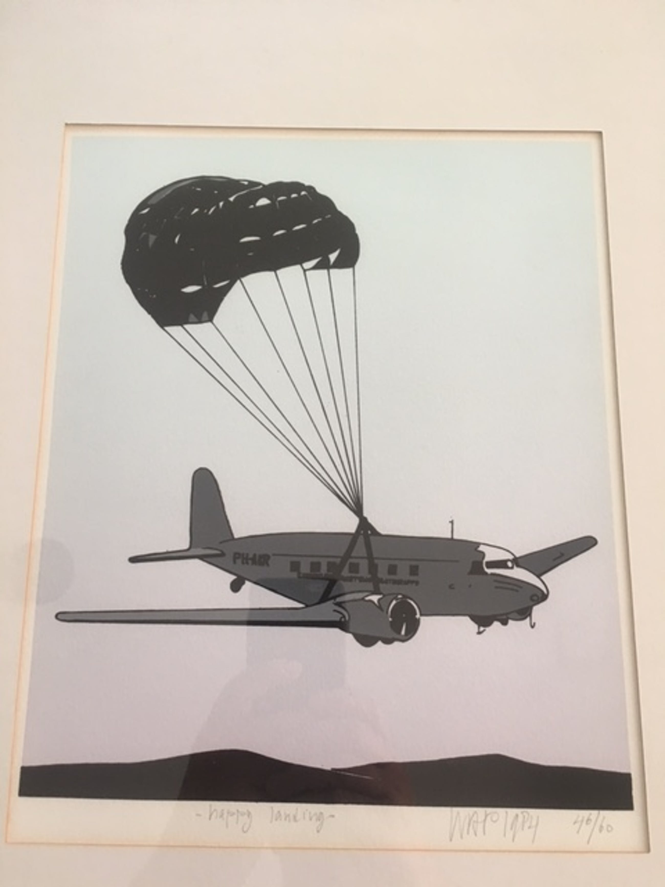 Hans Wap, gesigneerd 1984, nummer 46 van 60 met titel "Happy Landing"
