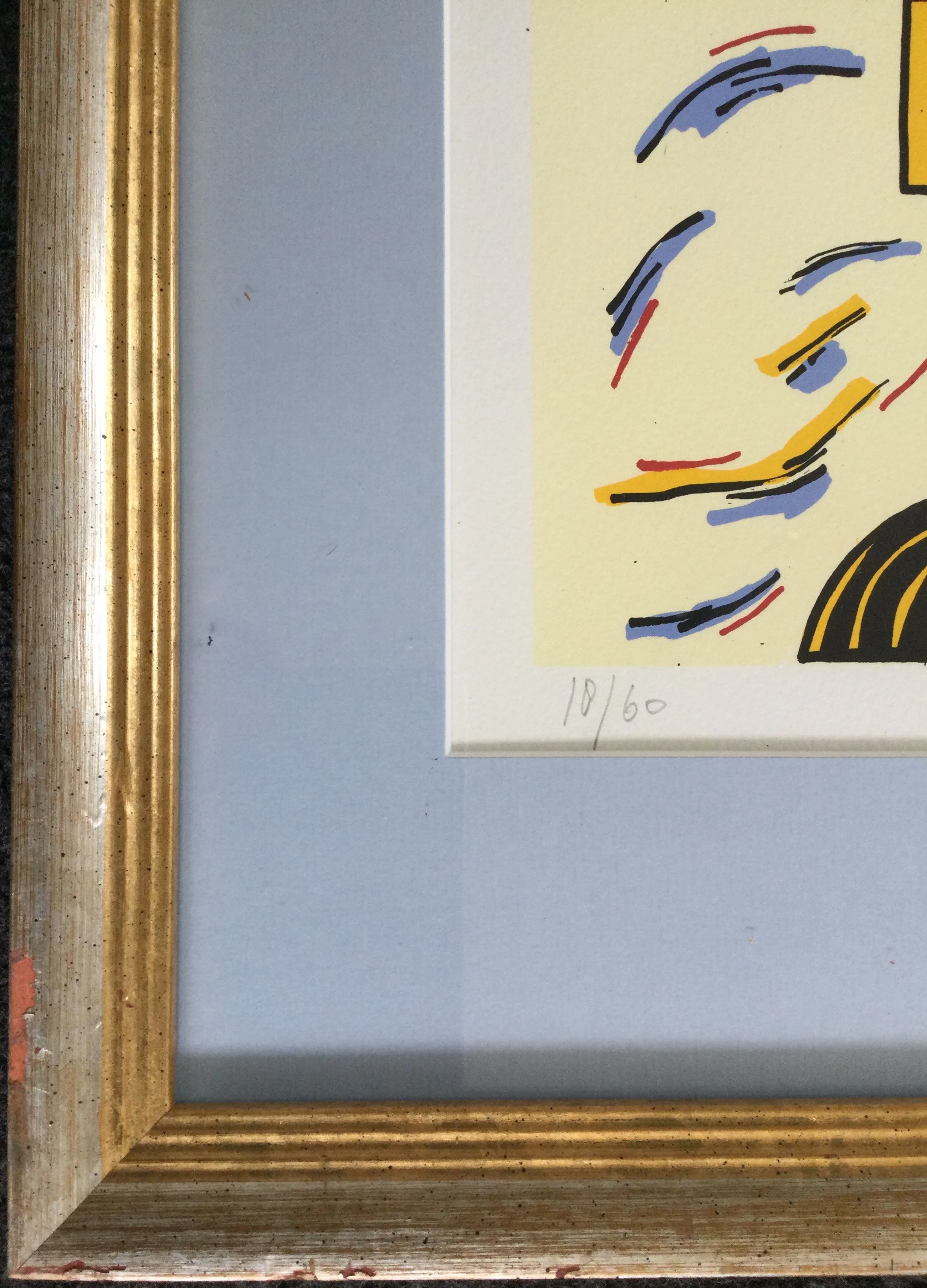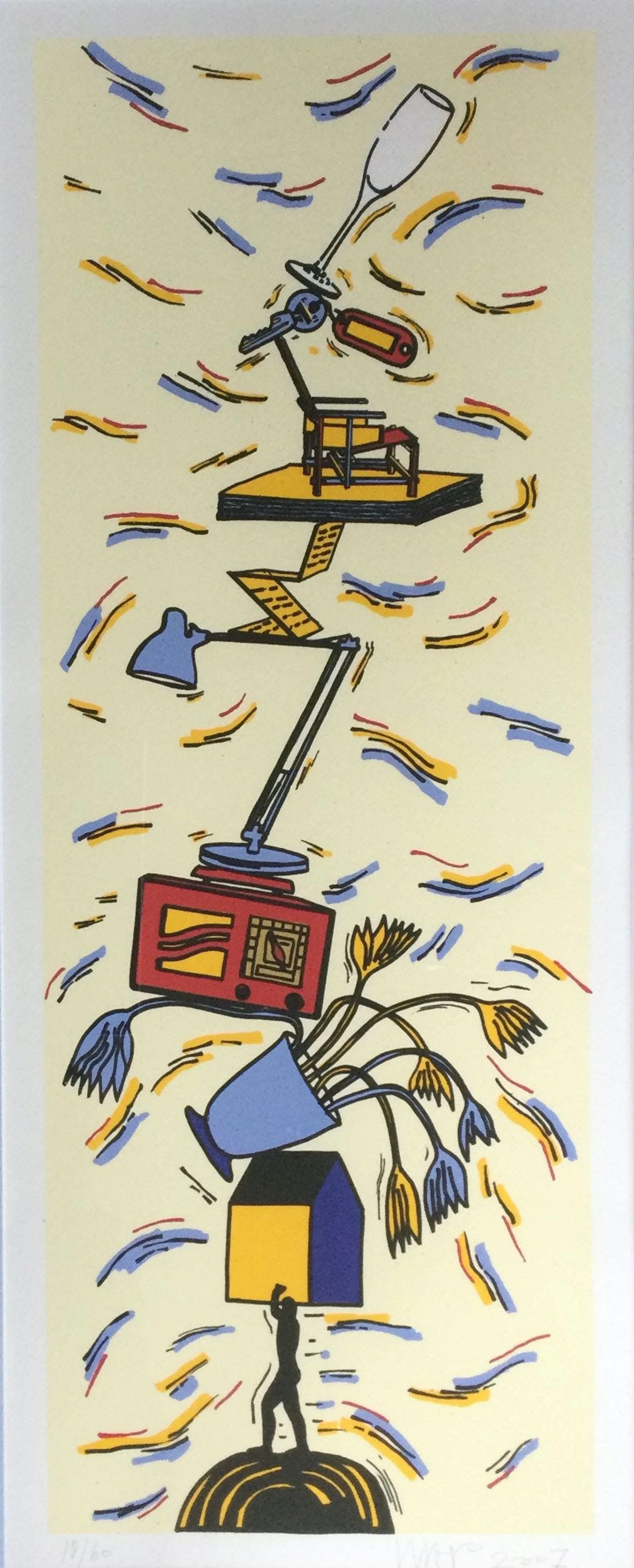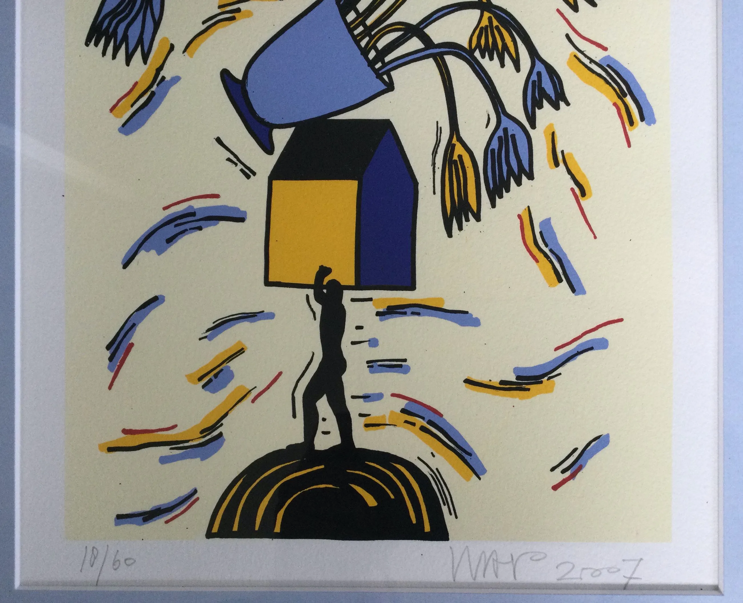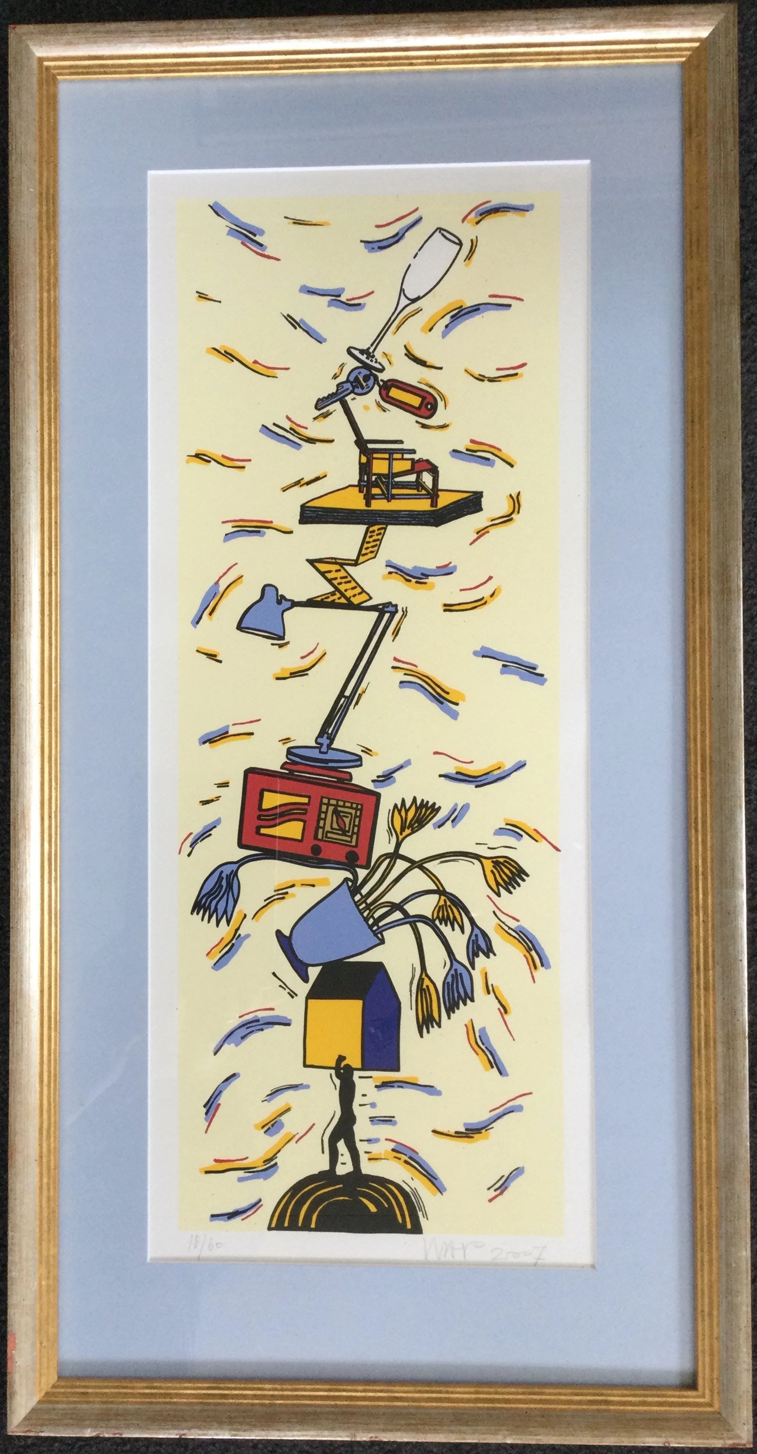 Een ingelijste zeefdruk uit 2007 van de Rotterdamse kunstenaar Hans Wap (1943).