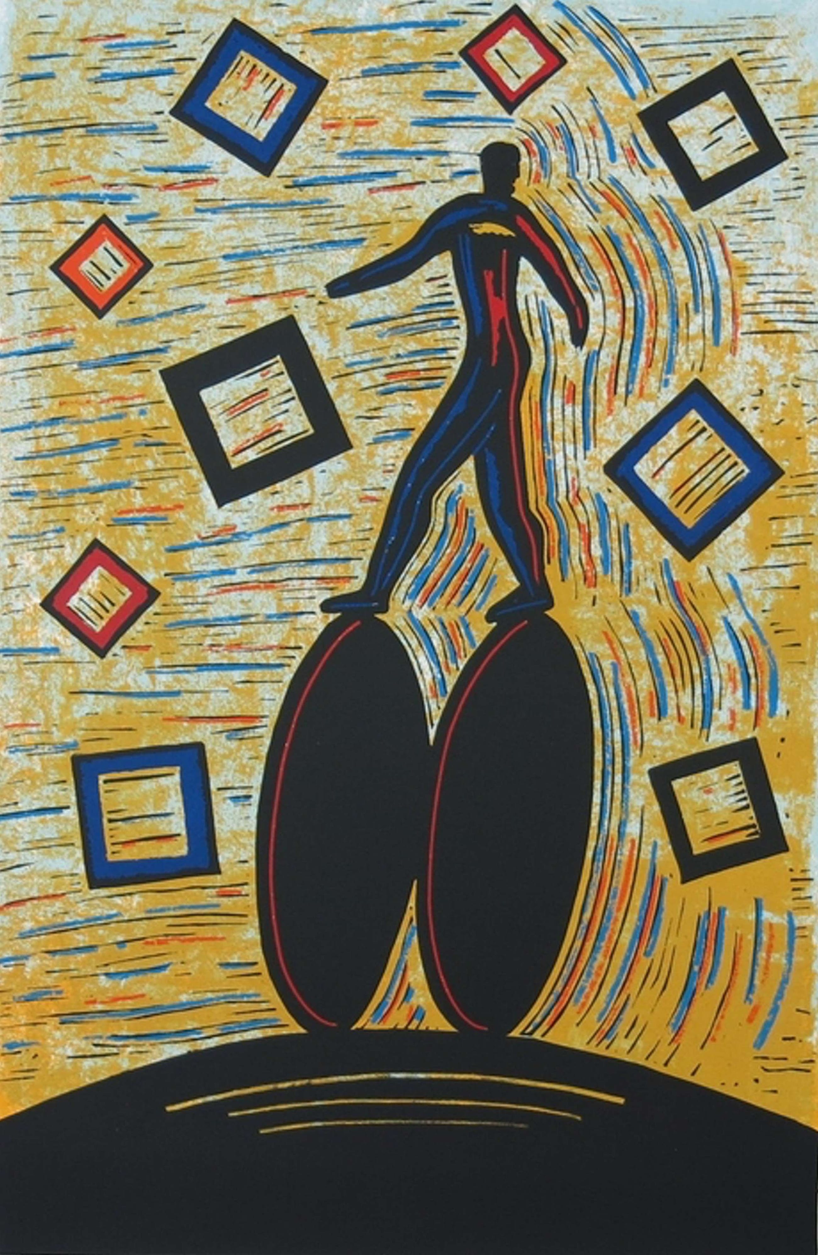 Zeefdruk van Hans Wap. Titel: Wheels. Jaar: 1995. Hij maakte deze ter gelegenheid van het honderdjarig jubileum van Van Gend & Loos. Afgebeeld in "Kunst onderweg", de jubileumcatalogus. Oplage: 93/100. Afmetingen blad: H76 x b55,5 cm. Afmetingen afbeelding: H59 x b43 cm. Het werk is rechts onderin, met potlood, gesigneerd en gedateerd door de kunstenaar. De authenticiteit van het aangeboden werk wordt volledig gegarandeerd. Een certificaat van echtheid kan, op aanvraag, worden gemaild.