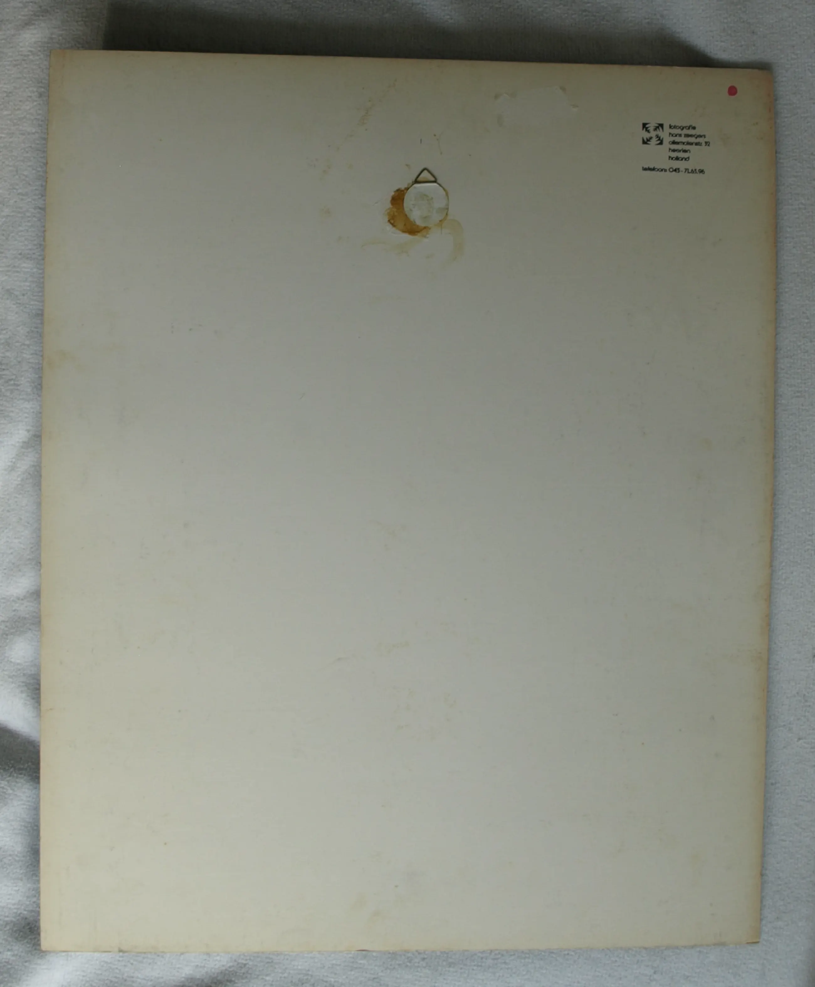 In redelijk goede staat. De foto heeft lichte krasjes en slijtplekjes. Het karton heeft slijtplekjes en heeft op de achterkant vlekjes. Zie ook de foto’s.