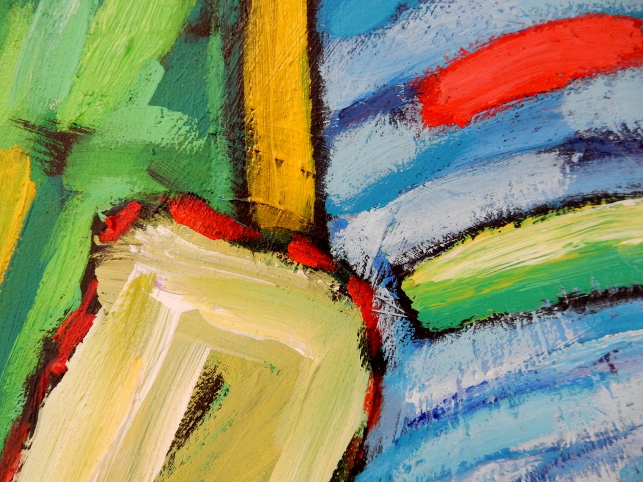 Zeer groot en kleurrijk olieverfschilderij van Hans Zweverink (Zutphen, 1950).