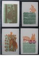Vier schöne Original Farbholzschnitte von 1969 mit verschiedenen Darstellungen zum Sujet Schwäbische Alb, links oben "Faun" (Werkverzeichnis Fürst 69/89a), rechts oben "Schafritt" (Fürst 69/57), links unten "Schafhirtin vor Blumenwiese" (Fürst 69/65), rechts unten "Ochsenwagen" (Fürst 69/55), Blattformat je ca 38x25 cm, Darstellung je ca. 28x20cm. Guter Zustand. Die drei letzteren Holzschnitte wurden laut Werkverzeichnis neben dem Holzstock auch unter Verwendung von Stoffdruckmodeln gedruckt, das dürften die jeweils grünen Hintergrundpartien sein. Versicherter Versand 8 Euro. Originalität der Holzschnitte = Drucke vom Stock garantiere ich. Im Übrigen gilt: Privatverkauf, d.h. wegen der neuen Gesetzesbestimmungen erfolgt die Auktion unter Ausschluss weiterer als der genannten Gewährleistung, Garantie und Rücknahme. Laut dem neuen EU-Recht muss dieser Zusatz unter jeder Online-Auktion stehen, ansonsten haftet der Verkäufer auch als Privatperson ein ganzes Jahr für die verkaufte Ware.