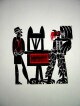 H.A.P. Grieshaber - DRUCKER, 2-farbiger Holzschnitt, rot/schw, Bild:28x29cm, Blatt: 70x50cm,gedr.auf Engres, unsign. - Verkocht