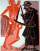 Hochwertiger rasterloser Druck nach dem Farbholzschnitt “Totentanz von Basel .- Der Blutvogt“