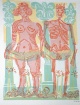 geworden. Die Blätter sind rasterlos gedruckt. Jede Farbe lief einzeln durch die Maschine und so entstand die schichtweise Oberlagerung der Farben, während etwa beim üblichen Offsetdruck Farbsätze hergestellt werden, welche in einer normalen Farbskala durch die Maschine laufen. Dieser Druckvorgang ist deshalb schnell erledigt, während unser Druck sich über Wochen hinzog, weil die einzelnen Farben nicht "naß' gedruckt worden konnten,