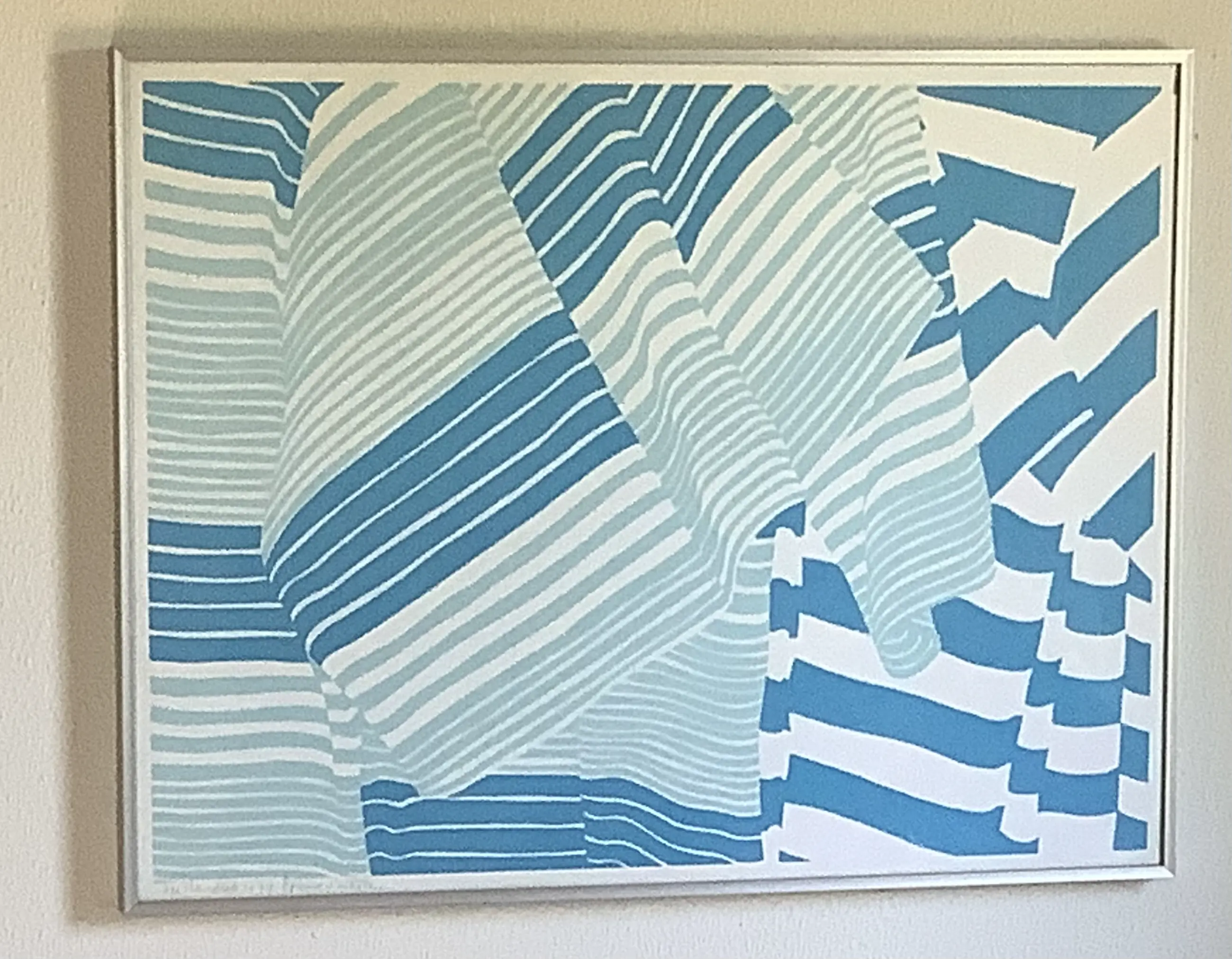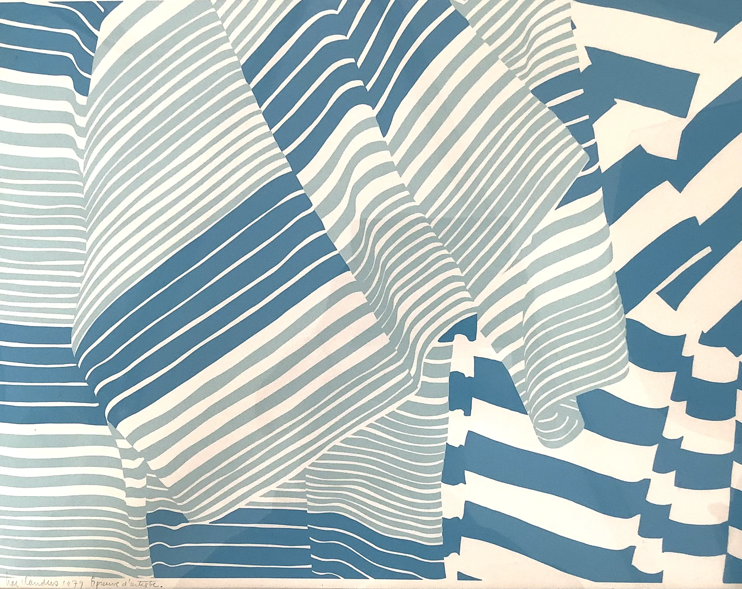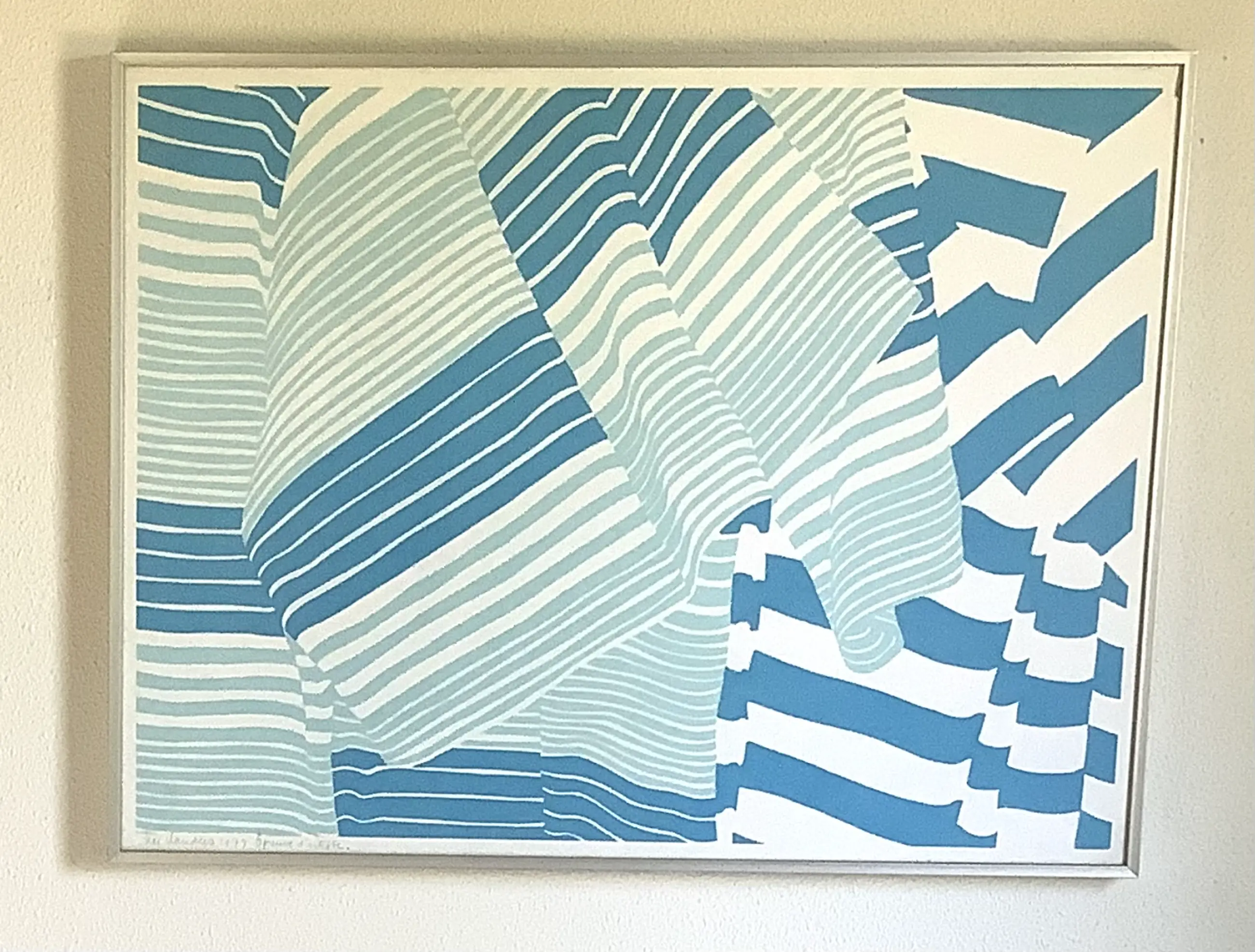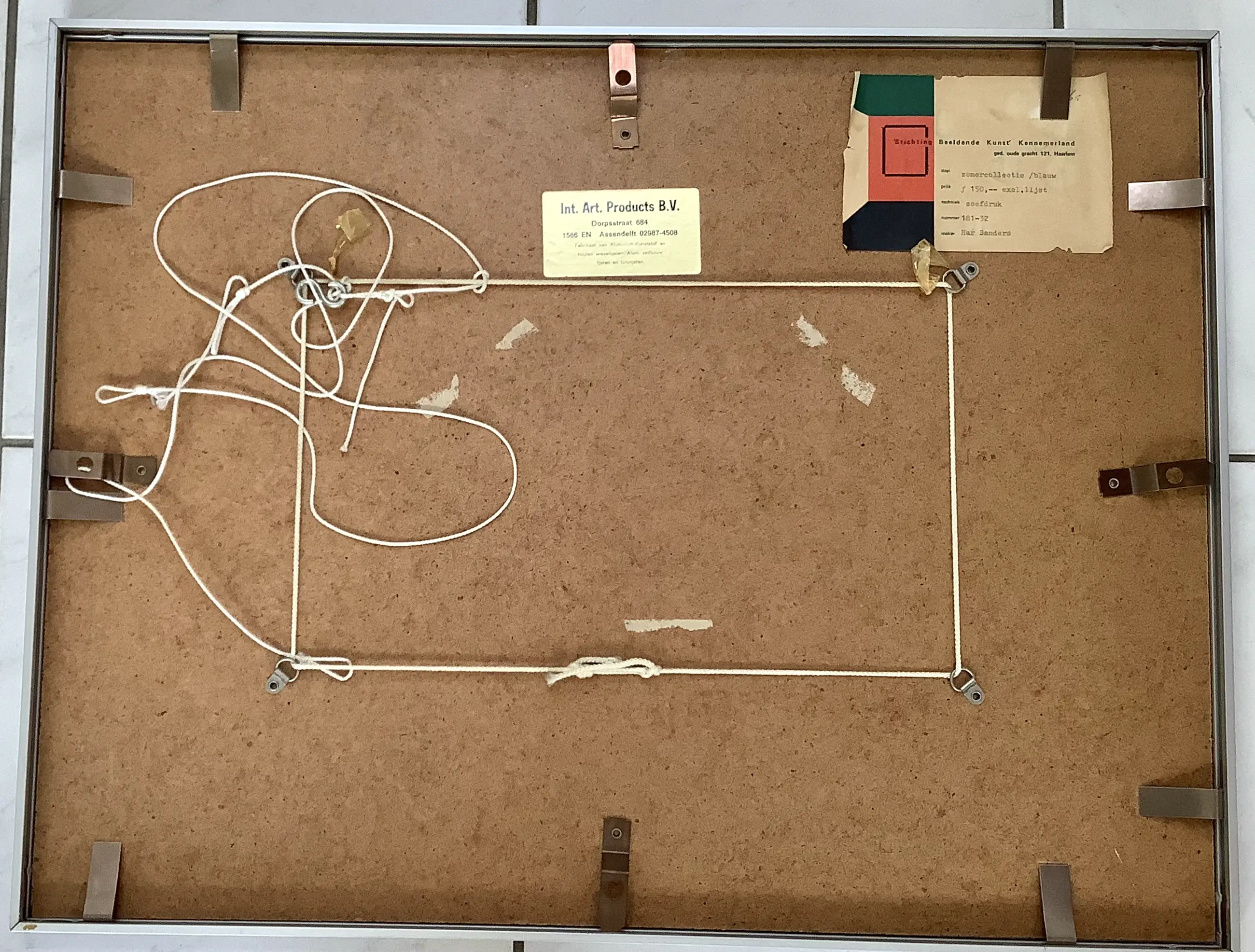 Kenmerkende zeefdruk van Har Sanders. Gesigneerd en gedateerd. Épreuve d’artiste. Gezien de leeftijd nog in zeer mooie conditie. Herkomst Stichting Beeldende Kunst Kennemerland, Haarlem. Wordt niet verzonden ivm. kwetsbaarheid, persoonlijk bezorgen tegen kostenvergoeding is mogelijk.
